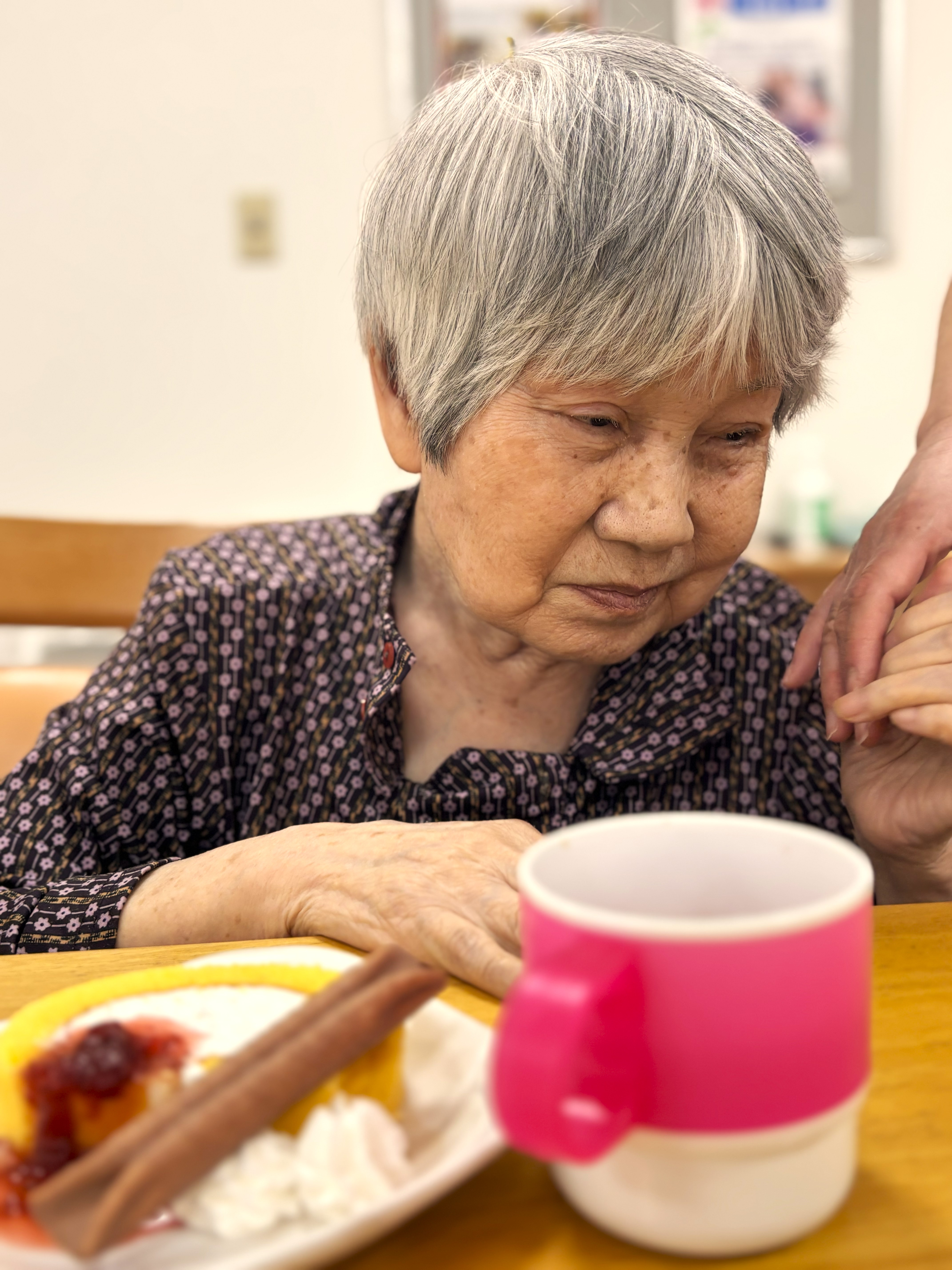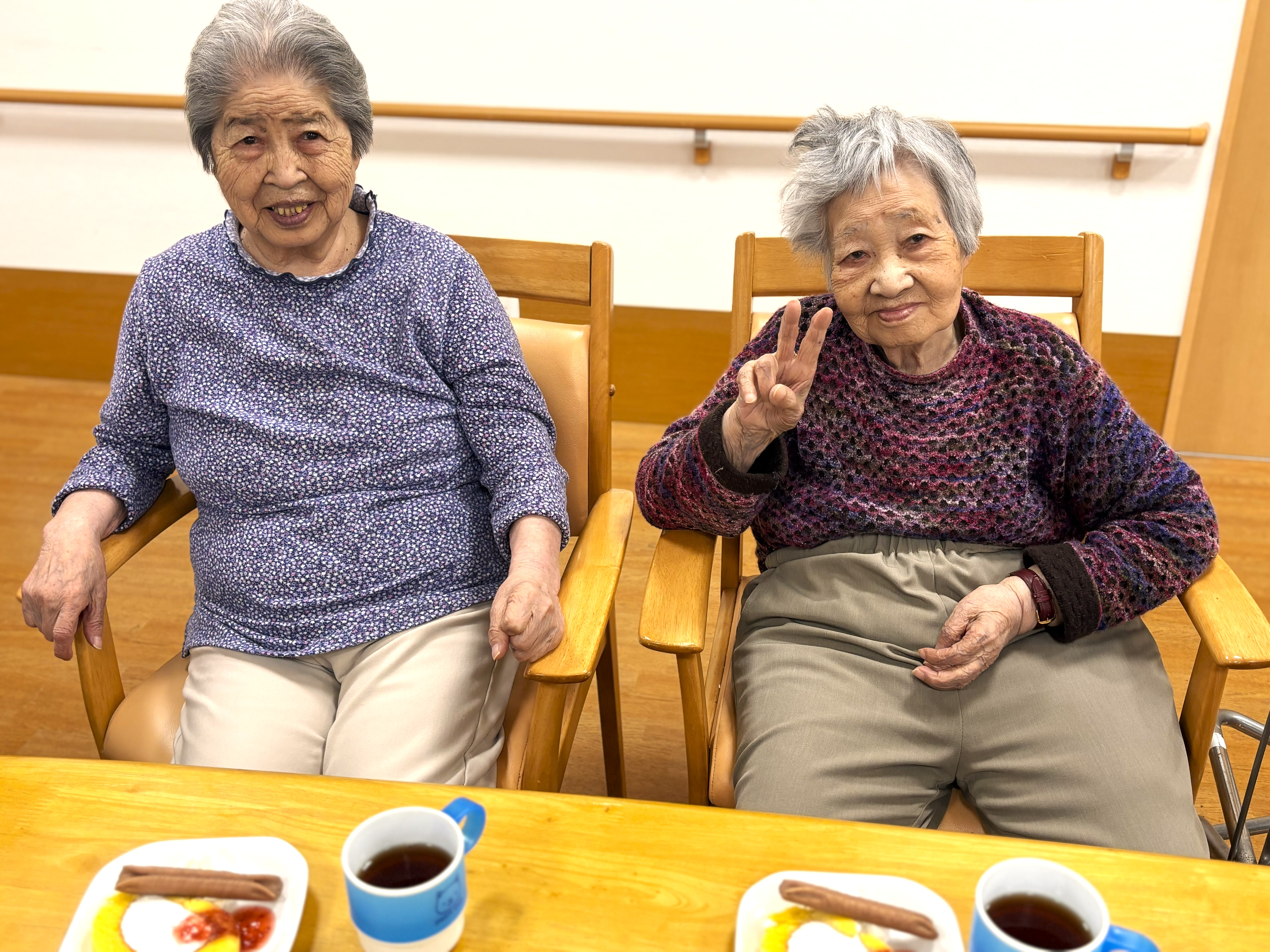 施設では職員の手作りケーキを、皆さまと一緒に頂きました。