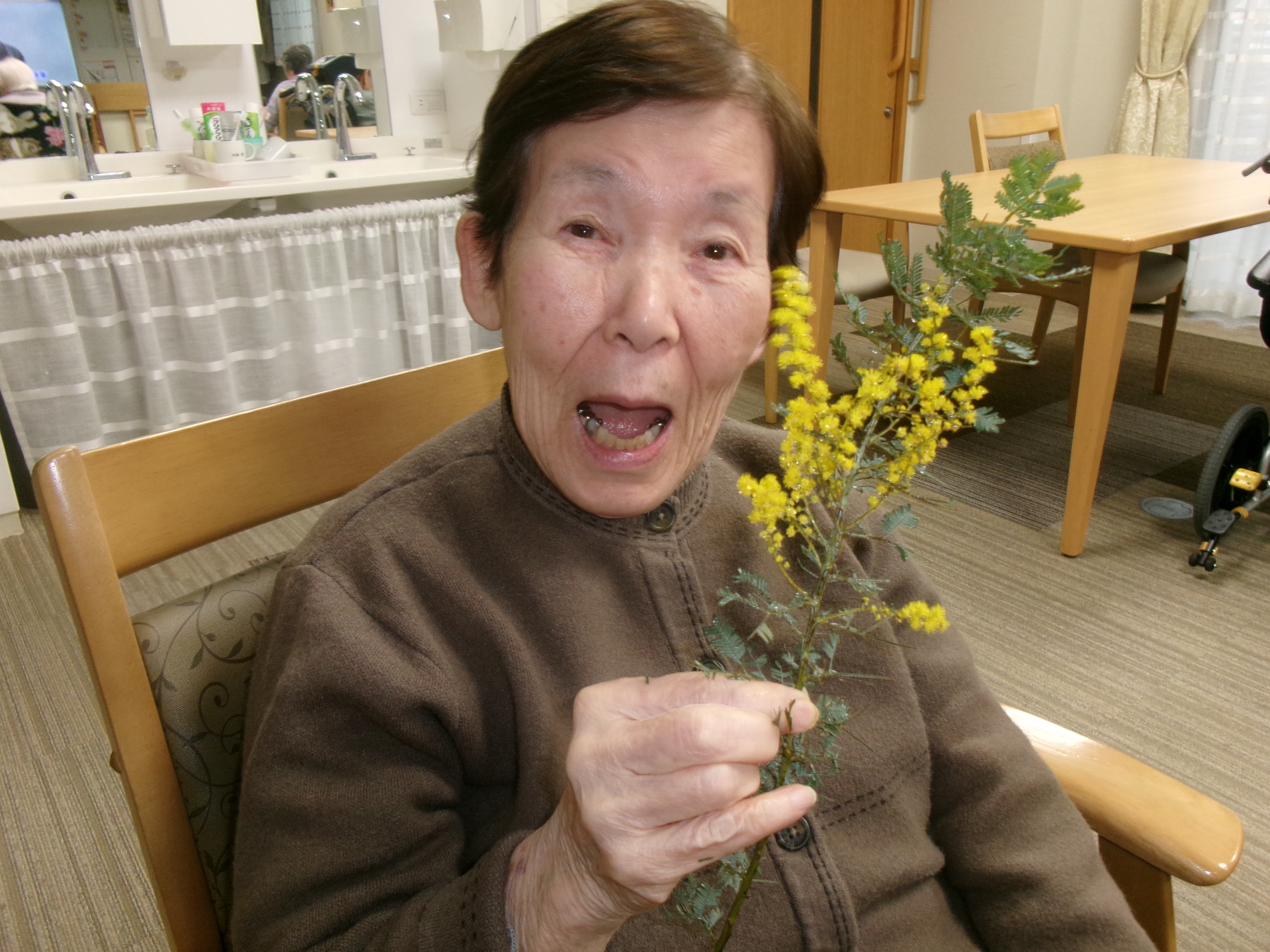 ミモザの施設にミモザの花が咲きました!皆様お花を見るととても和らいだ表情をされていました(o^―^o)ニコ ミモザの花言葉は「感謝」です。皆様いつもありがとうございます!感謝です(´▽`ʃ♡ƪ)