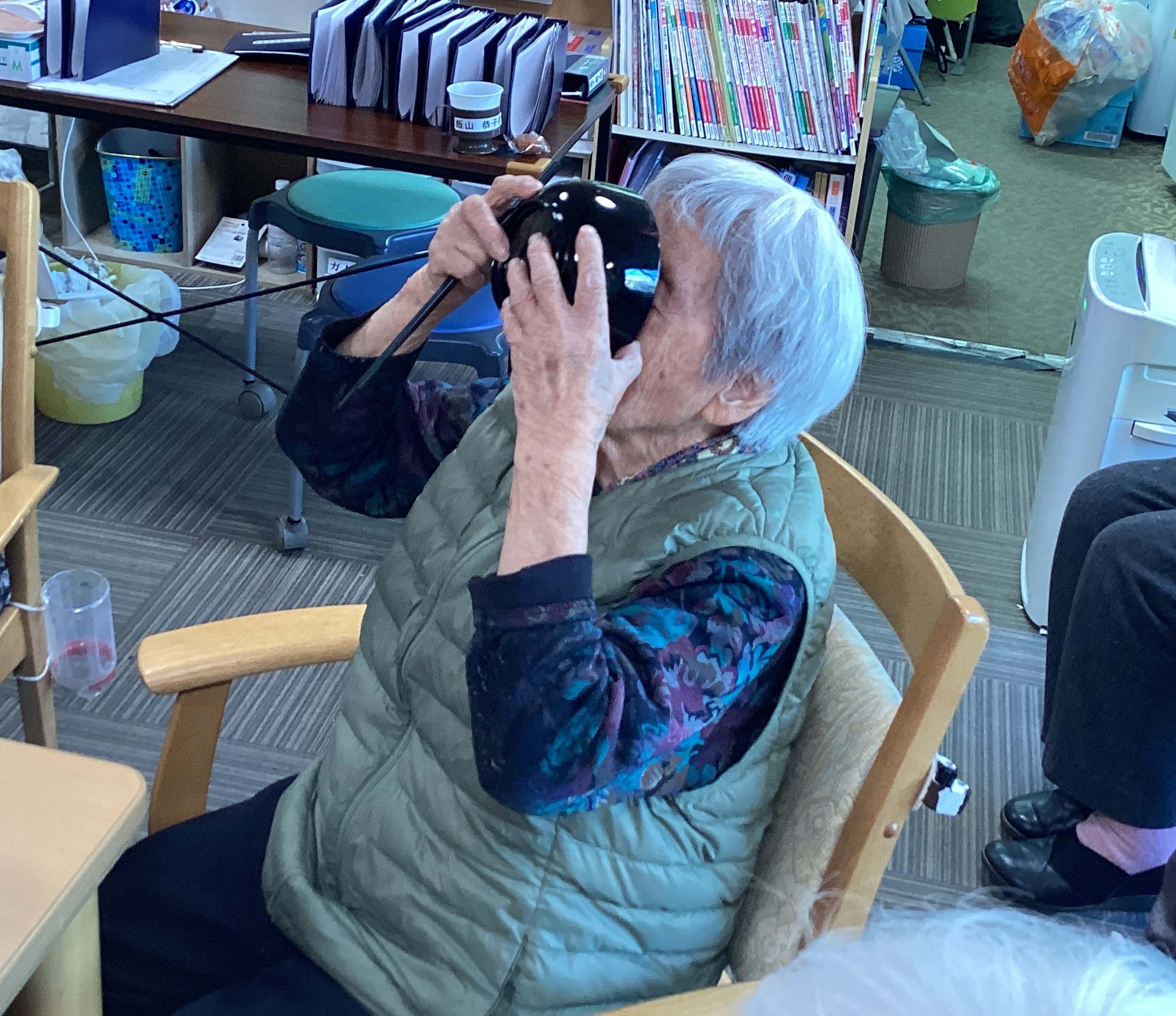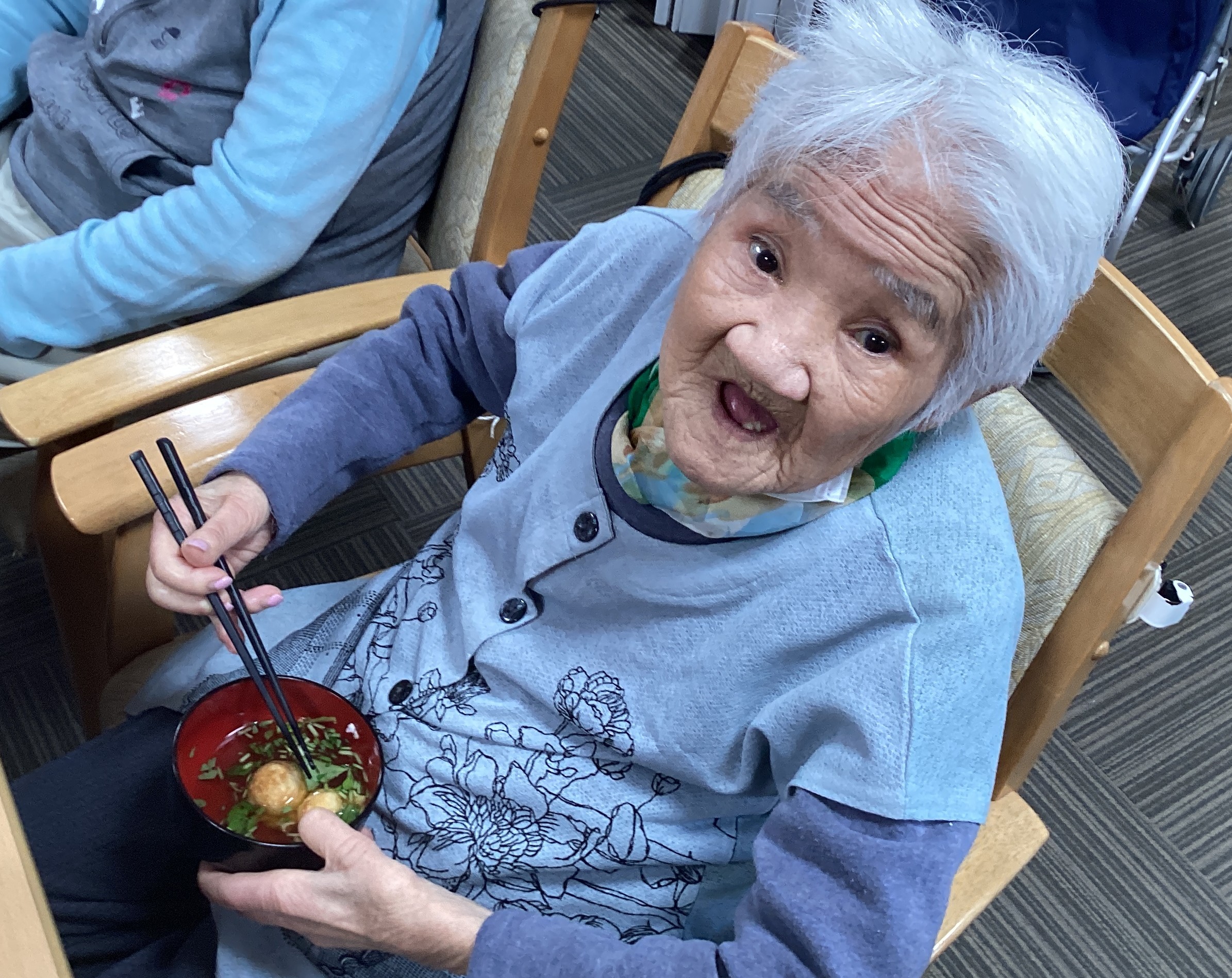 おやつに関西風のだし汁に漬けて食べる明石焼きを作りました。 皆さん大好きで何個もお替りをして食べました。