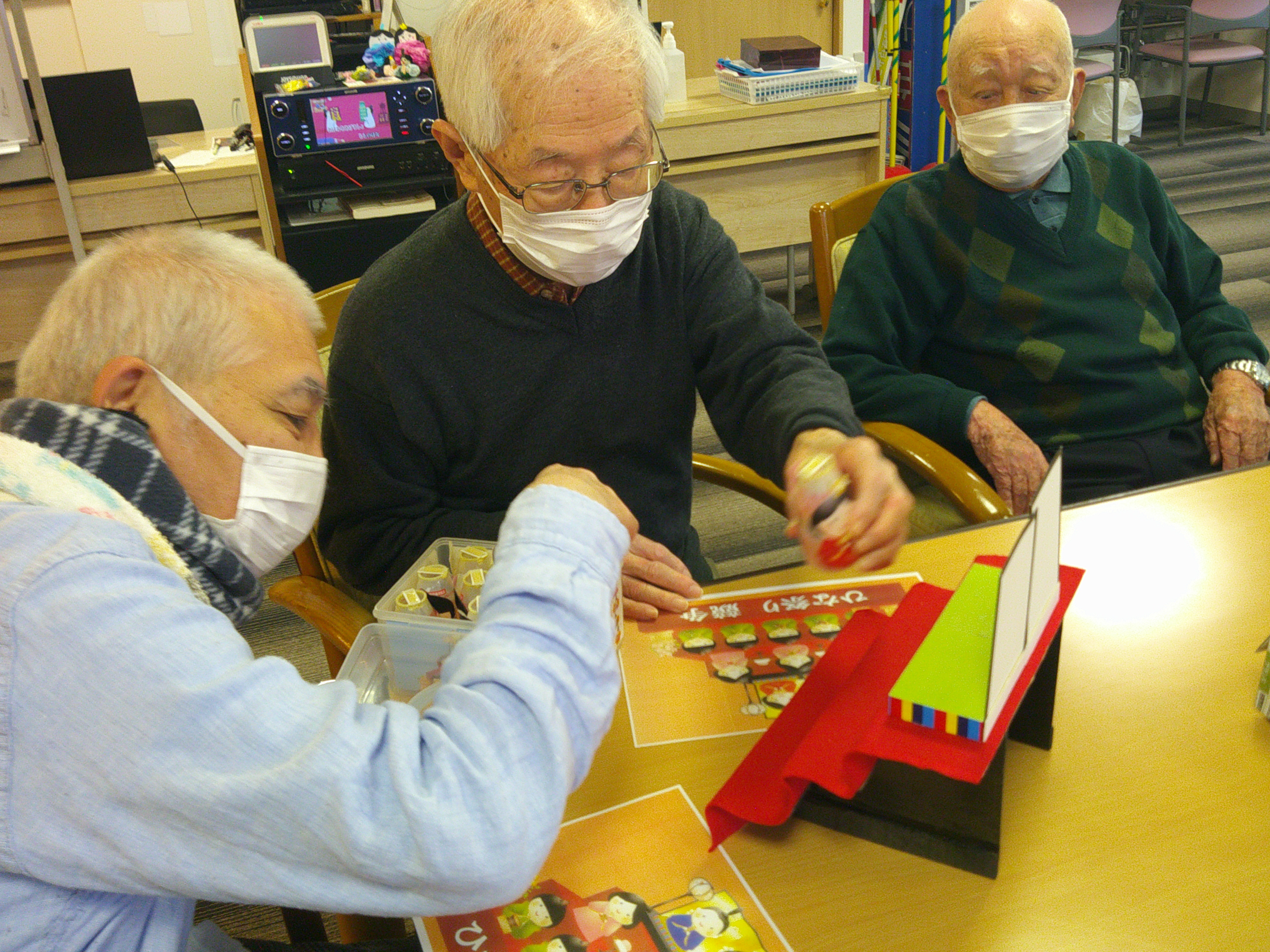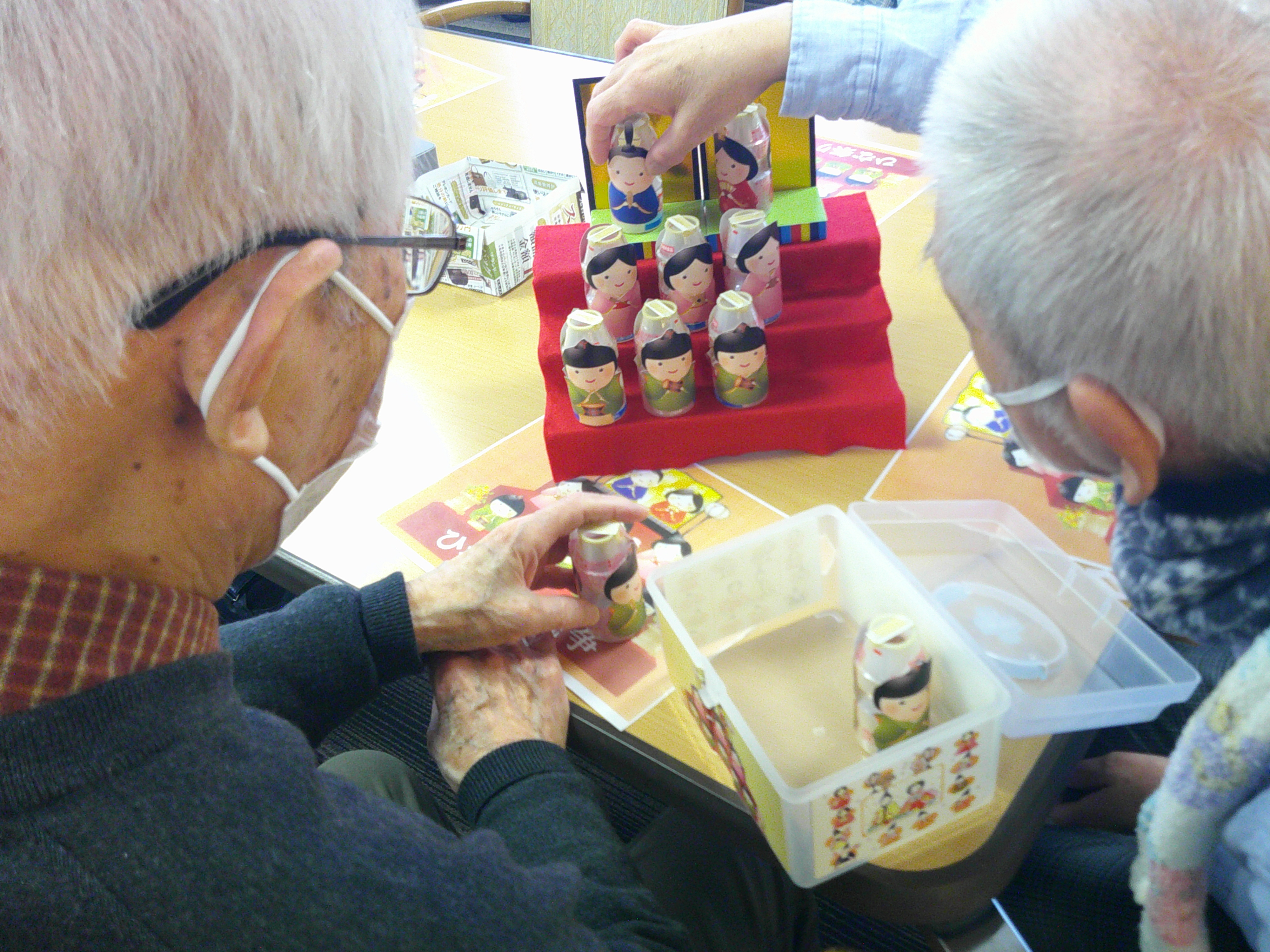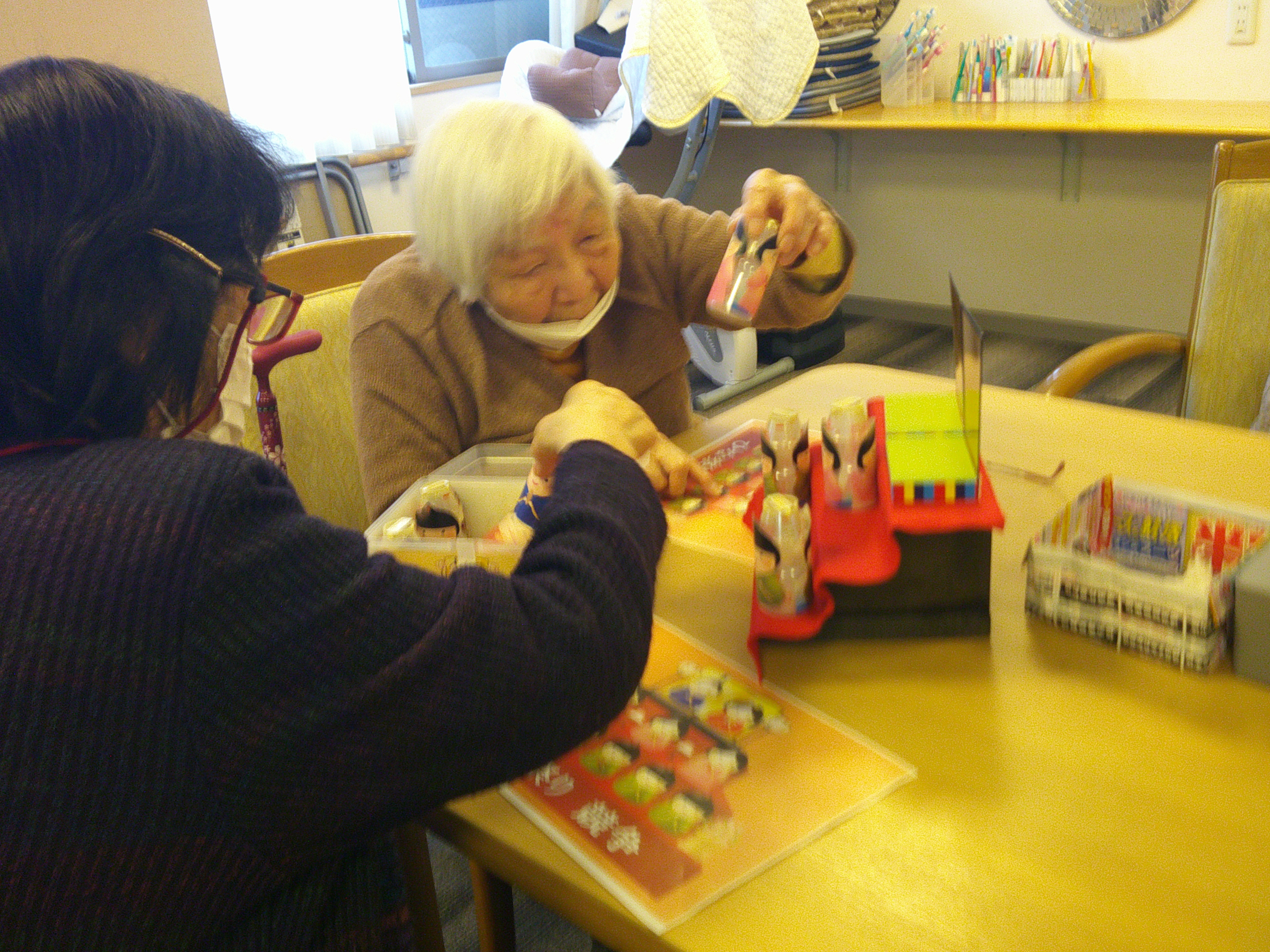 と、いう事で!大倉山デイ恒例の雛人形飾り付け競争開催です。