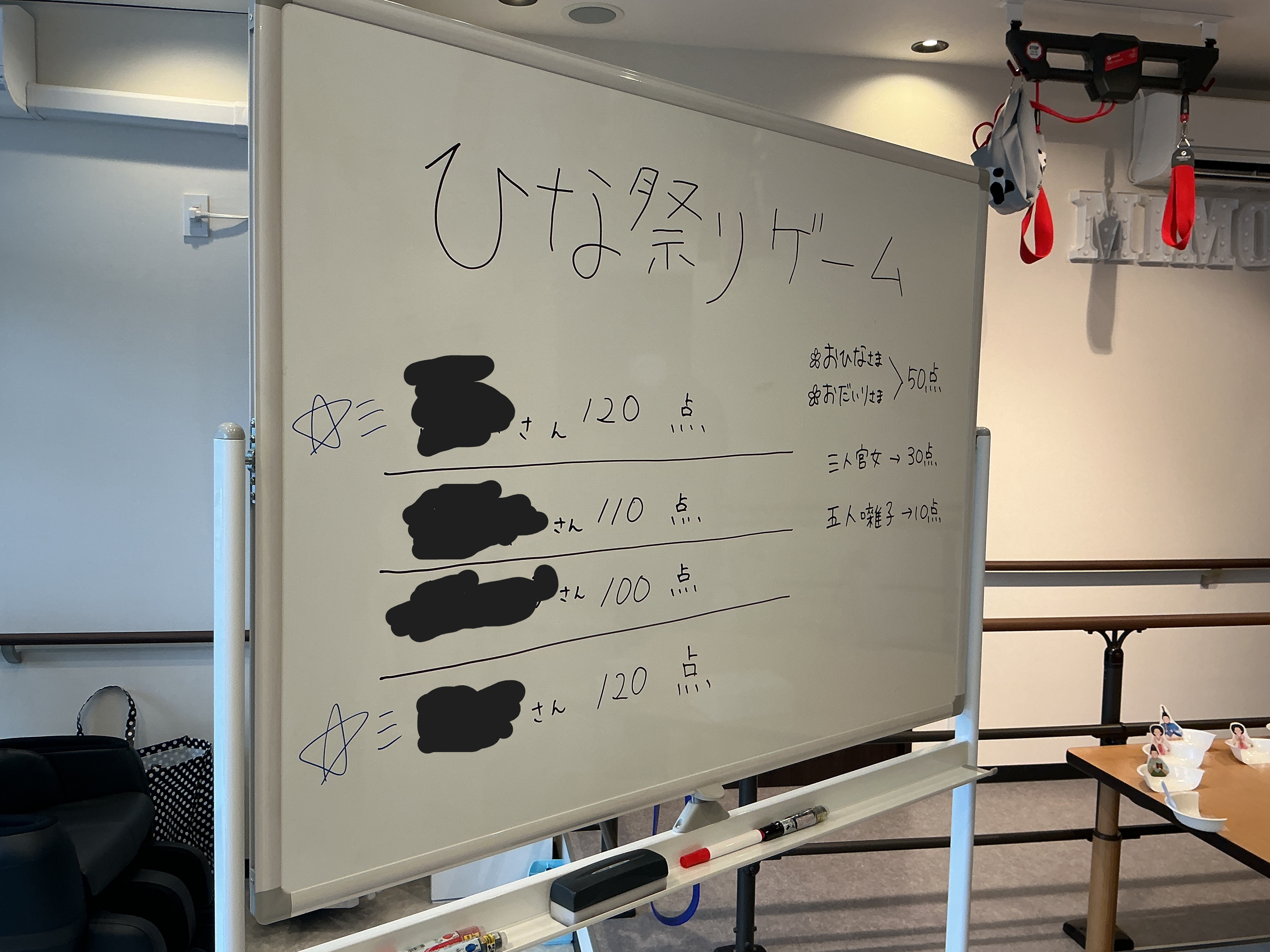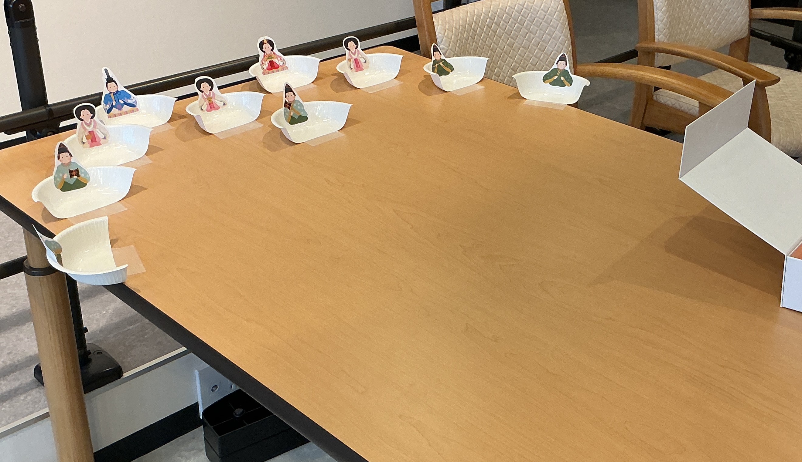 3月3日にひな祭りレクと称してピンポン玉入れお雛様ゲームを行いました。 点数を競いながらお雛様とお内裏様を取り合っておりました。 皆様接戦でした!