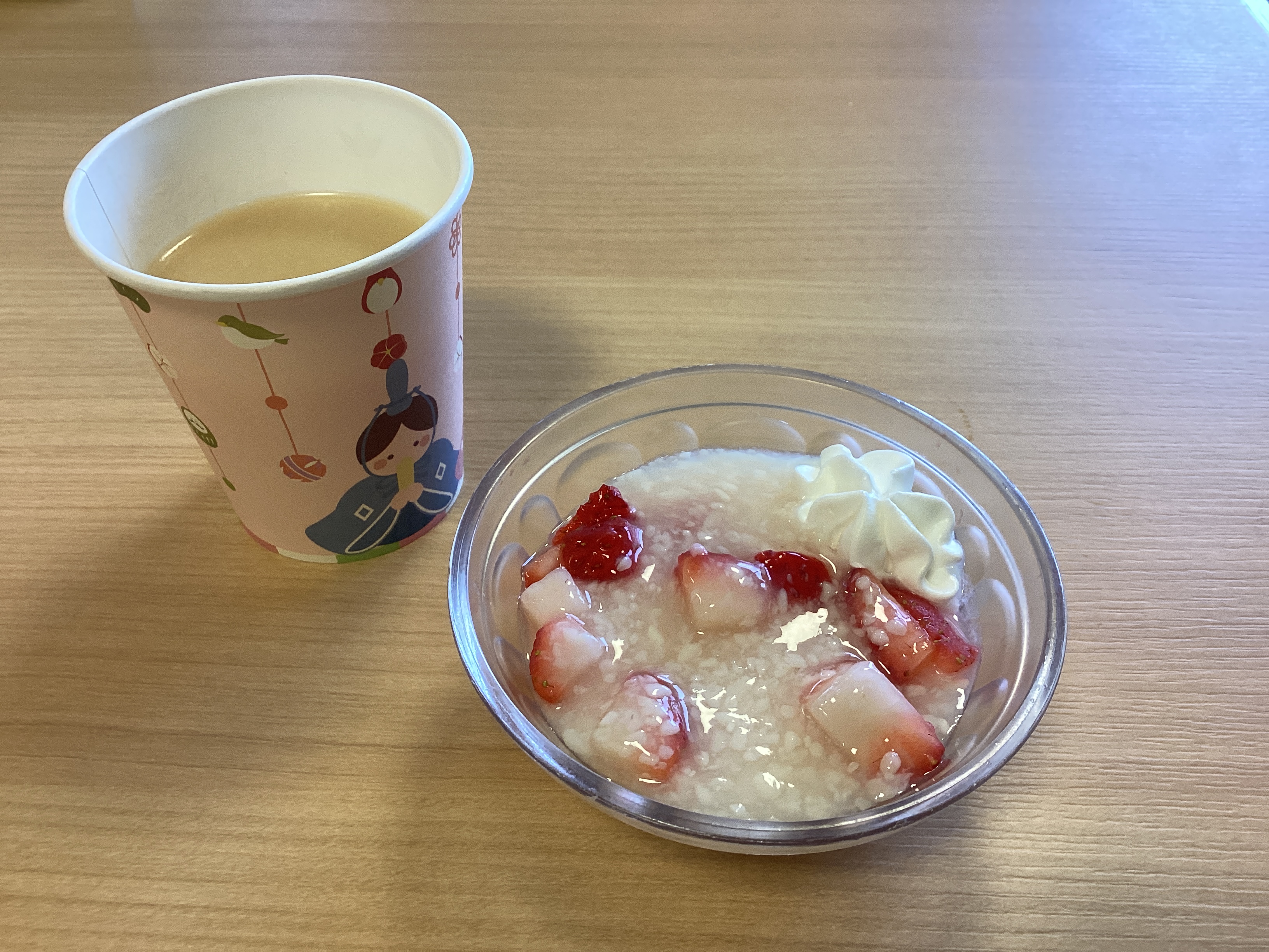 皆さんで春やひな祭りにちなんだ歌を歌い、甘酒を楽しみました。最近暖かい日が増えてきて春が待ち遠しいですね!!