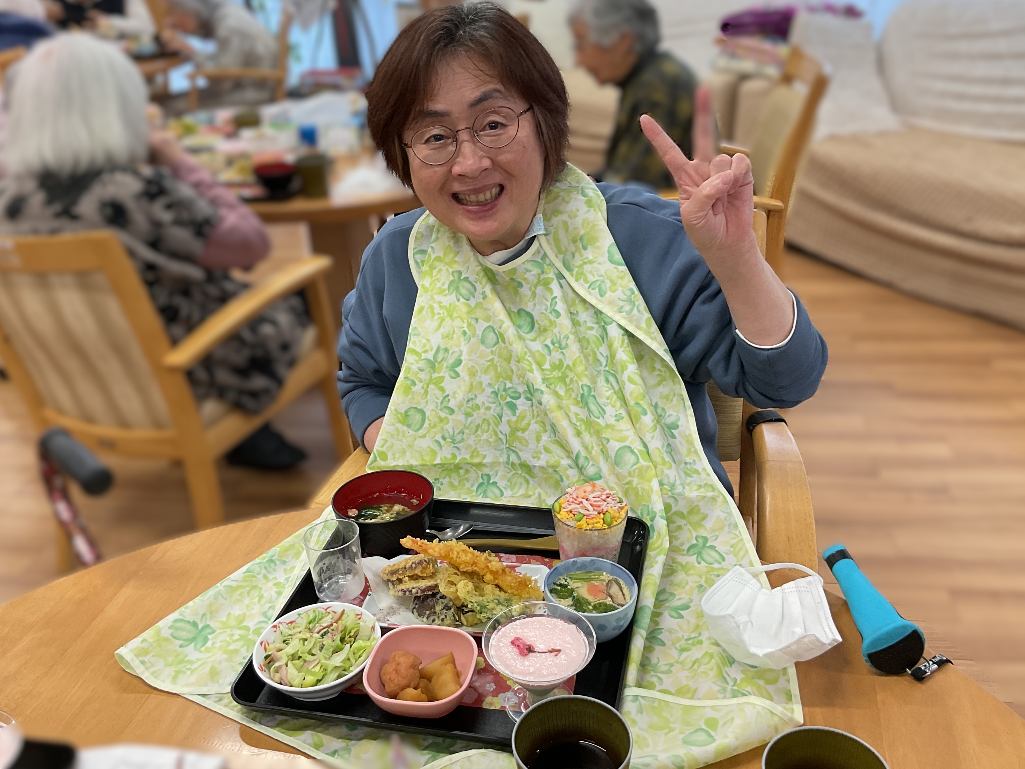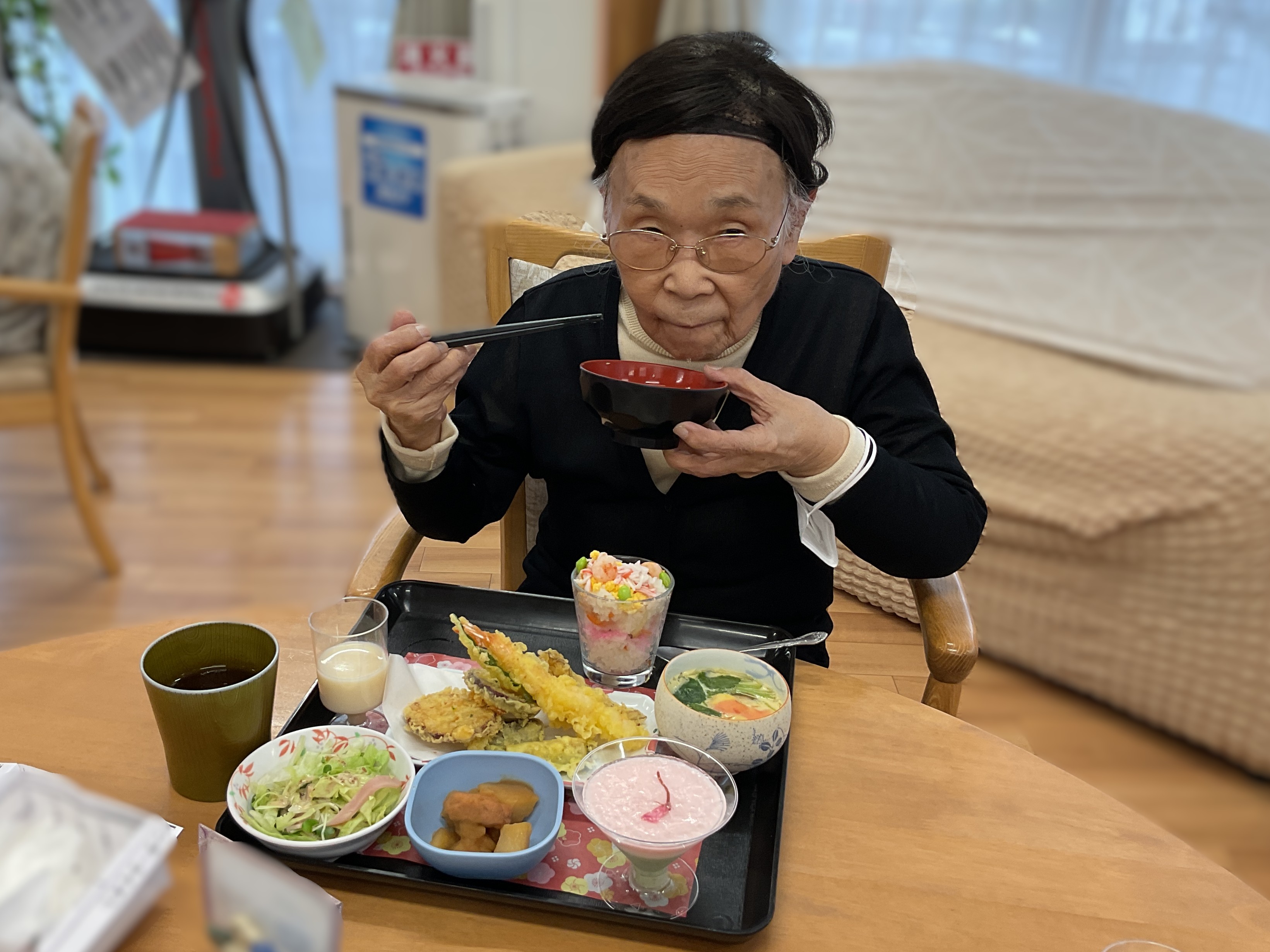 3月3日はひな祭り!キッチンさんが豪華なランチを作ってくれました!ちらし寿司に天ぷらに、茶碗蒸し!美味しいデザートまでついてます😍ご利用者から大好評!天ぷらも茶碗蒸しも絶品でした😆
