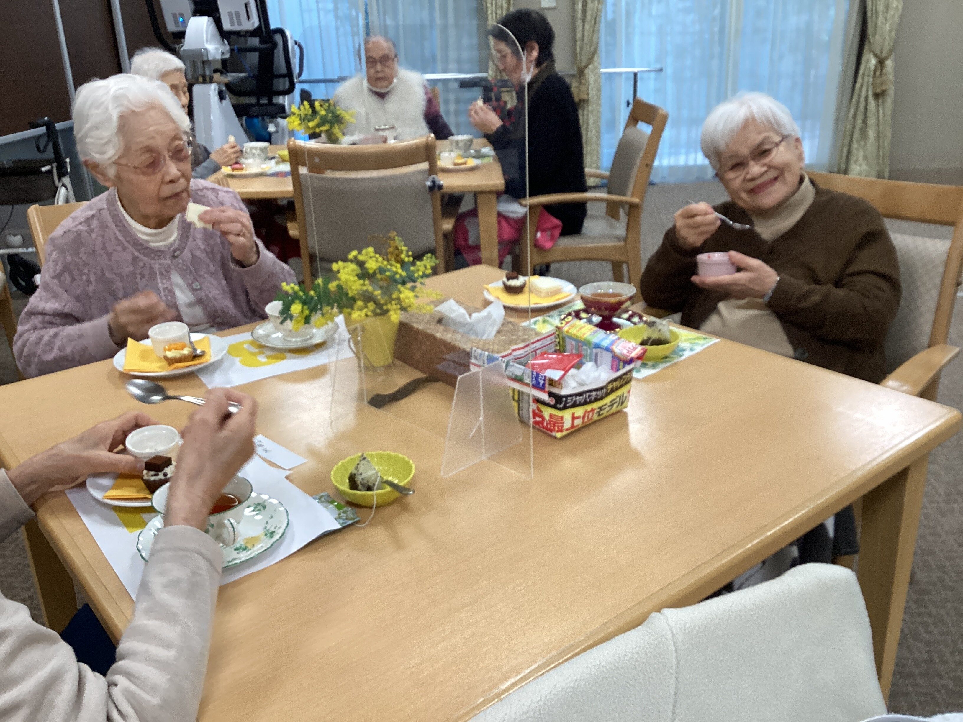 初登場の「mimosaアフタヌーンティー」ちょうど満開のミモザの花に囲まれながら、今流行りの5種類の和紅茶をご用意。ケーキスタンドには可愛いお取り寄せプチタルト、サンドウィッチ、苺クリームヨーグルト。スタッフの生演奏。ちょっと豪華で優雅なひと時です。