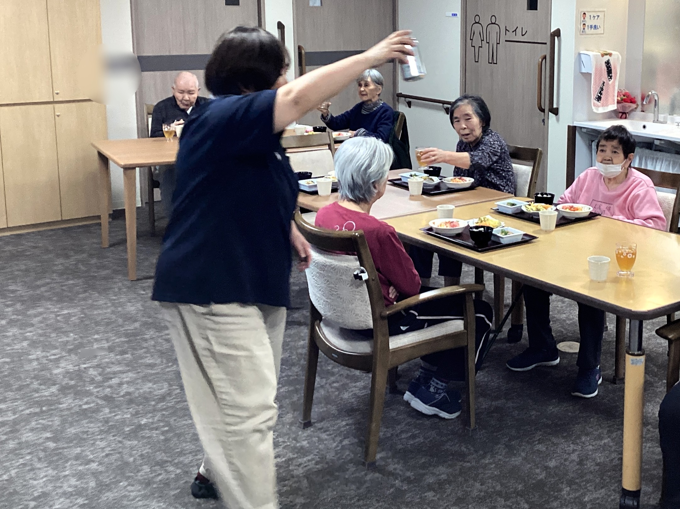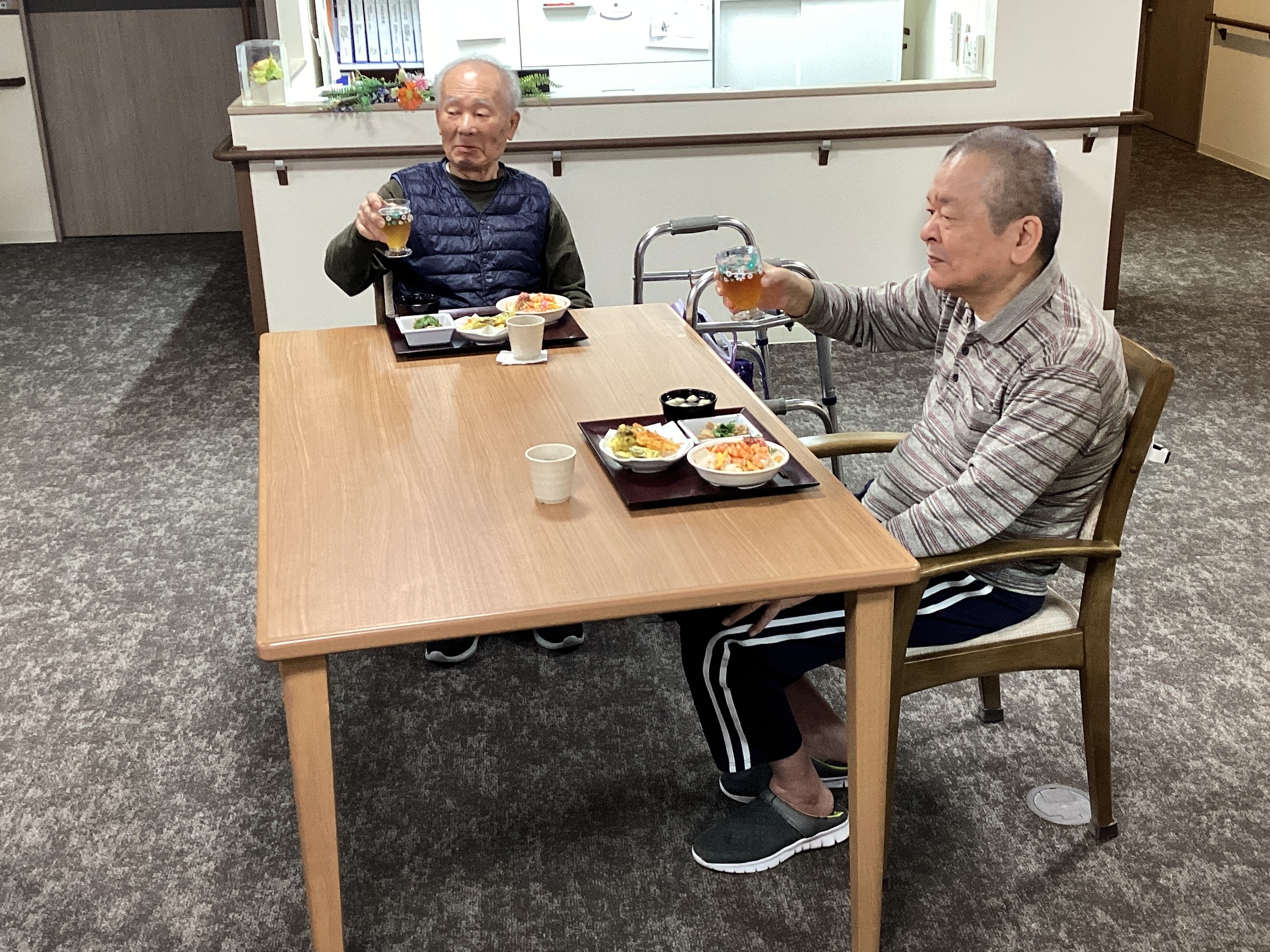 今年のひな祭りは海鮮ちらし寿司(*^_^*)おやつはご入居者と一緒に作った桜餅と菱餅風ゼリーをいただきました!!