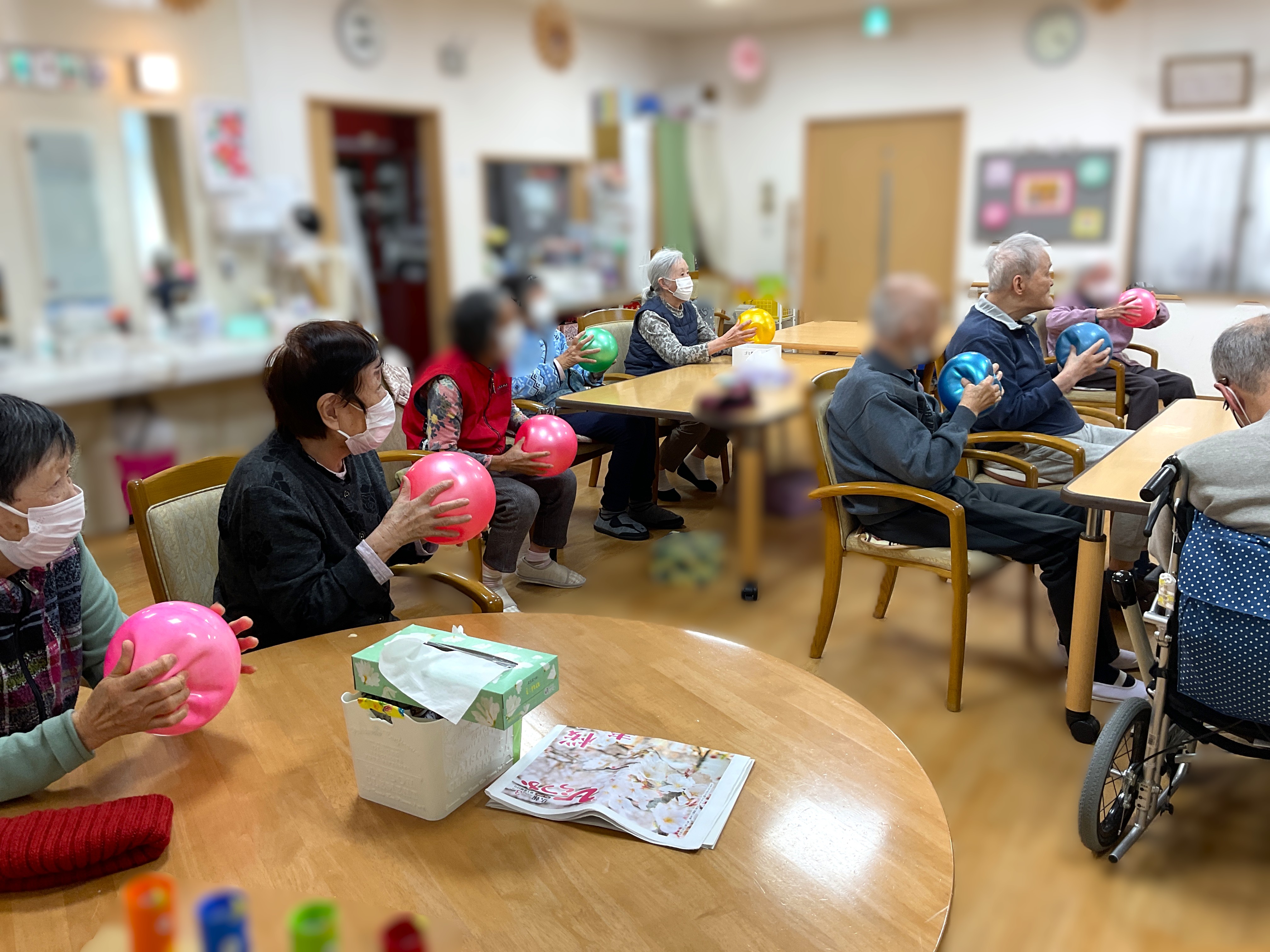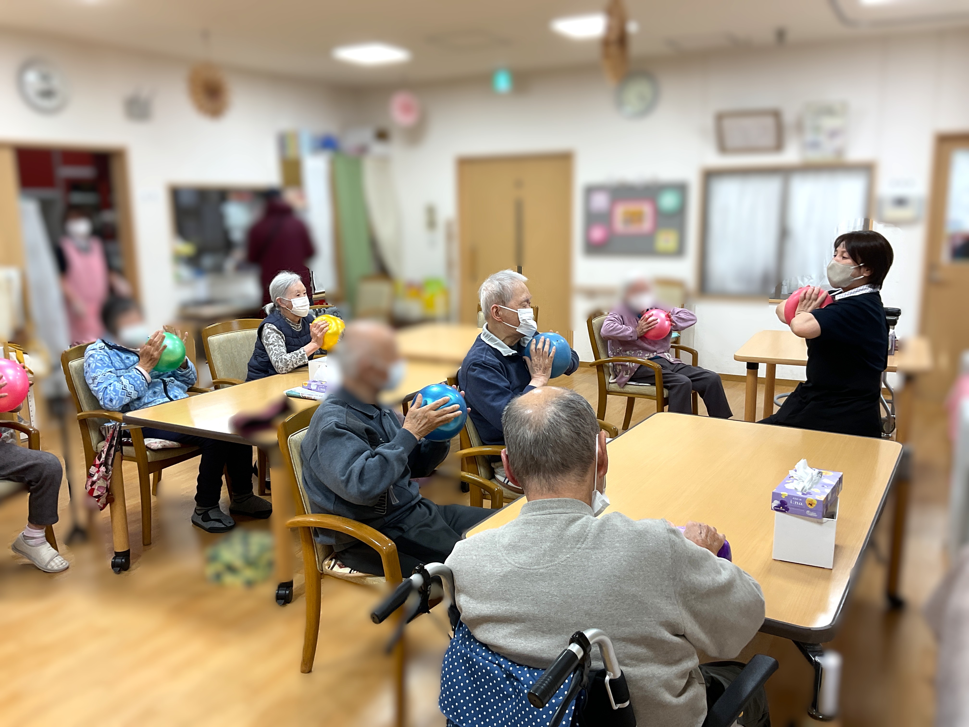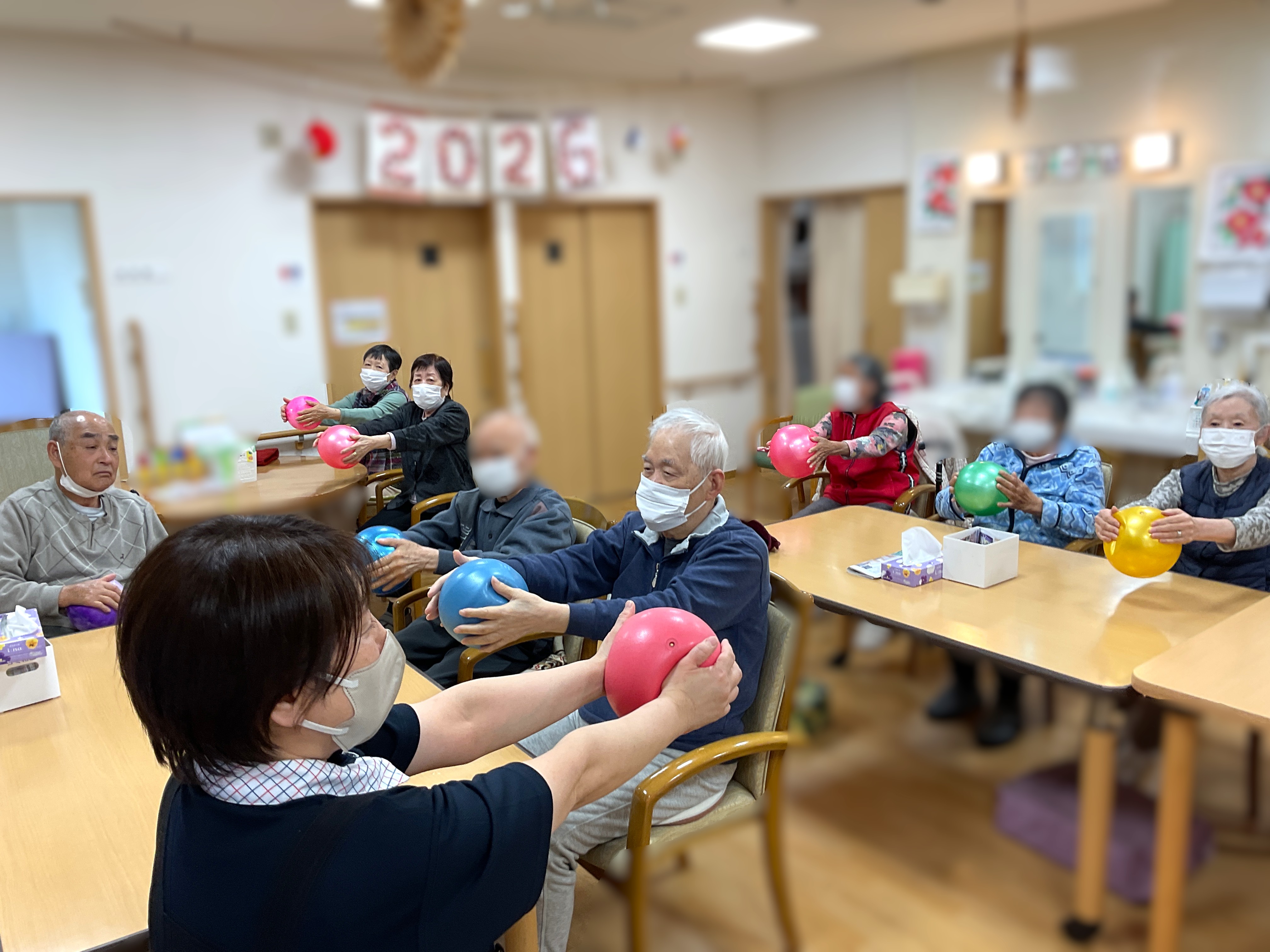 職員によるボール体操♪皆様元気よく取り組んでいます♫