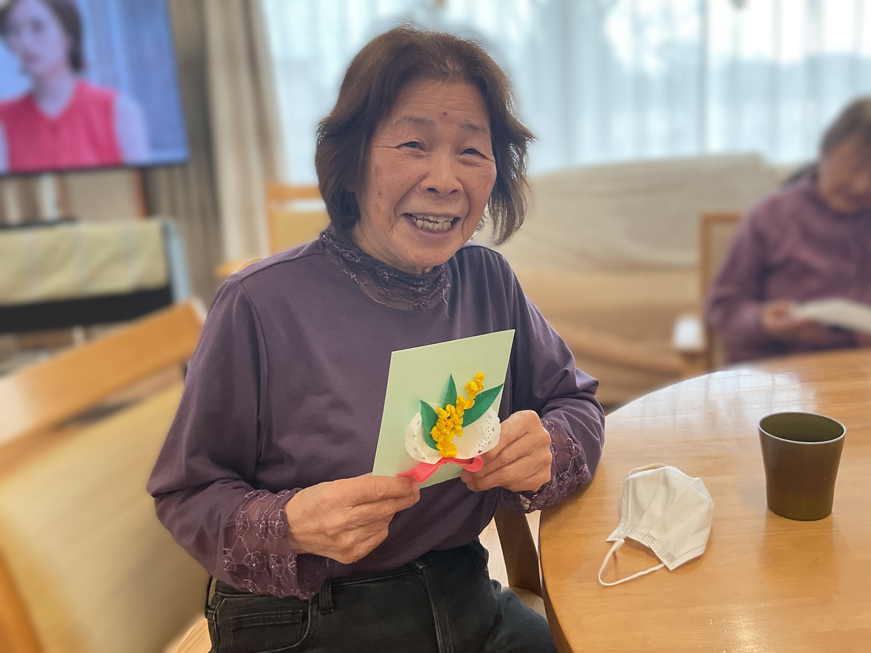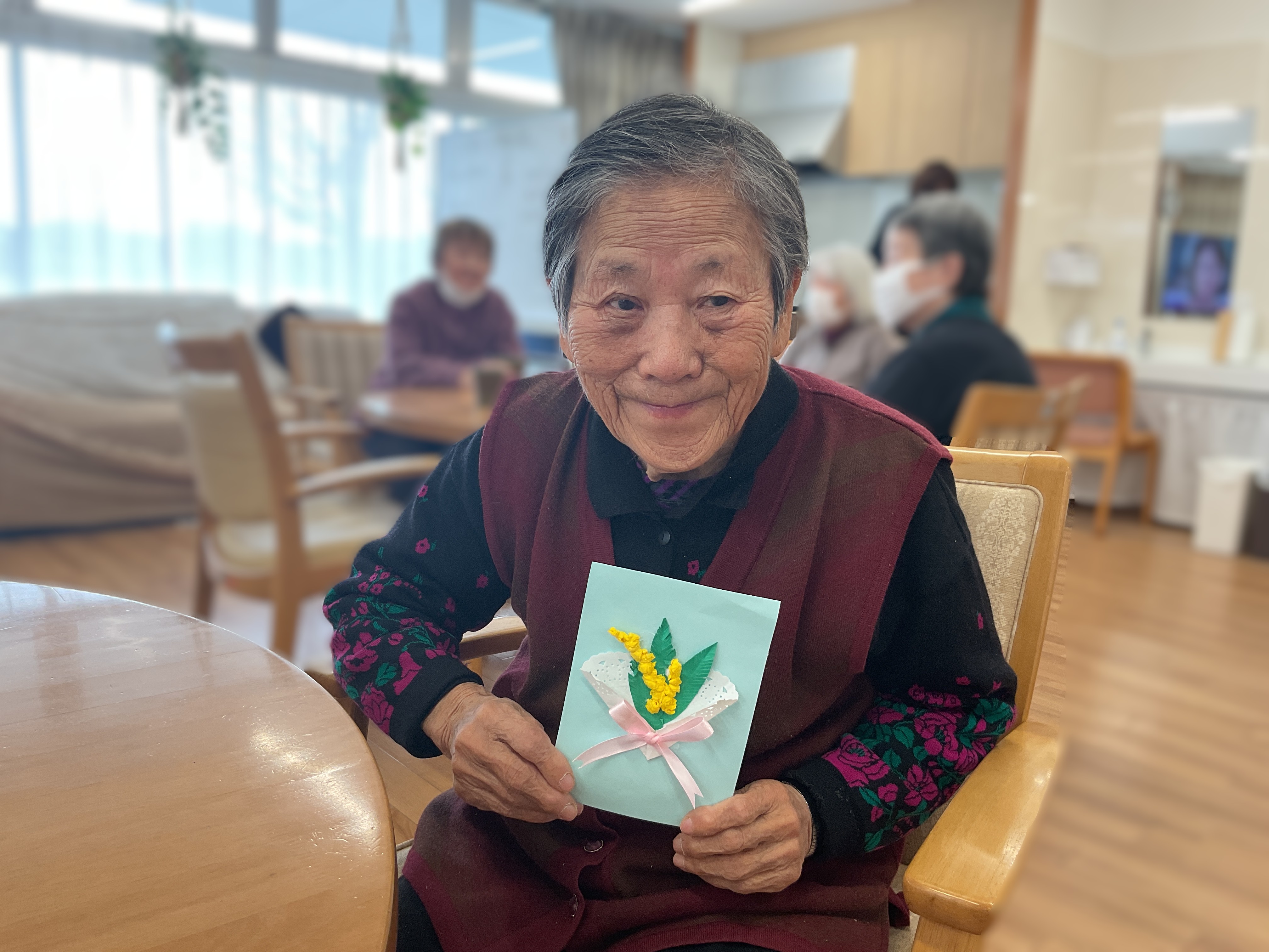 本日のレクリエーションは黄色のお花紙を使って「ミモザ」を作ってみました🤗ブーケ風に飾り付けをしました💕とってもかわいく仕上がり皆さん嬉しそうです😍施設内に飾らせていただきます😊