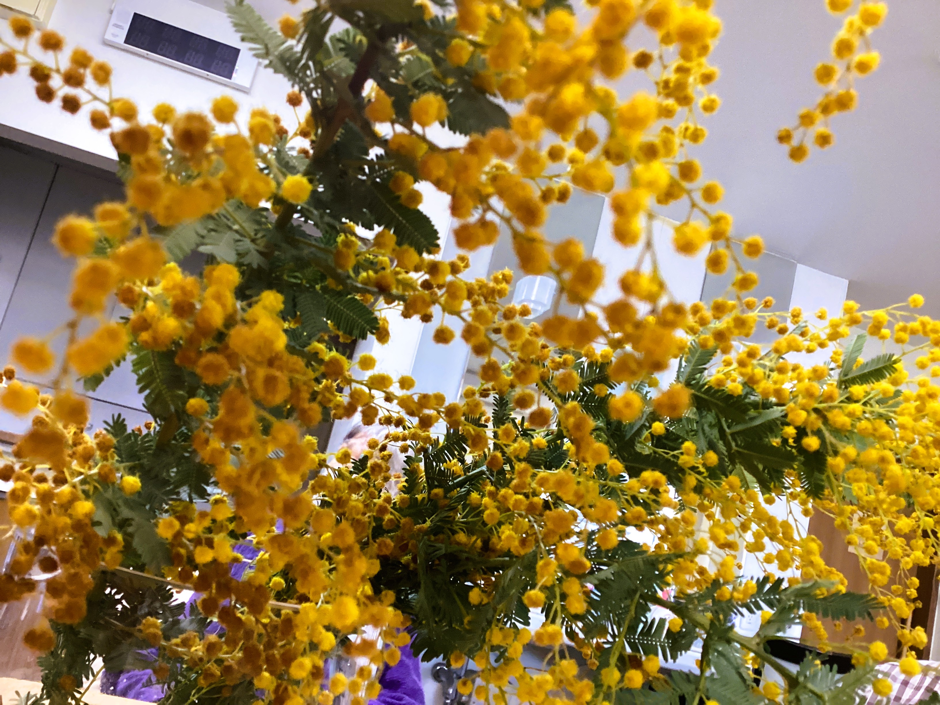 ミモザまつりで持ち帰ってきたミモザをホームで飾ると、、なんと!全体があったかくて優しい雰囲気に💛 まるで魔法✨ これからもミモザらしく温かい介護をご提供します!!