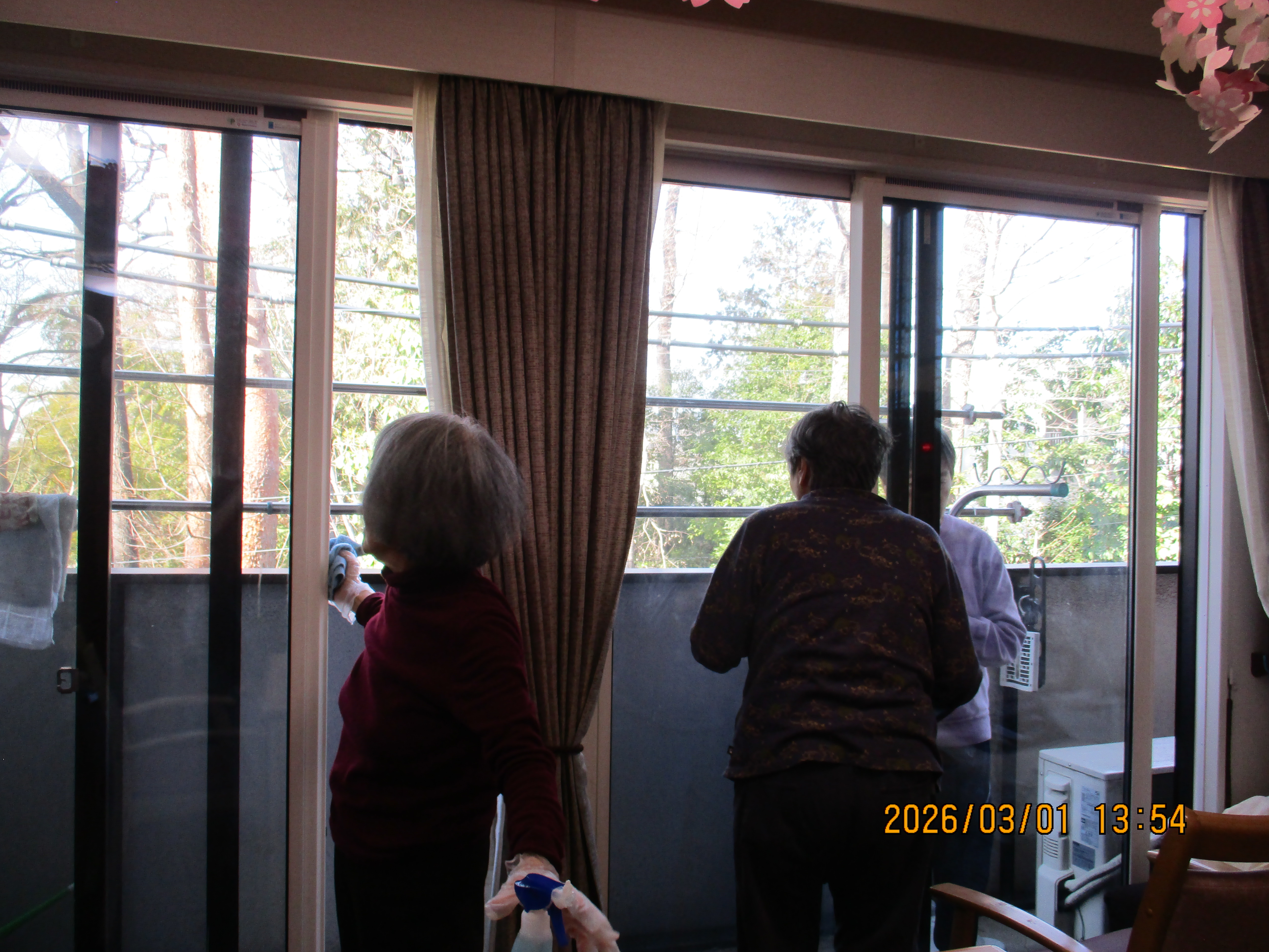 のんびりとした日曜日、思い立ってフロアの大きな窓を拭くことにしました。