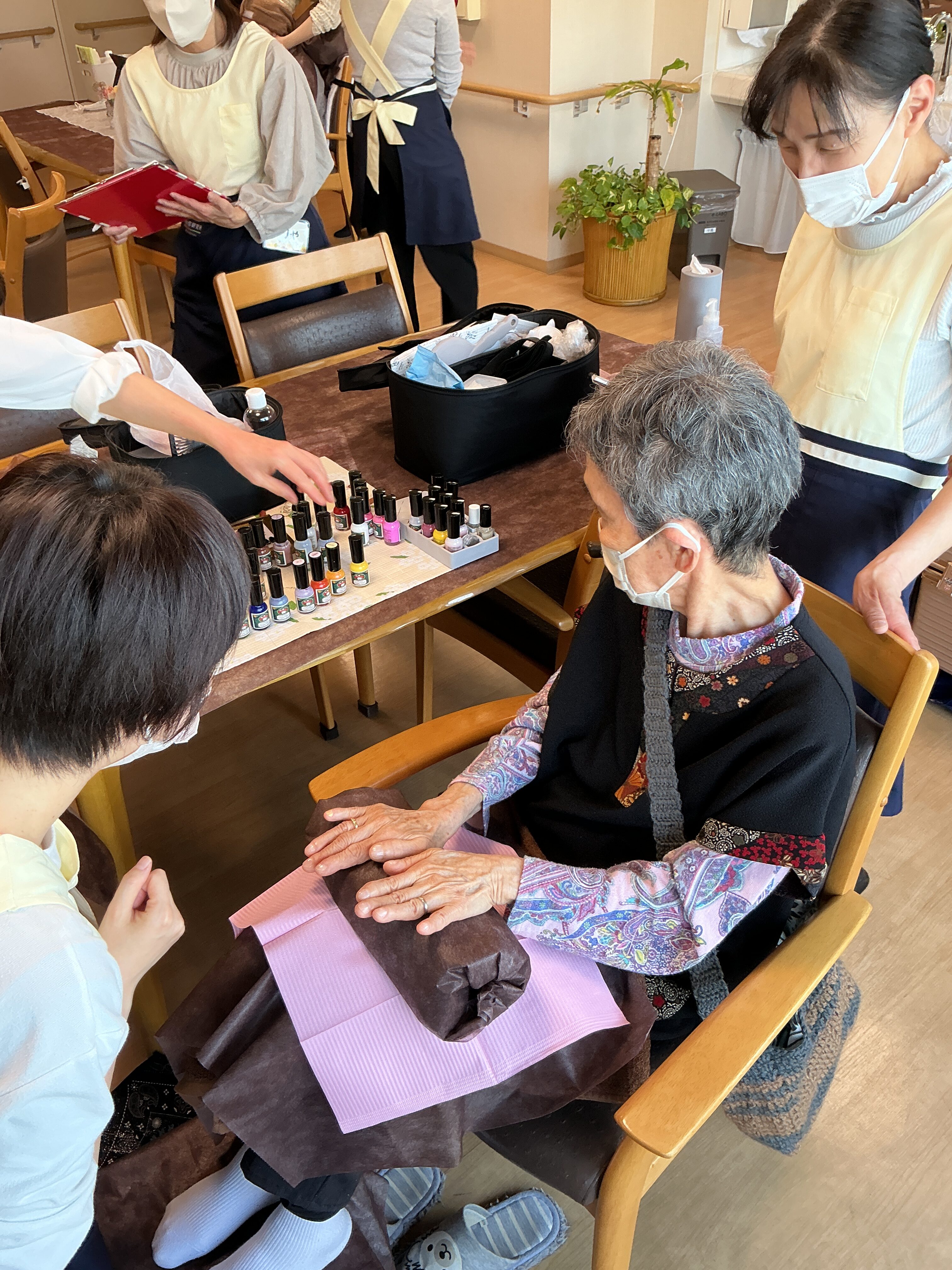 4週連続の美容学校の施術の様子です。 男性も参加され、フェイス、ハンドマッサージされ喜ばれています。