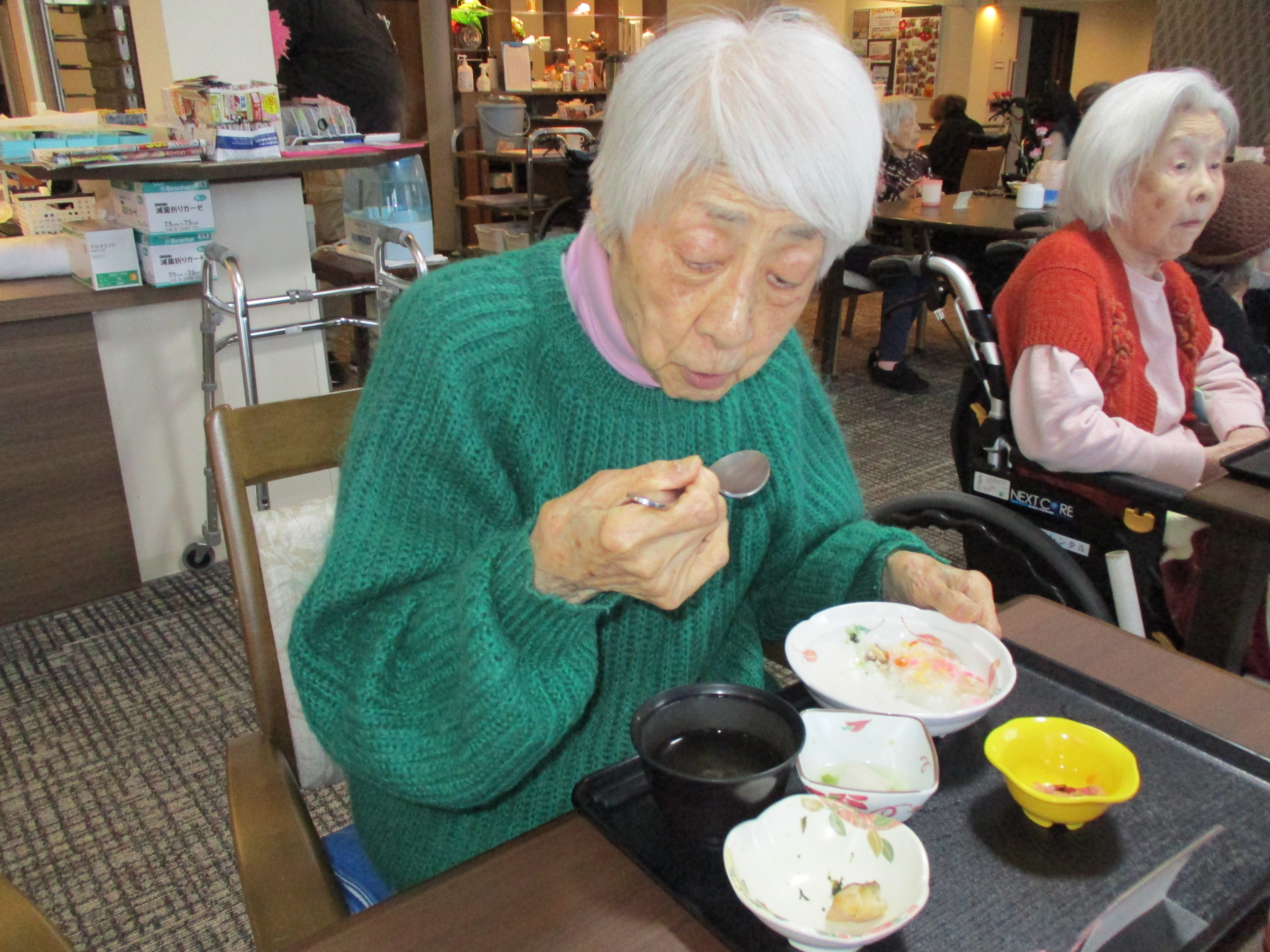 ひな祭りの時期に合わせてちらし寿司がふるまわれました。 華やかなお食事で、「かわいい」とお喜びになる方もいました。