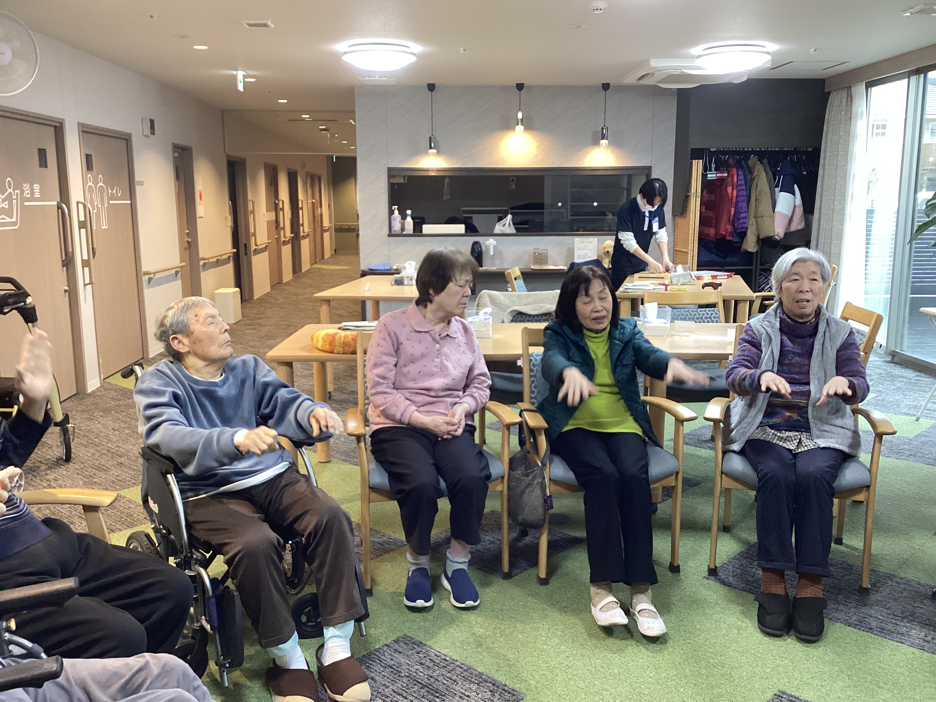 楽しく取り組めるような体操を出来る限り全員参加で取り組んでいます。