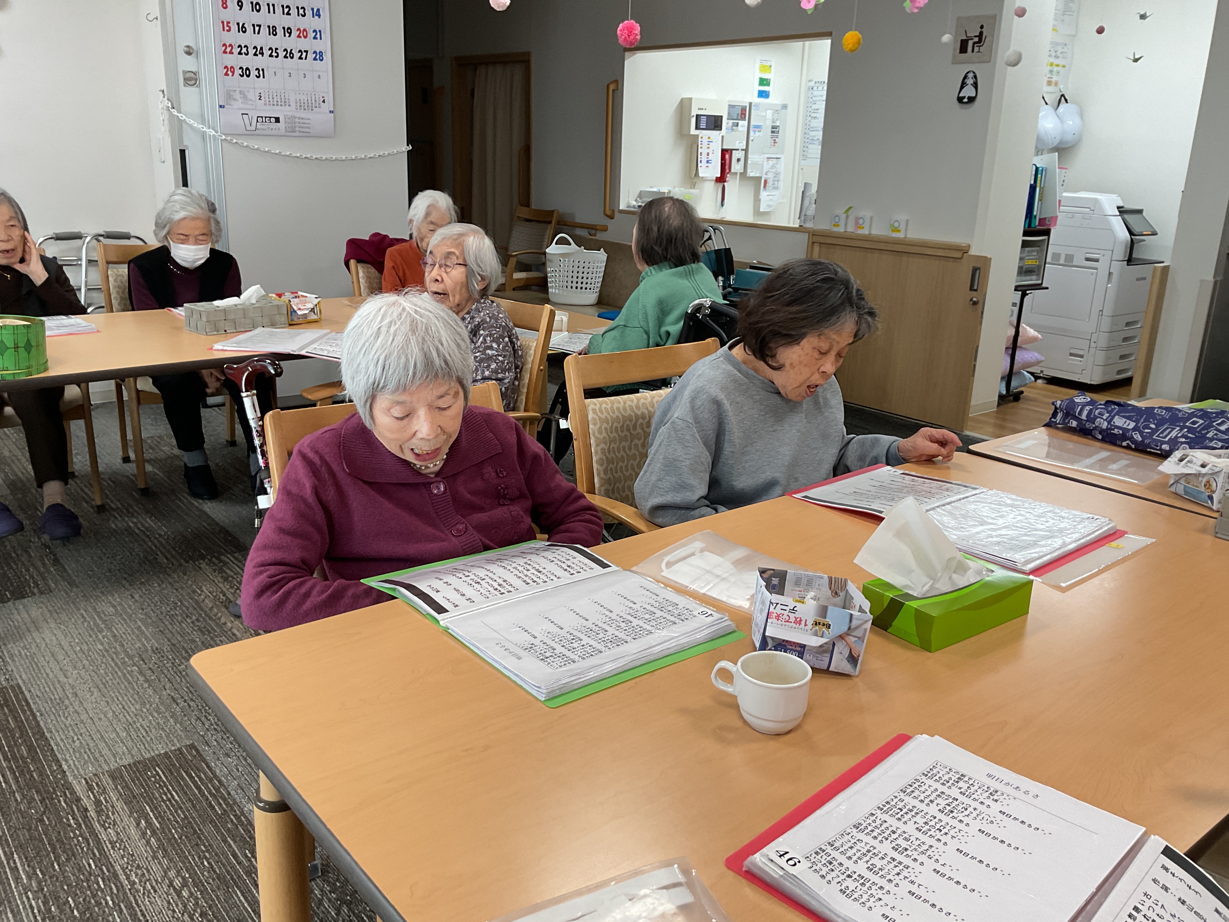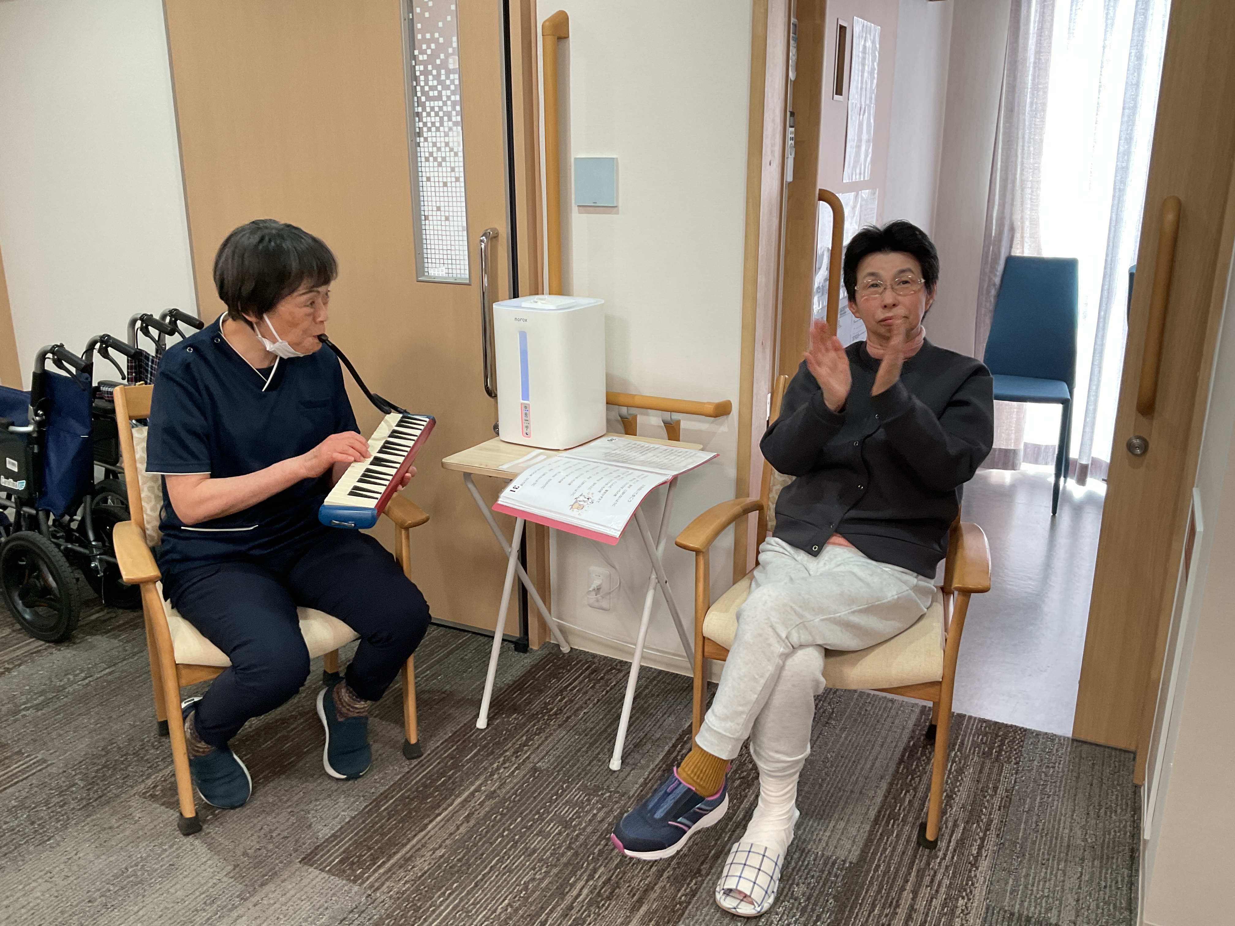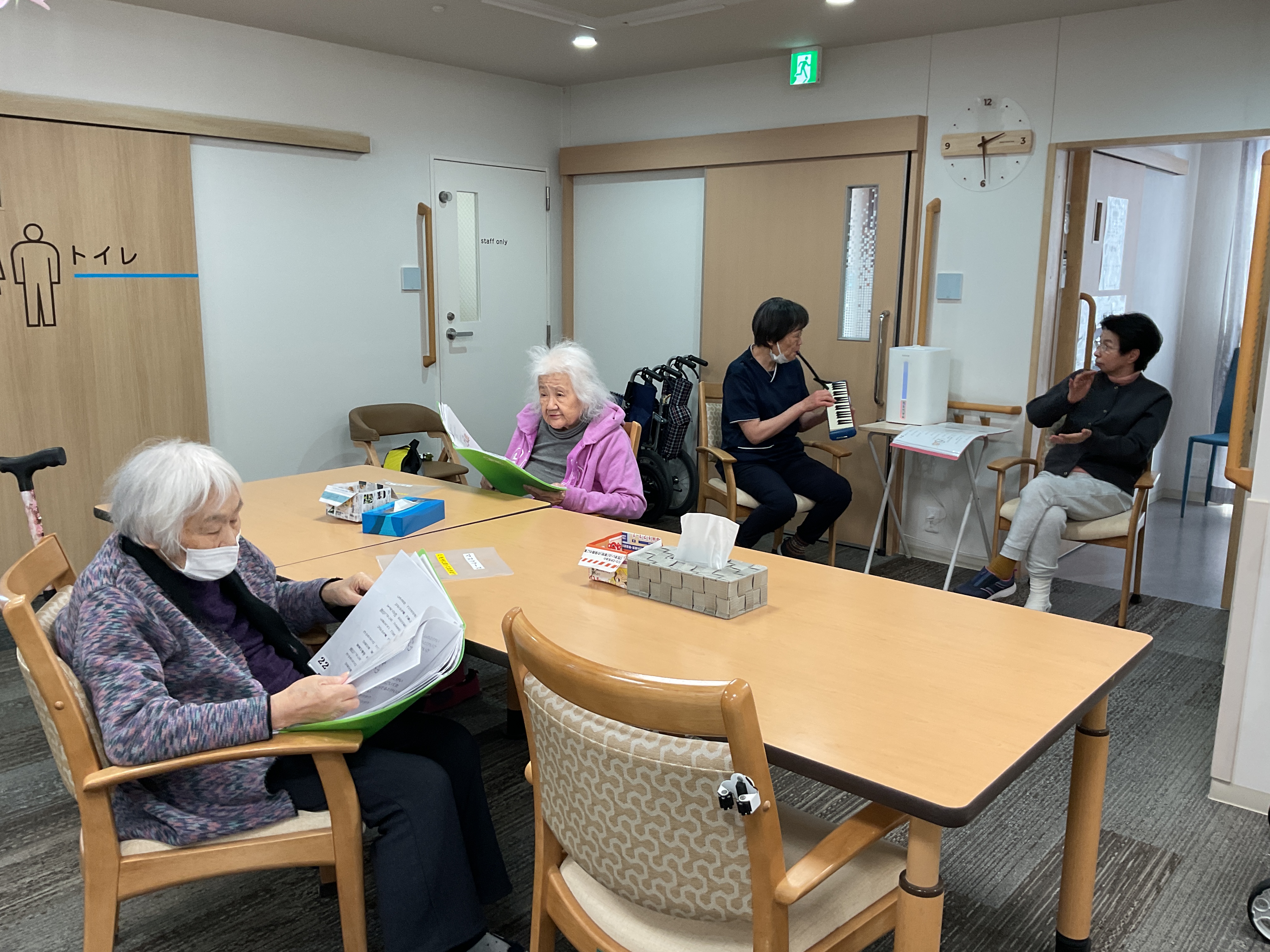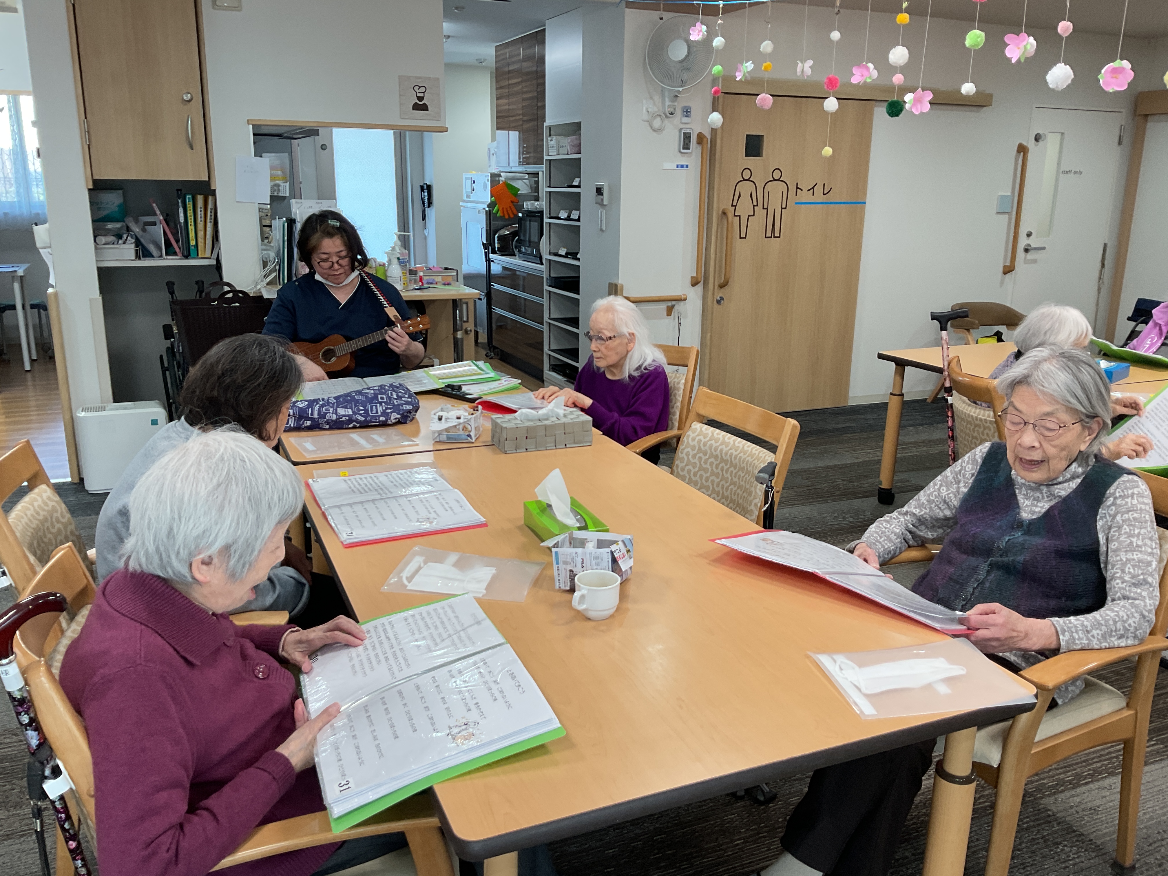 天気はいいけど空気は冷たい!外に出るのは難しいですが、室内は暖かくて穏やかです。土曜日の午後はゆっくり音楽を楽しみましょう♪ウクレレと鍵盤ハーモニカの演奏で歌を歌いました!童謡から歌謡曲まで幅広く、皆様からこの音楽の時間は大変ご好評いただいております