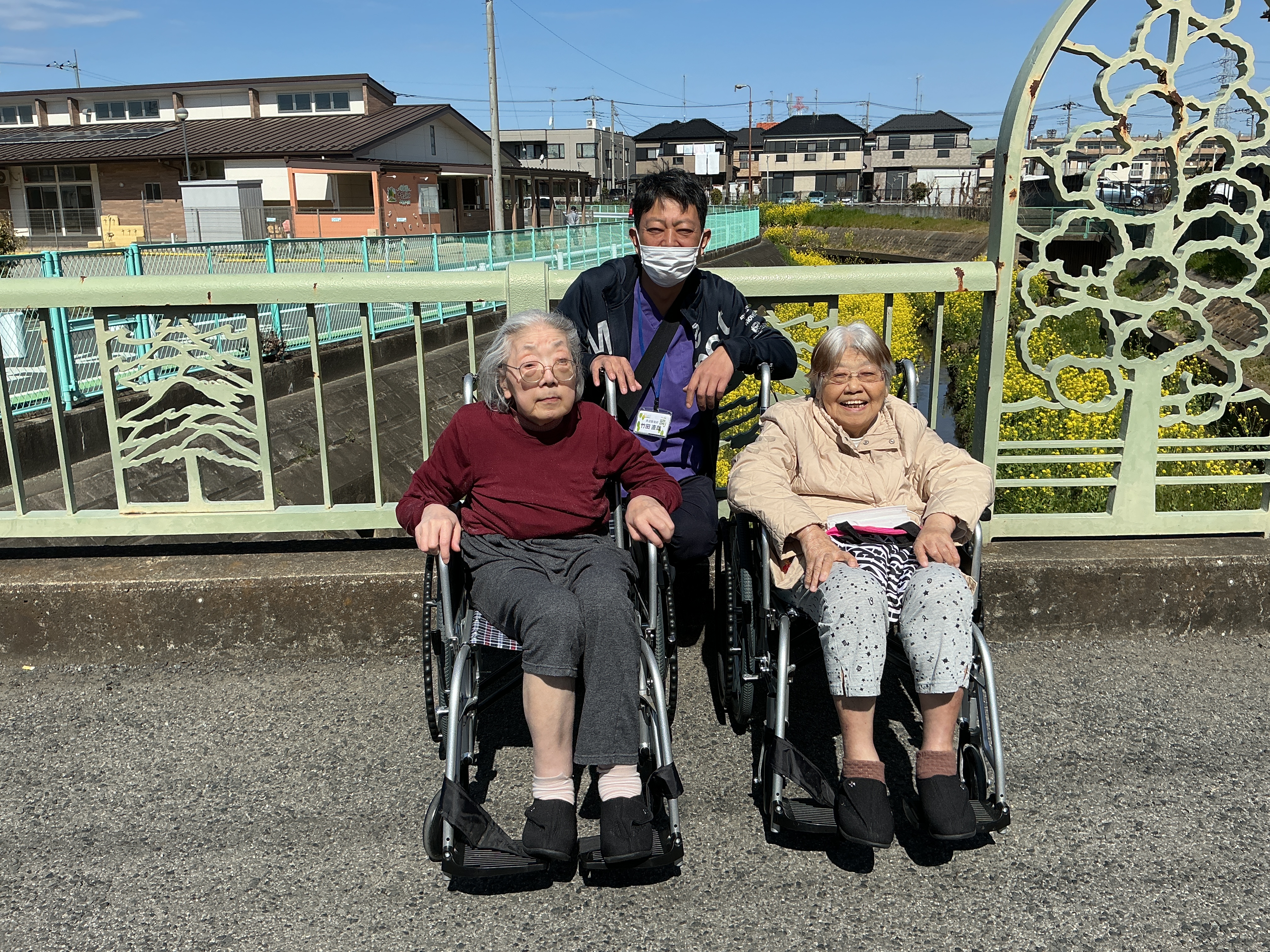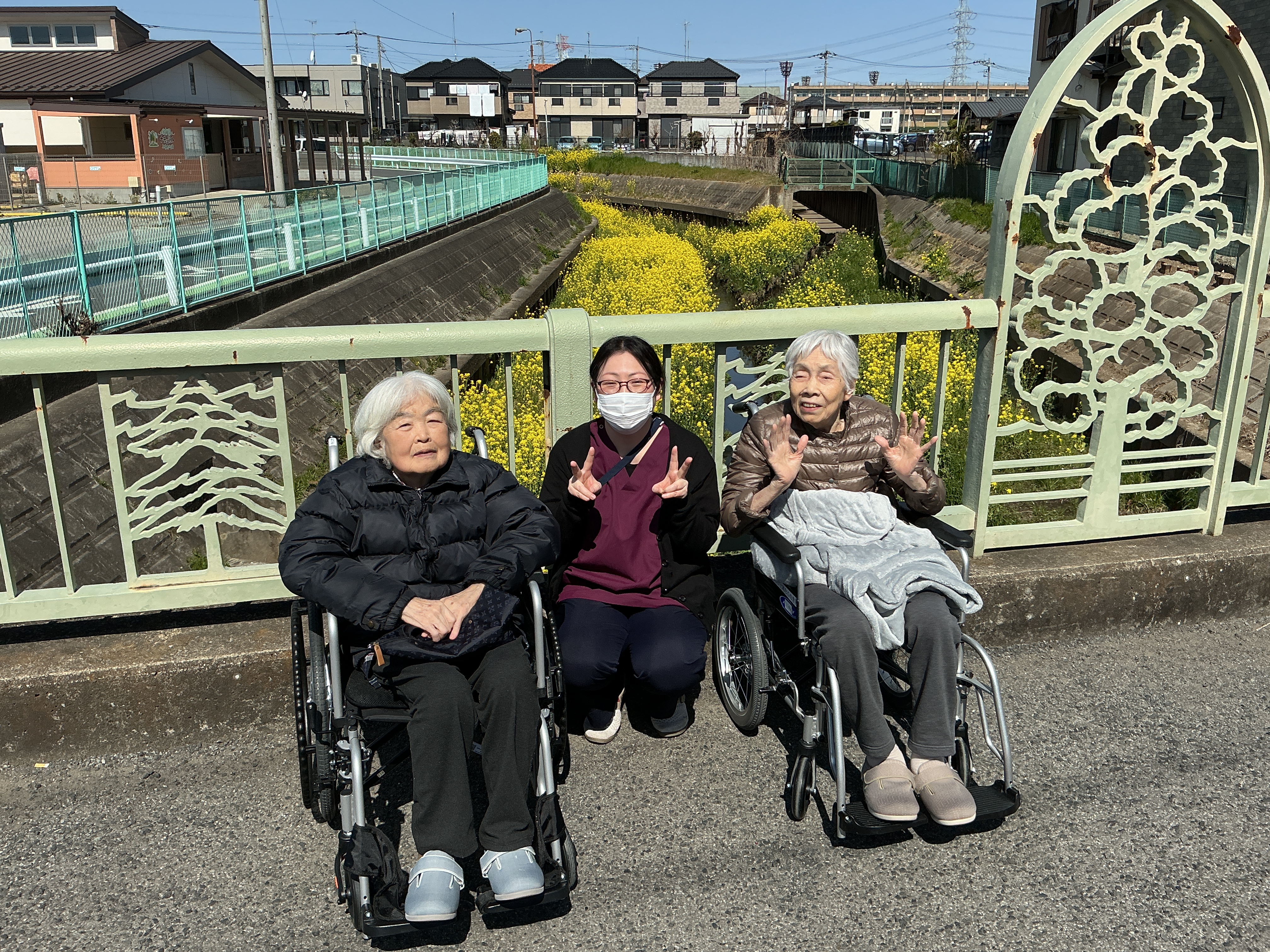 3月も半ばに入り、暖かい日も増えてまいりました。絶好のお散歩日和になったので、春の訪れを感じに行ってまいりました。みなさん久しぶりの外の空気と、咲き誇る菜の花に感動されていました。