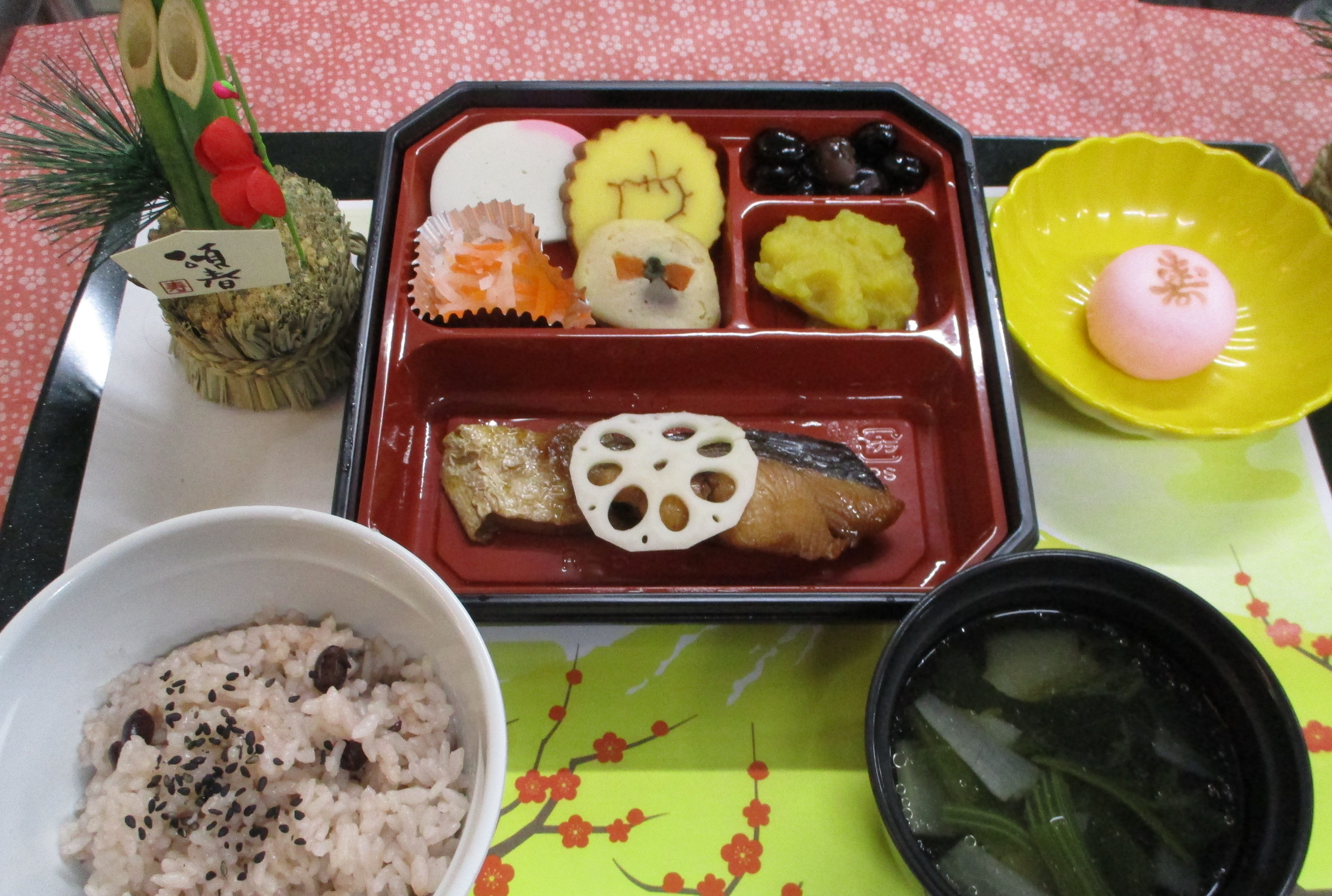 おみくじや甘酒を楽しみ、施設に帰ってお節料理を食べました(*^▽^*)