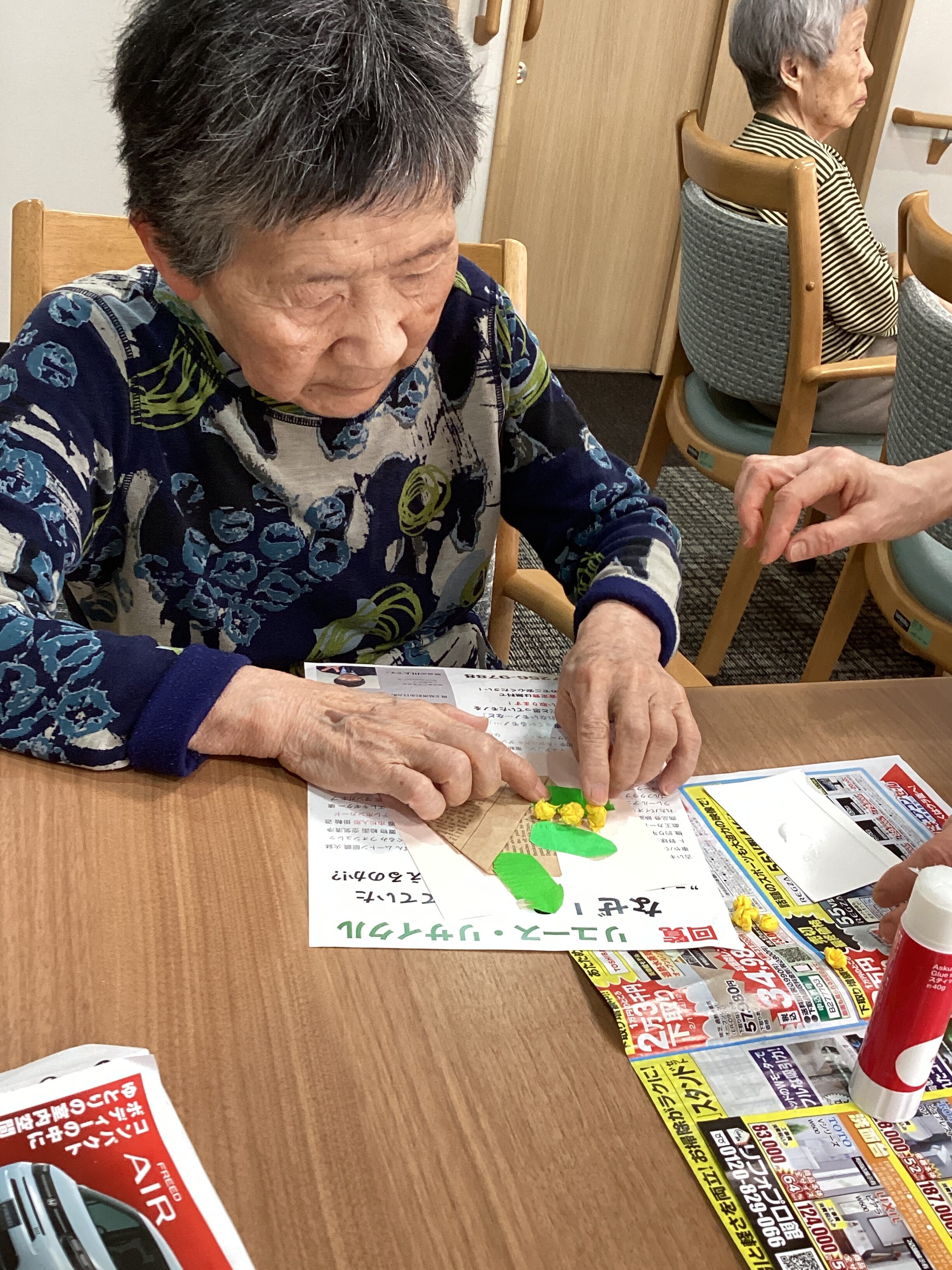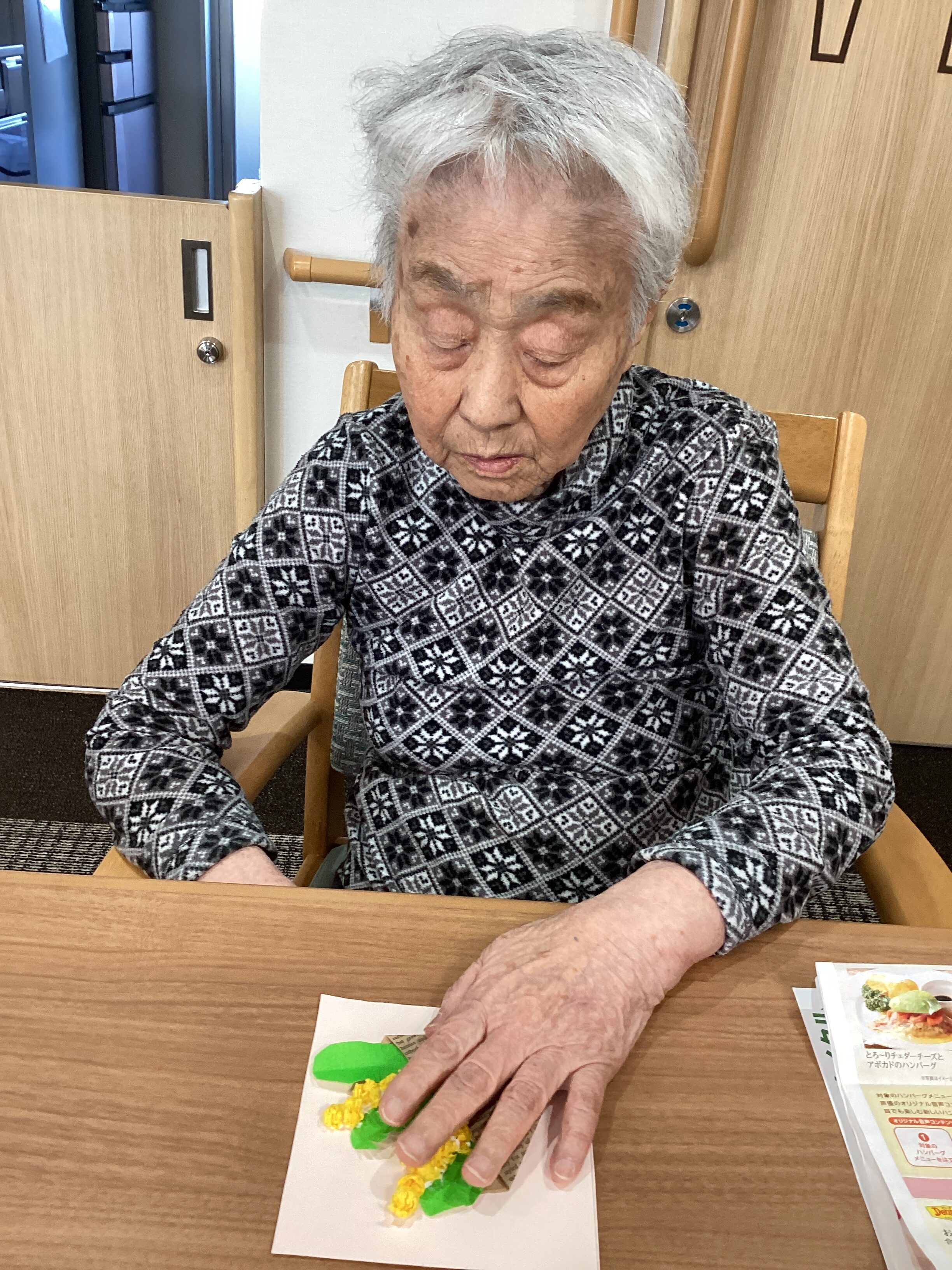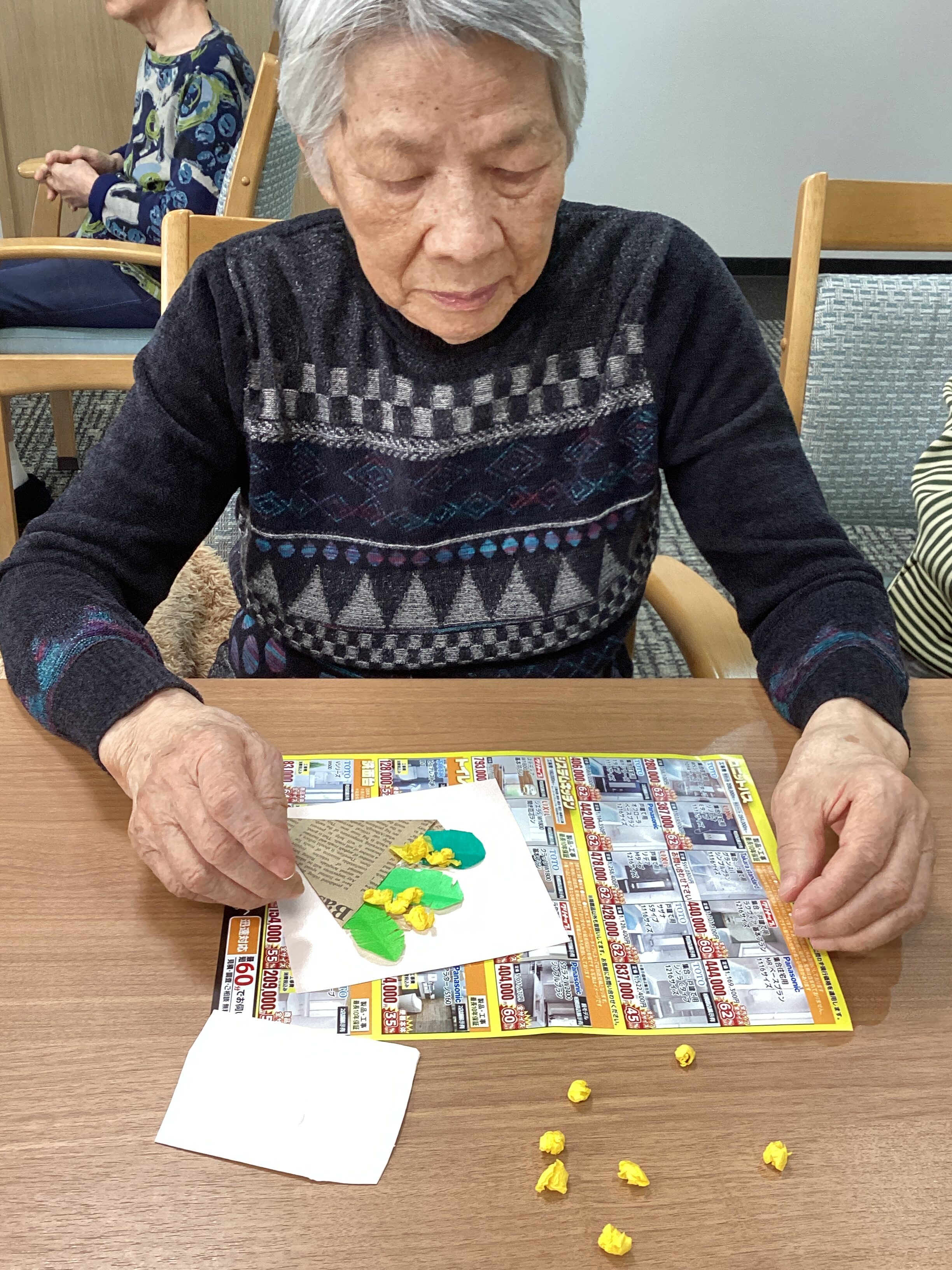 ミモザの飾りを作りました! 本物の花のような出来栄えです! 施設のミモザが咲くのもそろそろ!とても待ち遠しいです。 今年もたくさん咲いてくれますように😊