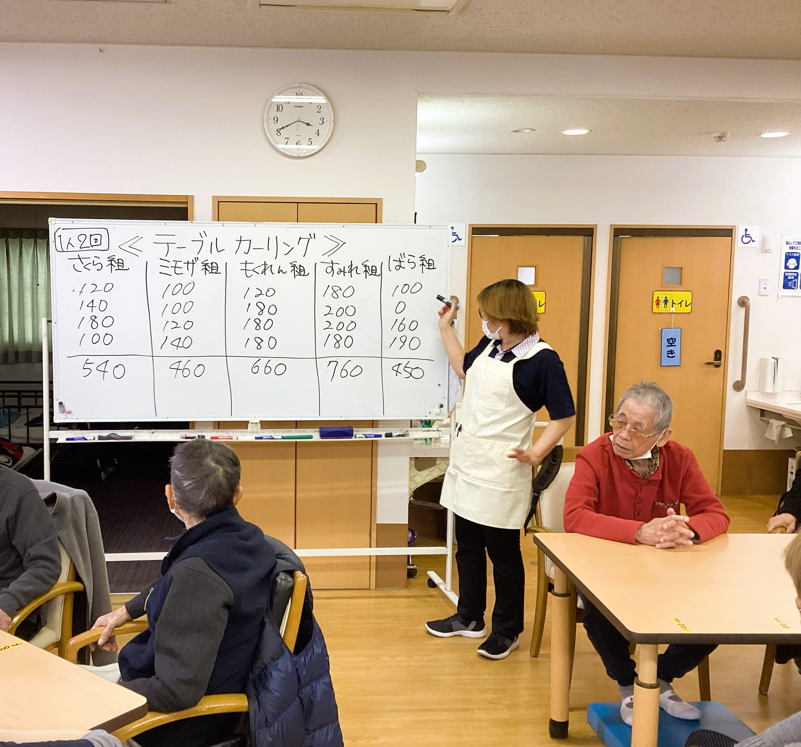 今回のテーブルゲームには、各テーブルについていたスタッフも参加しました😊👍そして、ゲームのおおとりとして所長が 各テーブルに周り参加しボーナスポイントして点数が足されました~🙌皆さんの気持ちを一心に背負い気迫の1球です😂