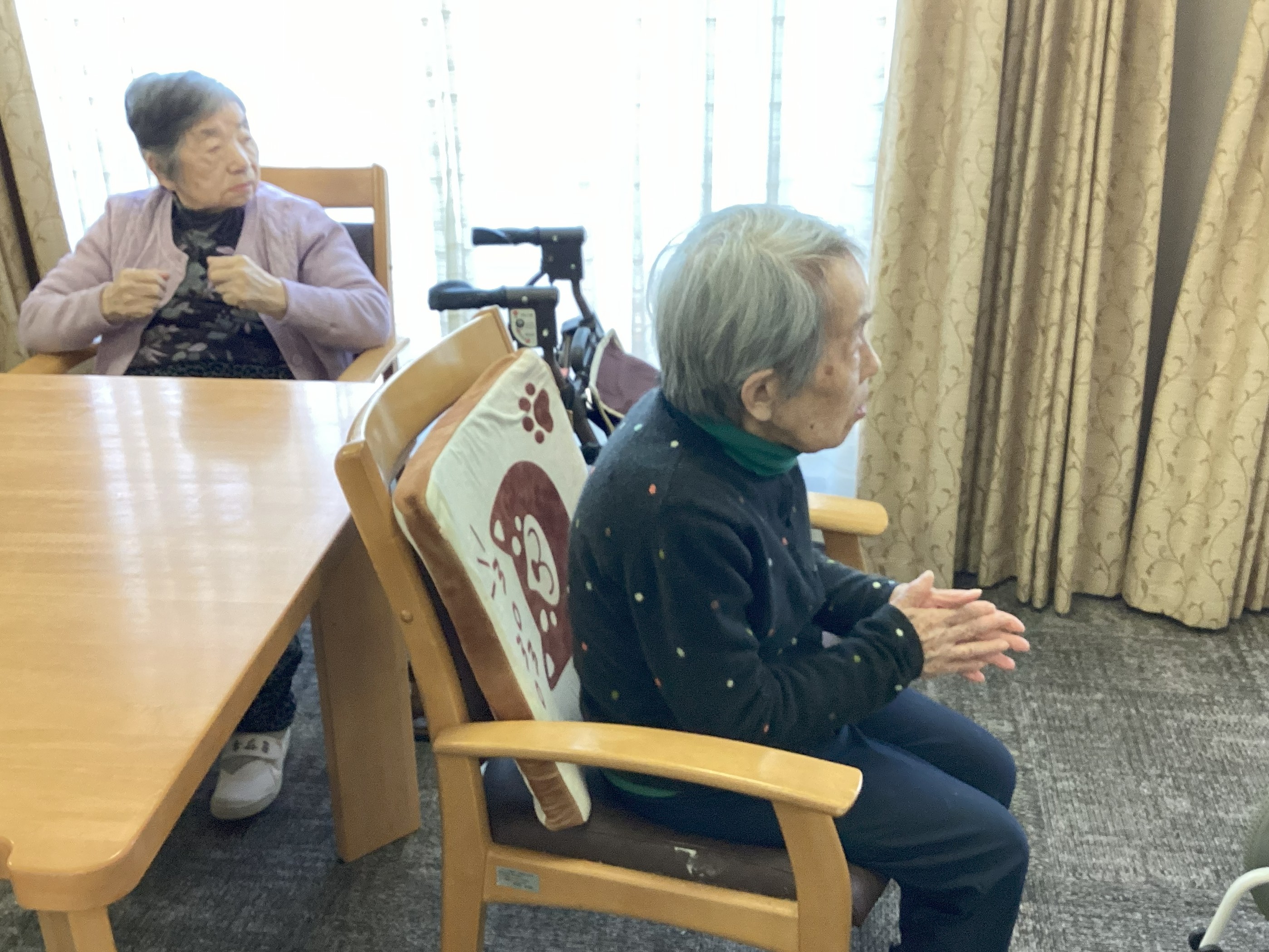 動画を観ながら体操の時間・・・ 日常の様子の撮影をしていると、カメラ目線で笑顔を向けてくれるようになりました(#^^#) 良いですね❣