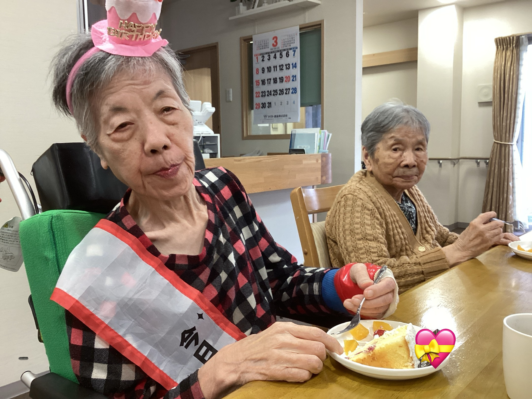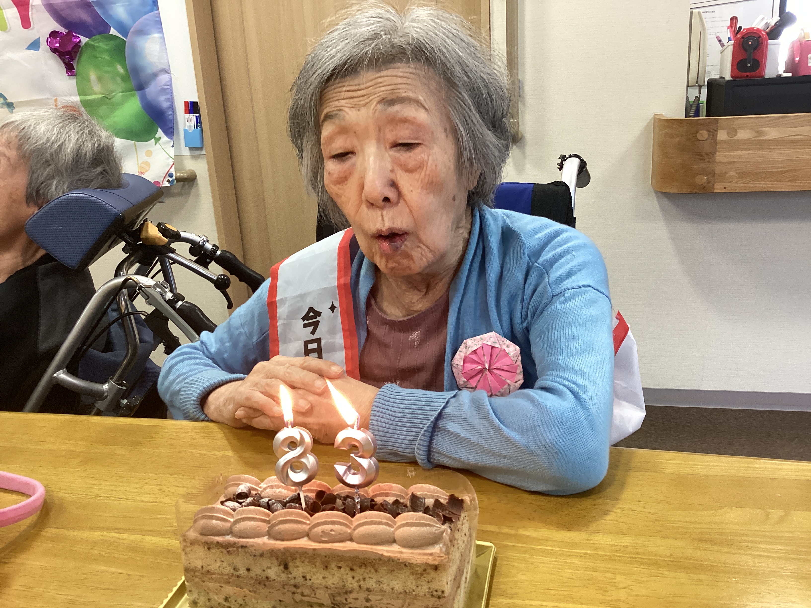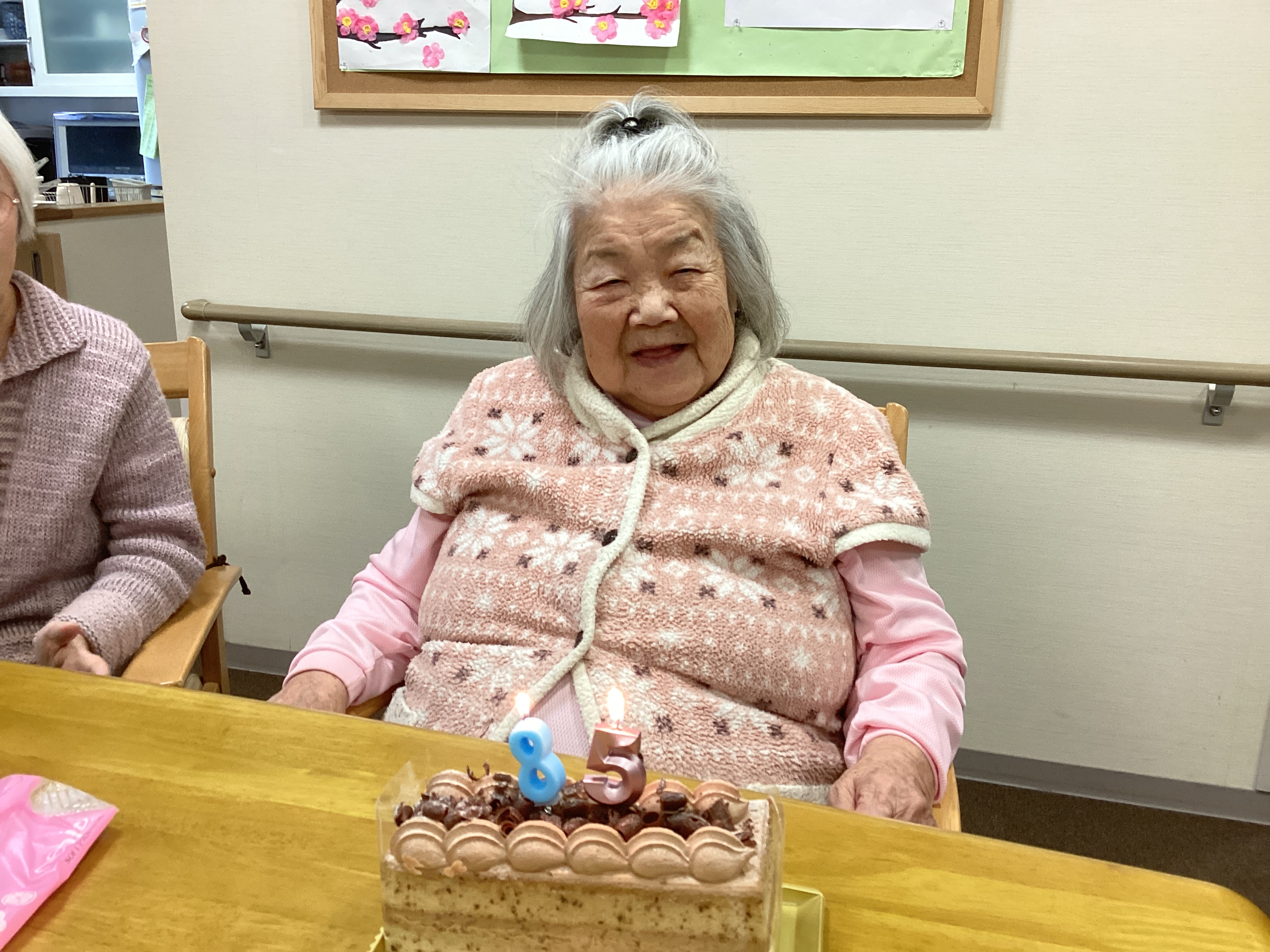 2月、3月生まれのご入居者のお誕生日会を開催しました💐みんなでバースデーソングを歌ったあとで主役はロウソクを勢い良く吹き消しました😊そしてみんながお楽しみのケーキを満面の笑みで食べました❤️「もっと食べたいね」という声が聞こえてきましたよ😁