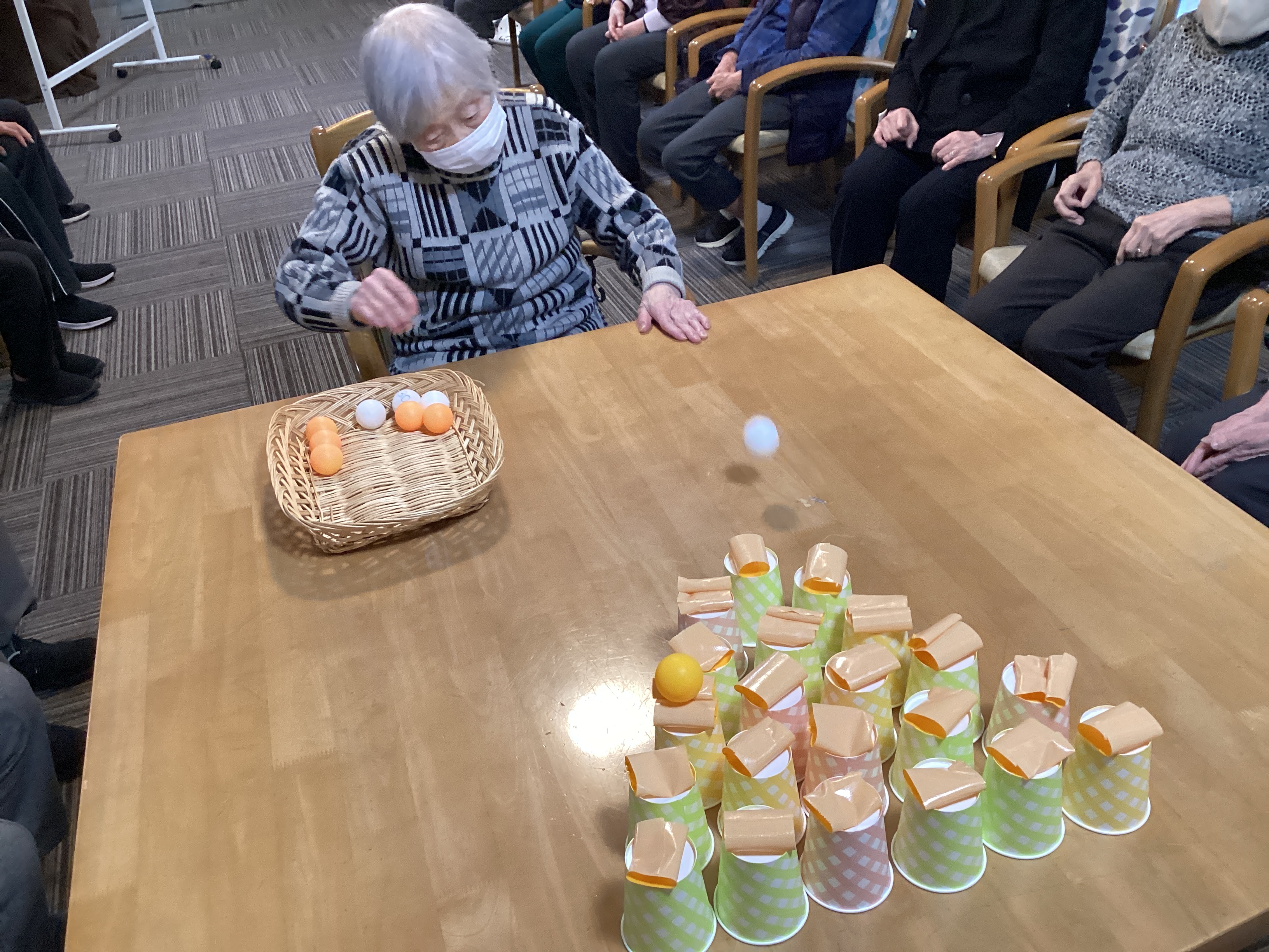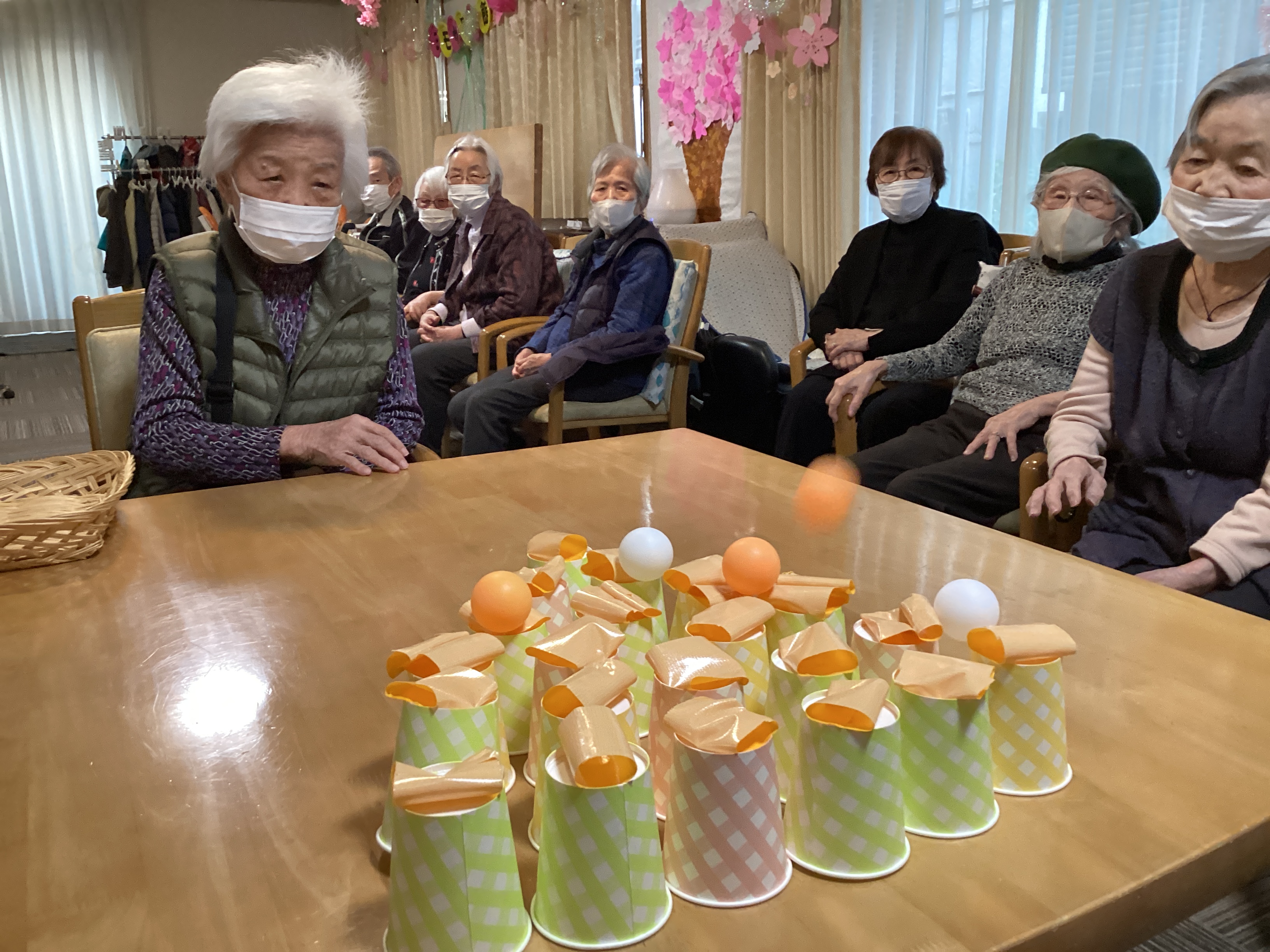 紙コップの上にピンポン玉がくっつけば得点です🎵 一回バウンドさせるのですが、 皆様とても上手で高得点ばかりでした👏