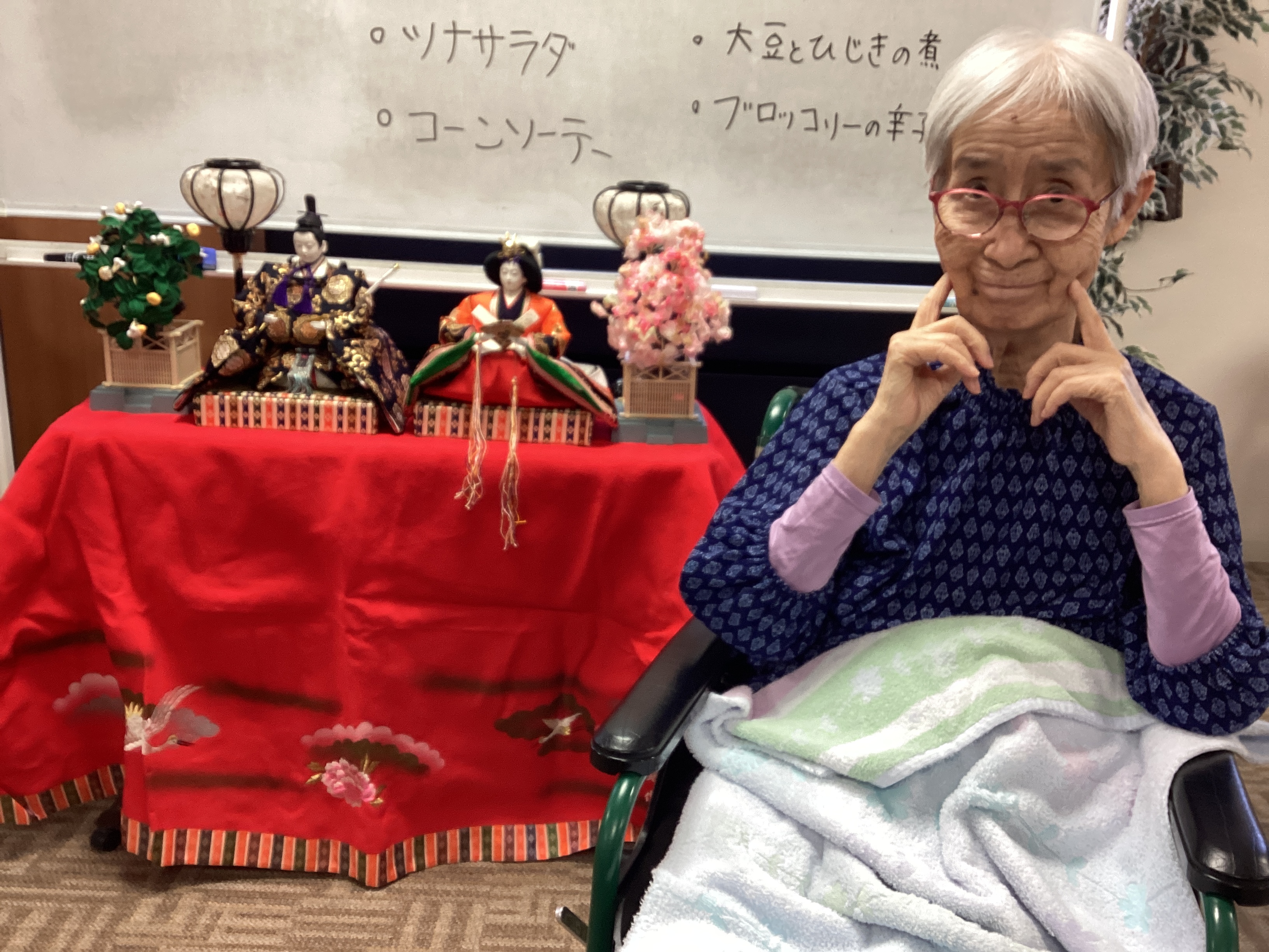 今年もひな壇をフロアにご用意しました。かわいらしいと多くのご利用者から好評です。