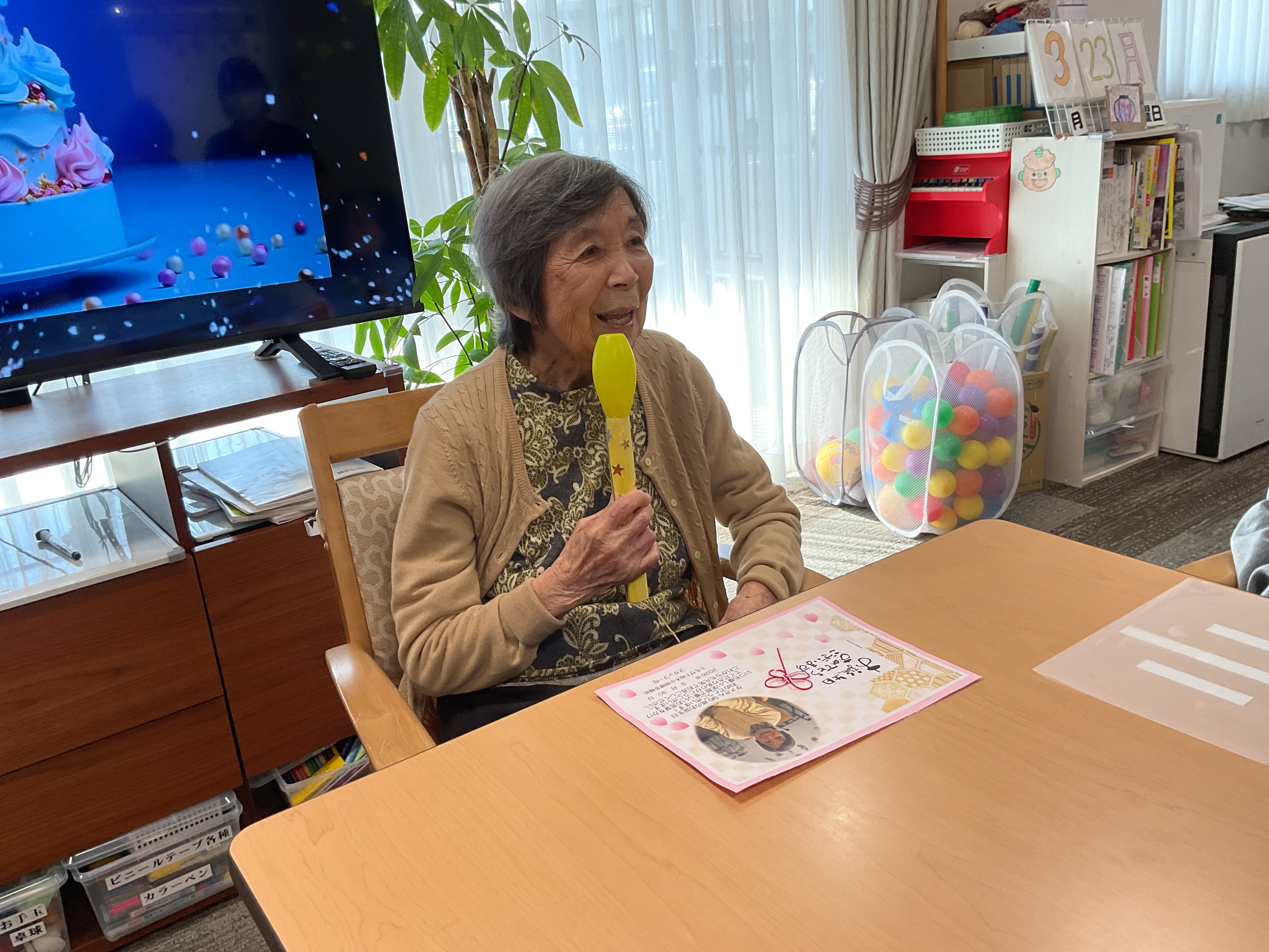 先日もお誕生日会をしましたが、本日もお誕生日会を開催しました!とてもご高齢には見えないほどお元気でしっかりされた方です。皆様に向け「今日はありがとうございます」と感謝の気持ちを仰ってました。これからもお元気でお過ごしください!