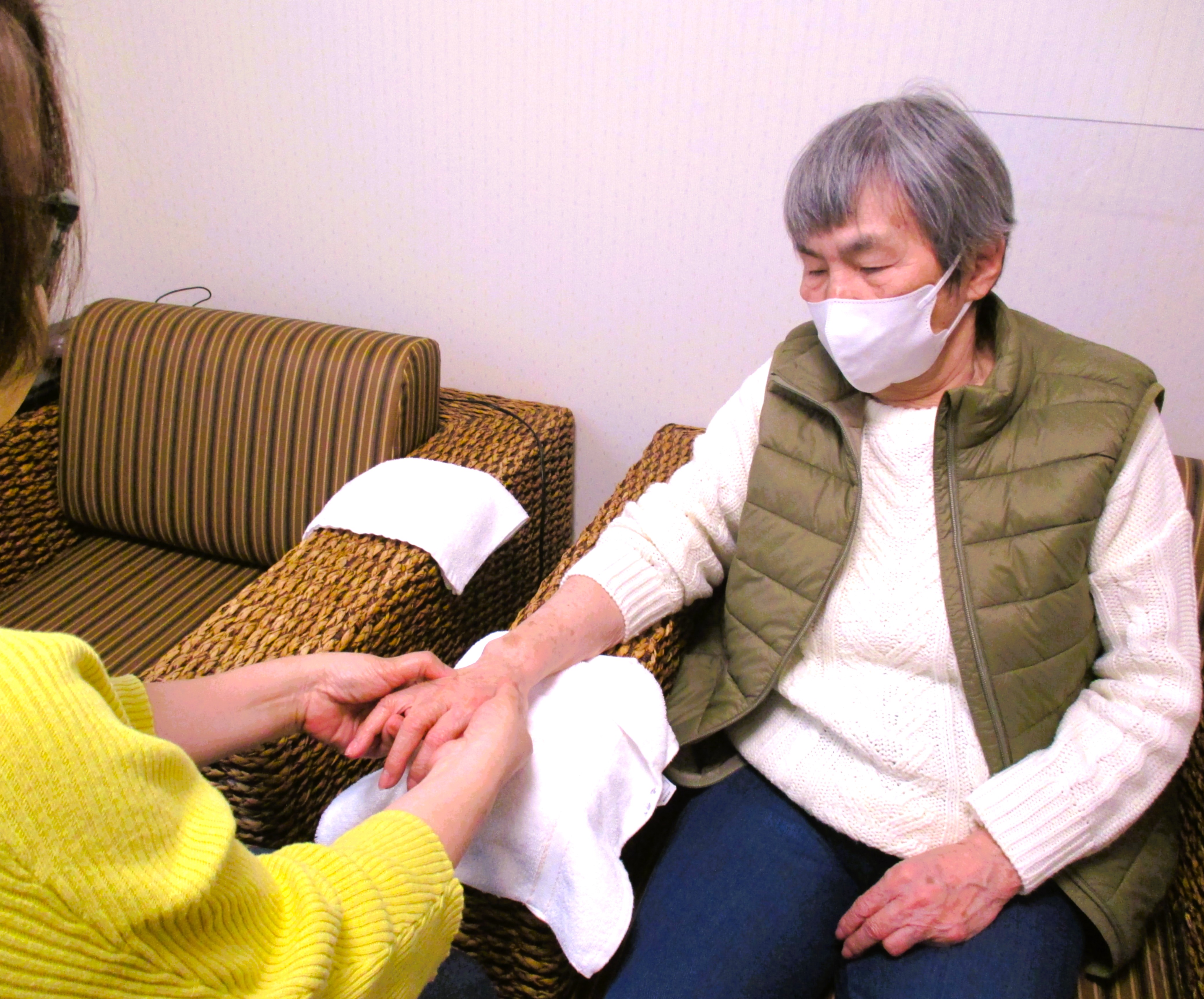 ボランティアさんにハンドケアマッサージをして頂きました (*^^*) 乾燥でカサカサの手もしっとりもちもちに ♡ 順番待ちの間に焼きたてパンをご購入されました! 本日も皆様の笑顔溢れる やまぶき苑でした ♬