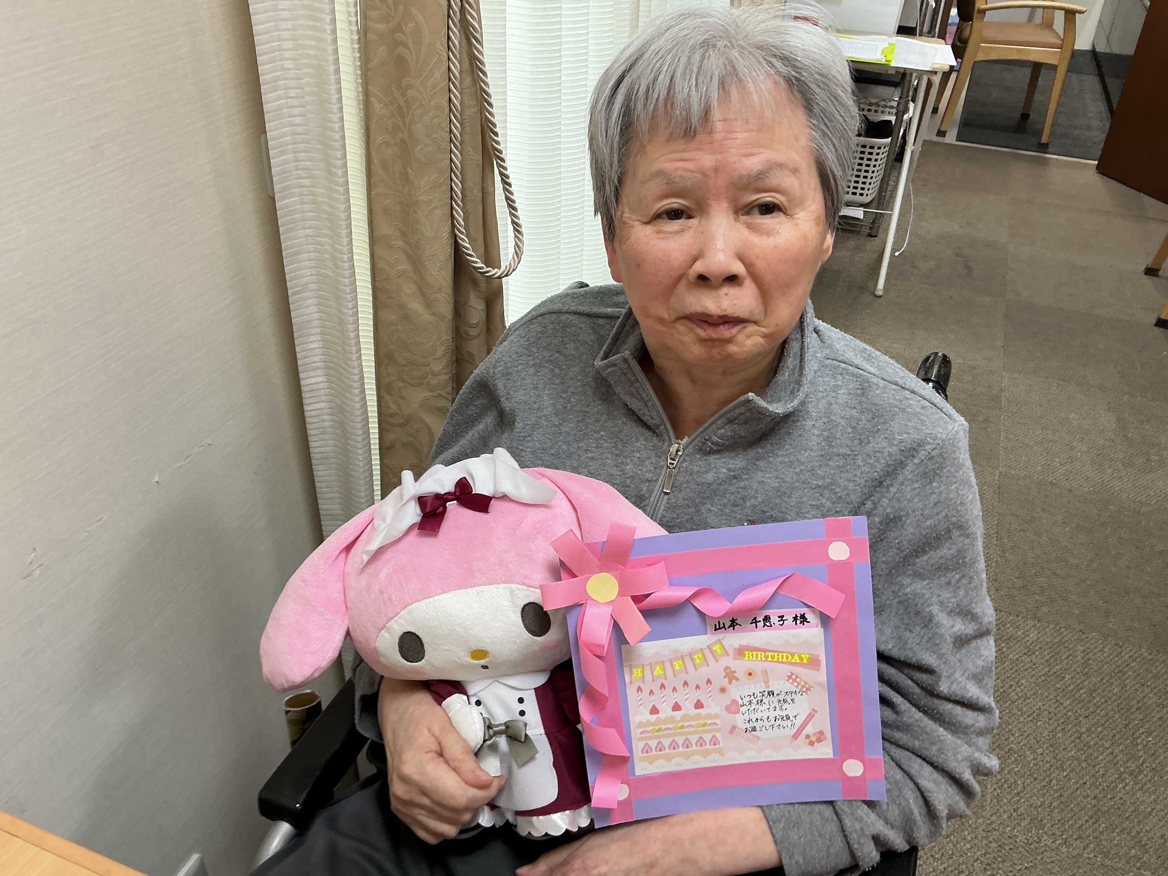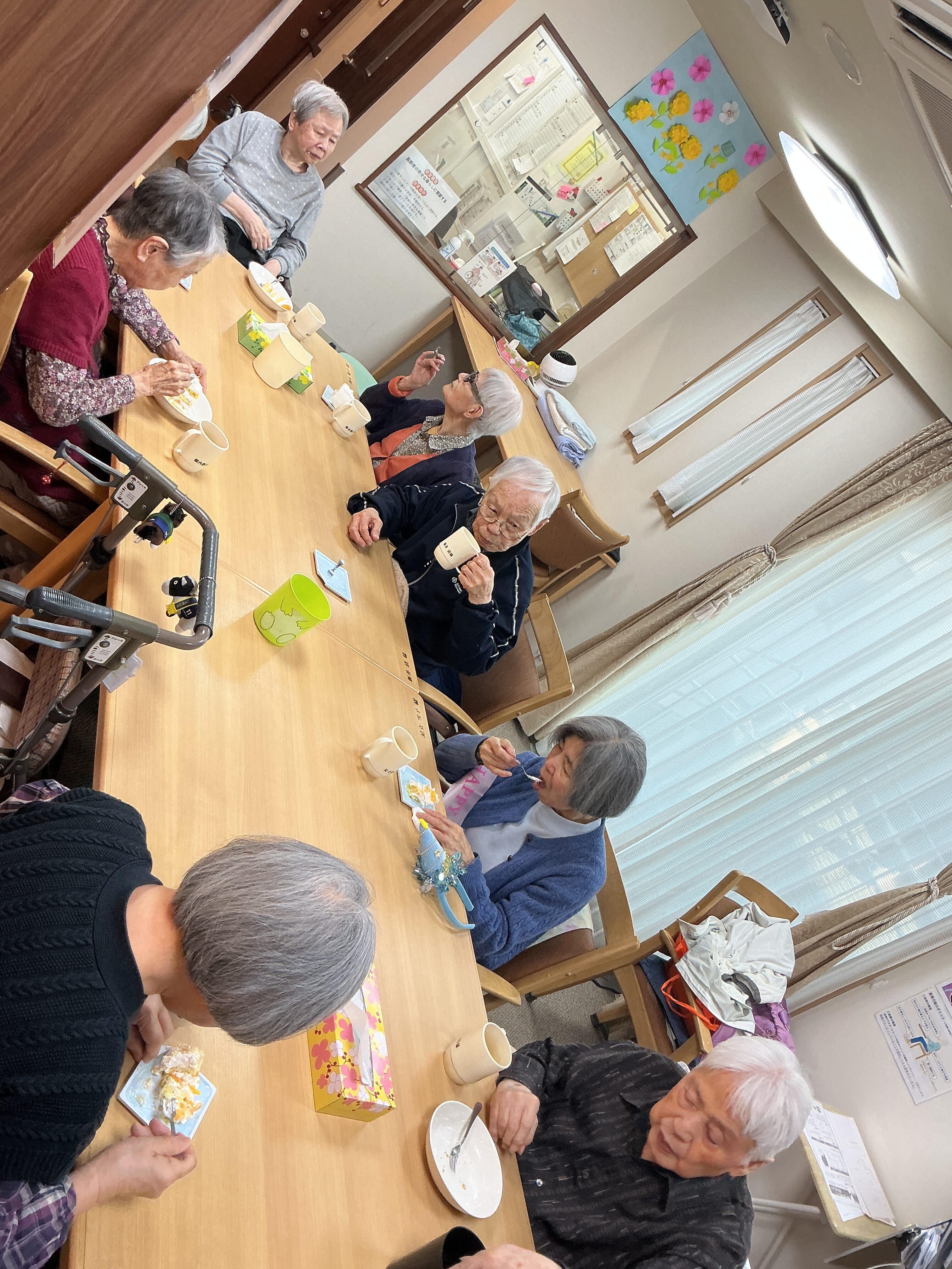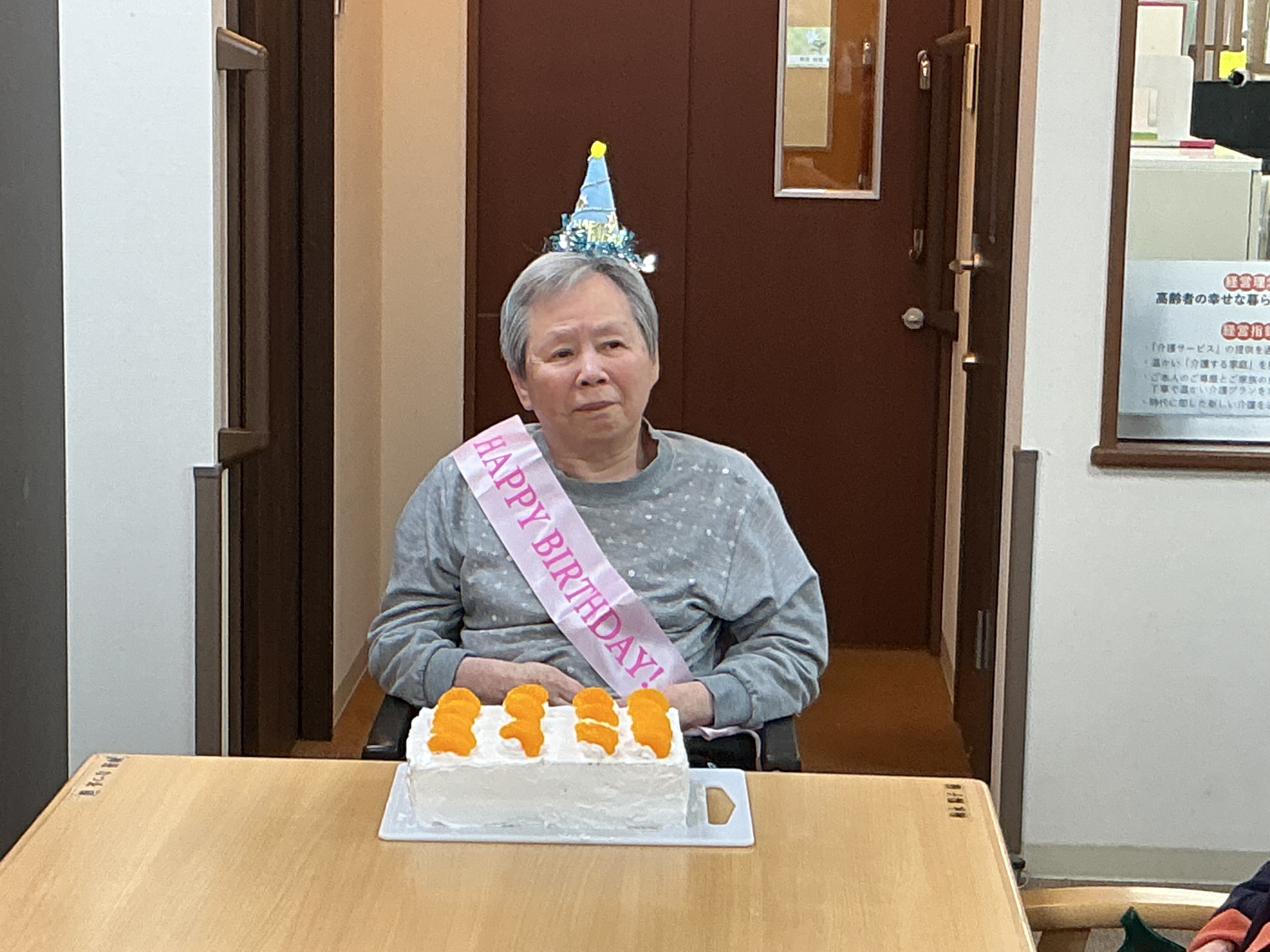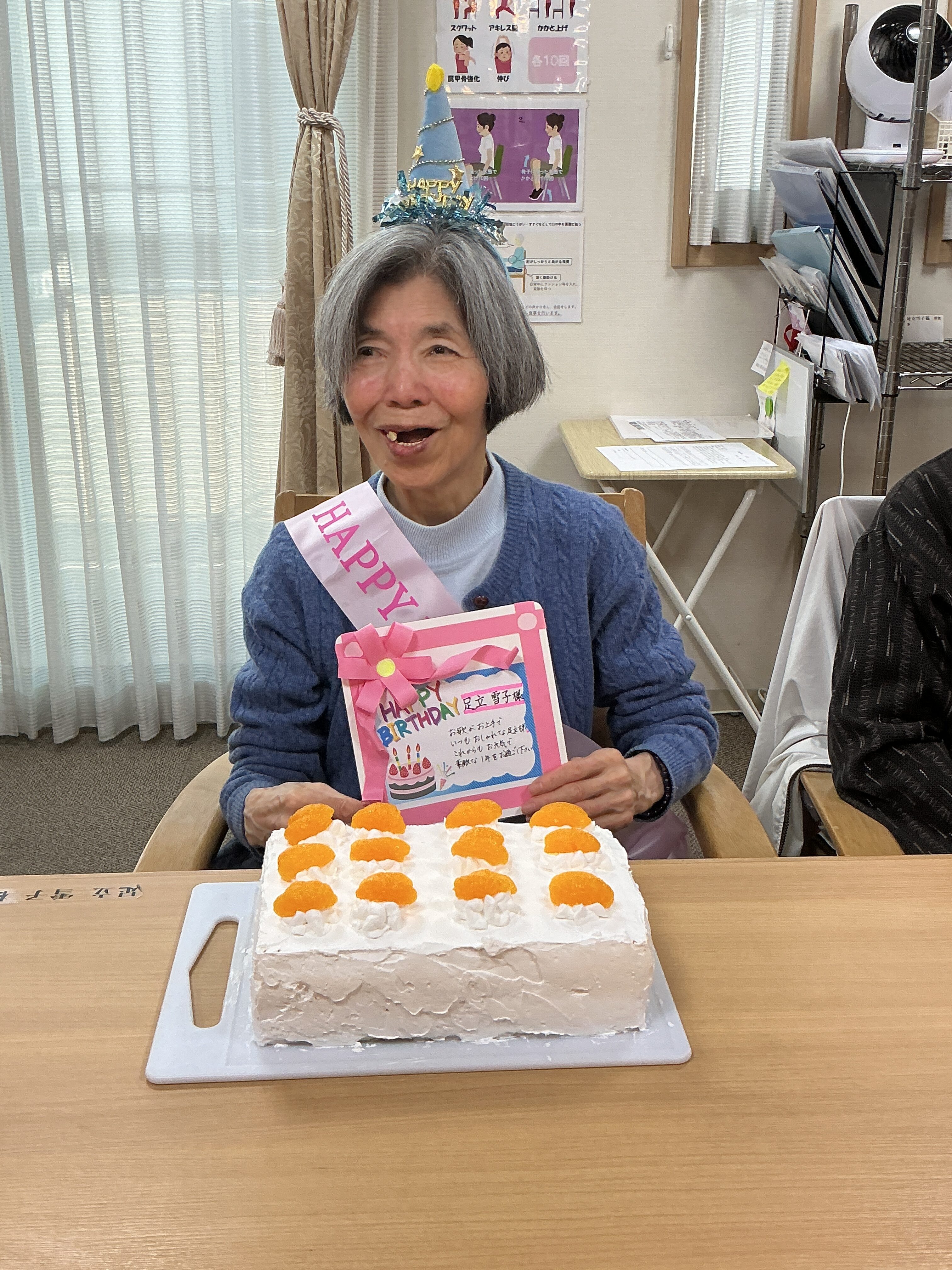 2月・3月の合同の誕生日会を行いました。大きなケーキを囲み皆でお祝いしました。