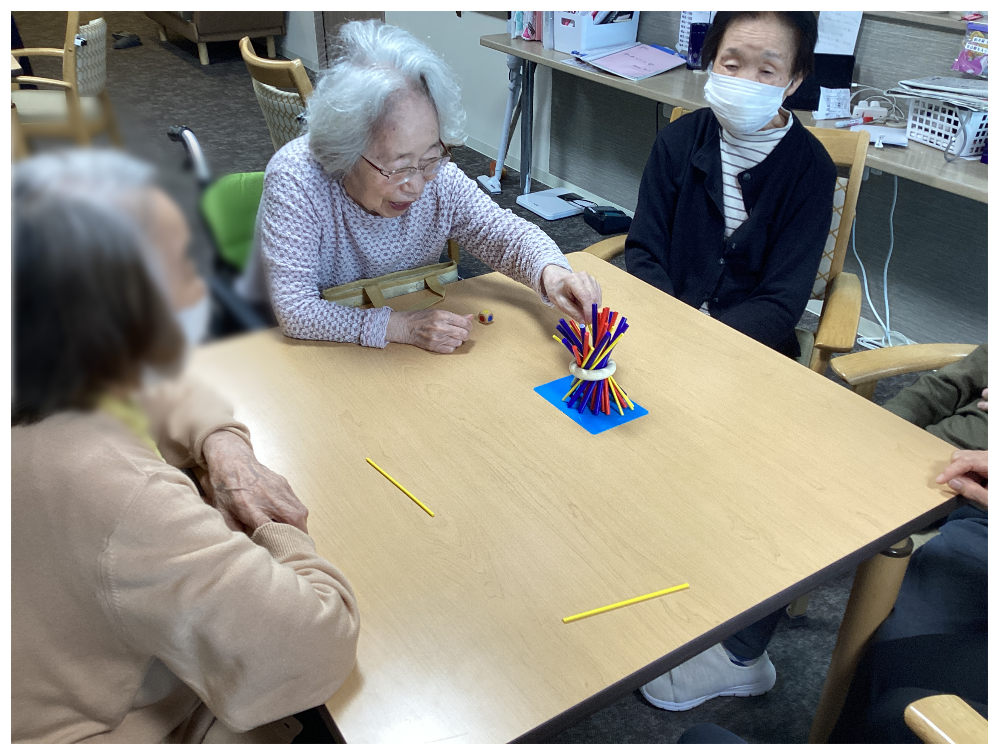 最近ミモザ岩槻加倉では、”スティッキー”というゲームが流行っています✨ サイコロを振って出た色の棒を倒さないように引いていく簡単なゲームです! 皆様とても上手に引いていかれます☺ 楽しく、指先の運動にもなり一石二鳥ですね🍀