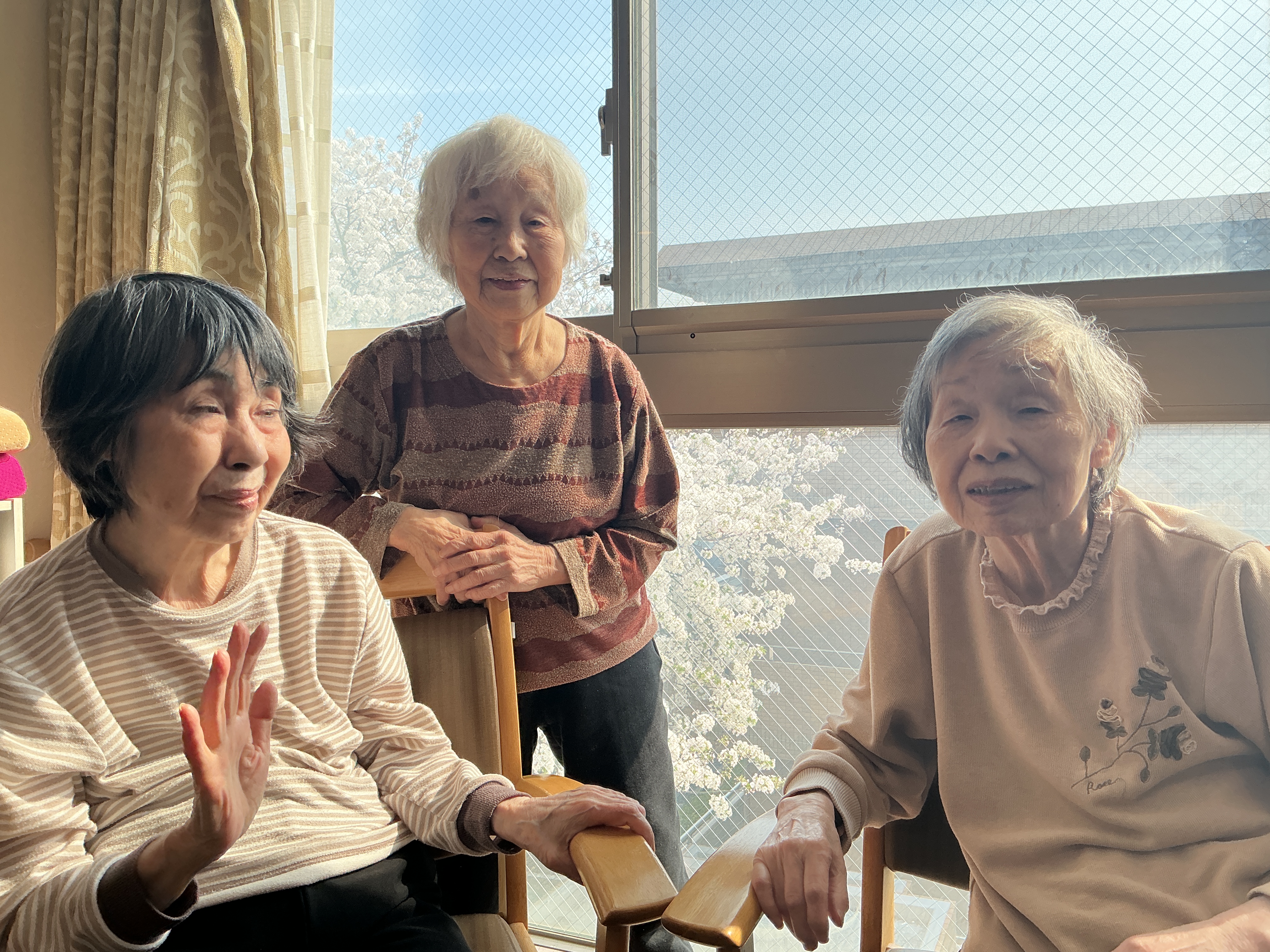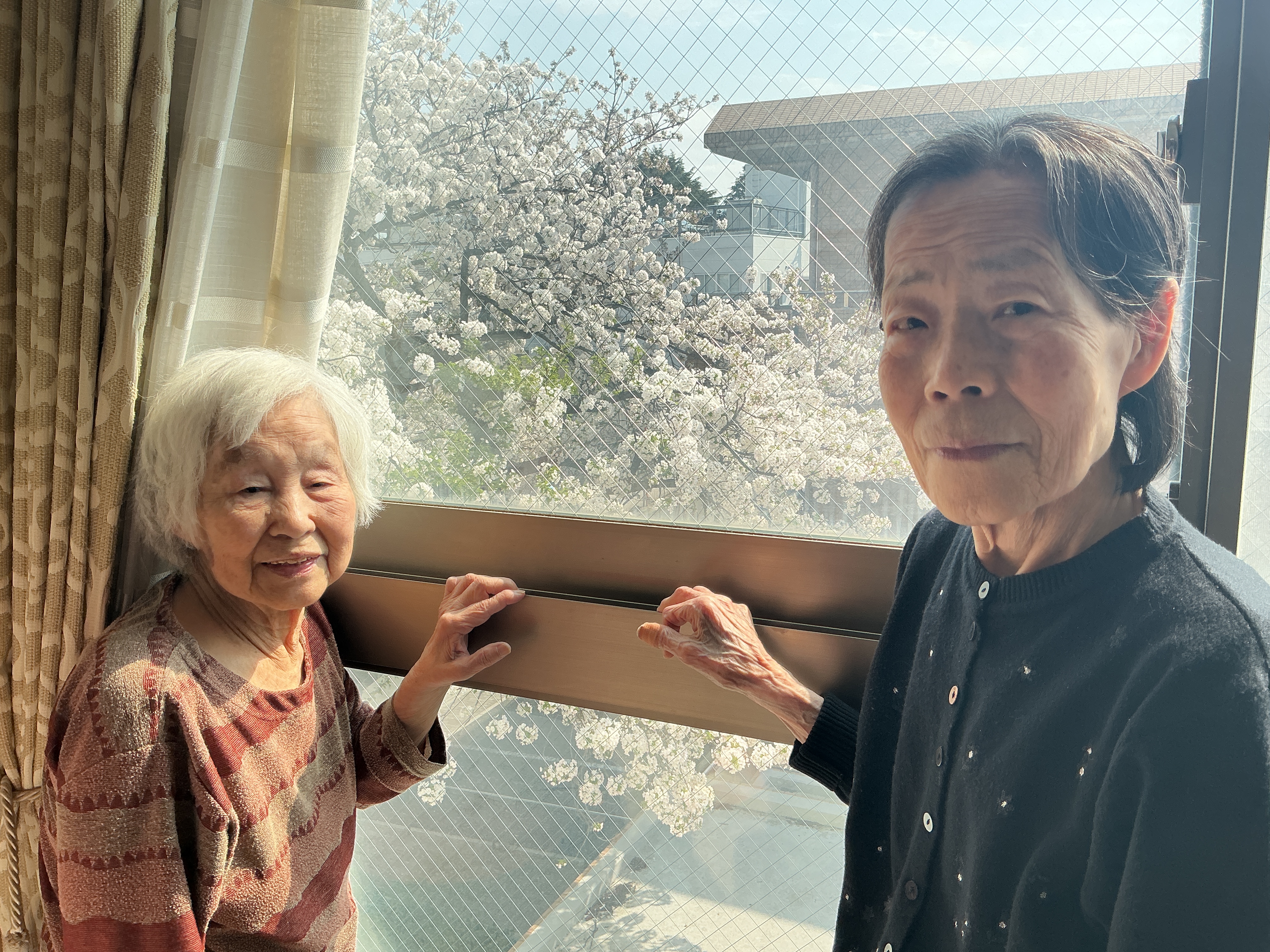 室内から隣りの桜がとっても綺麗に見ることが出来ます。皆様「綺麗ね」と笑顔でお花見を楽しまれていました。