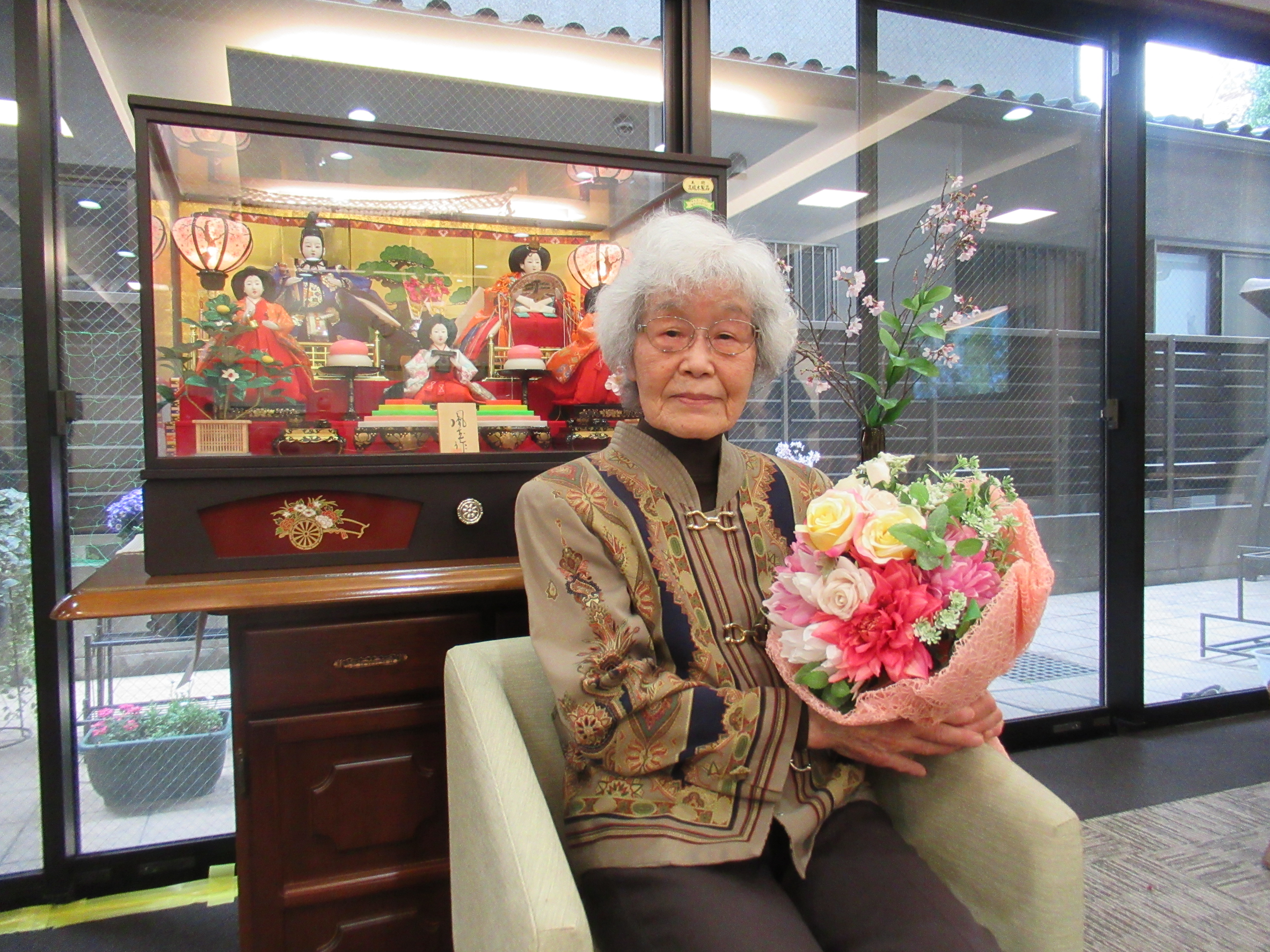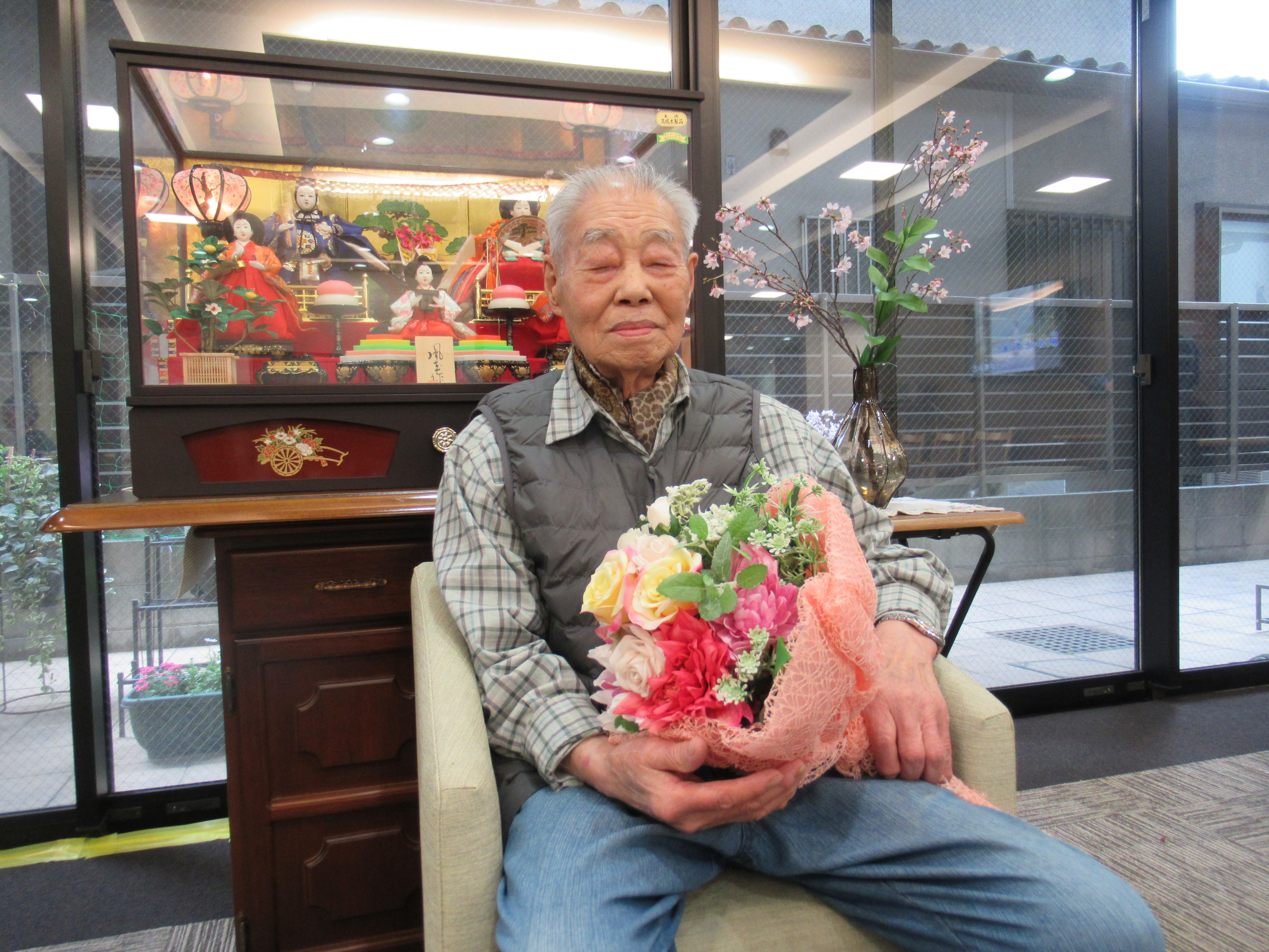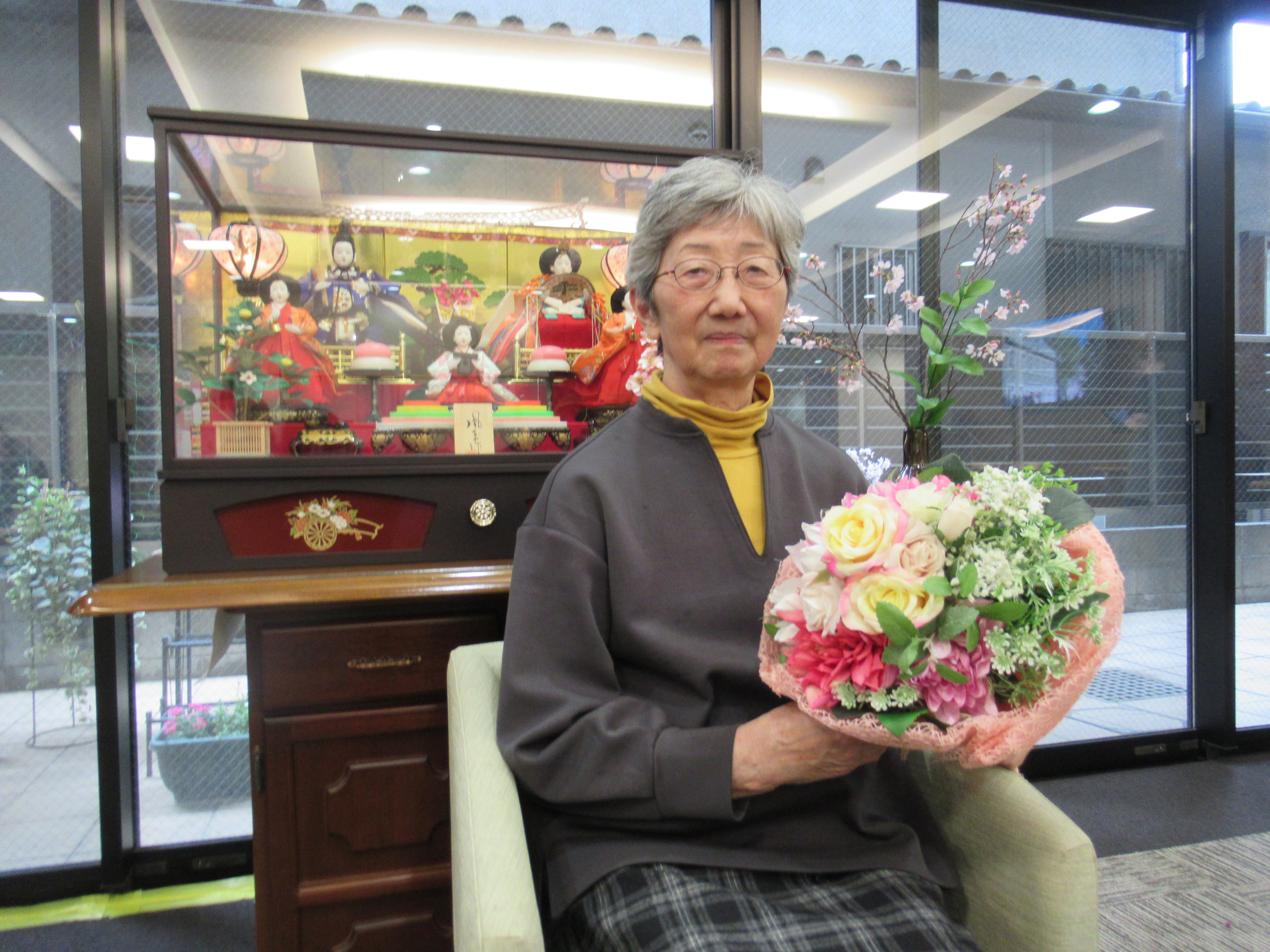 三月のお誕生日会を行いました 三月のお生まれの方は他の月に比べると人数が多く賑やかでした。 今月はバームクーヘンをご用意させて頂き皆様でお祝いを致しました。 いつまでもお元気でミモザでお過ごし下さい。