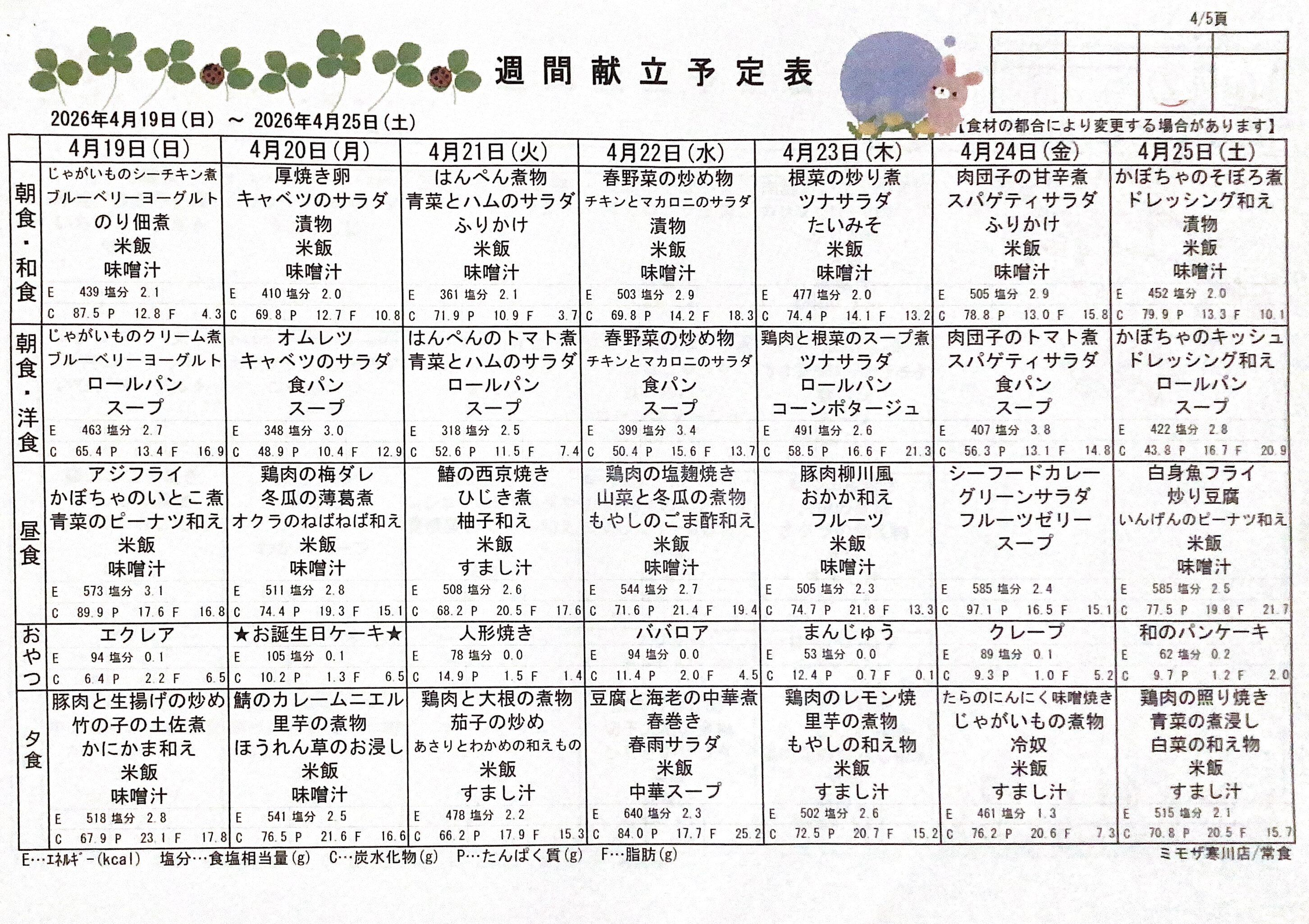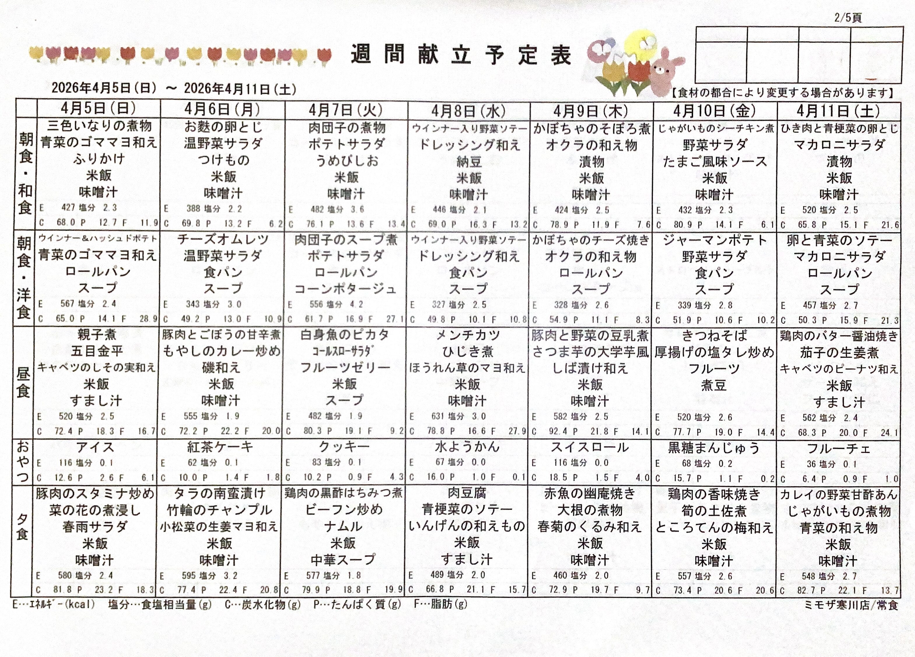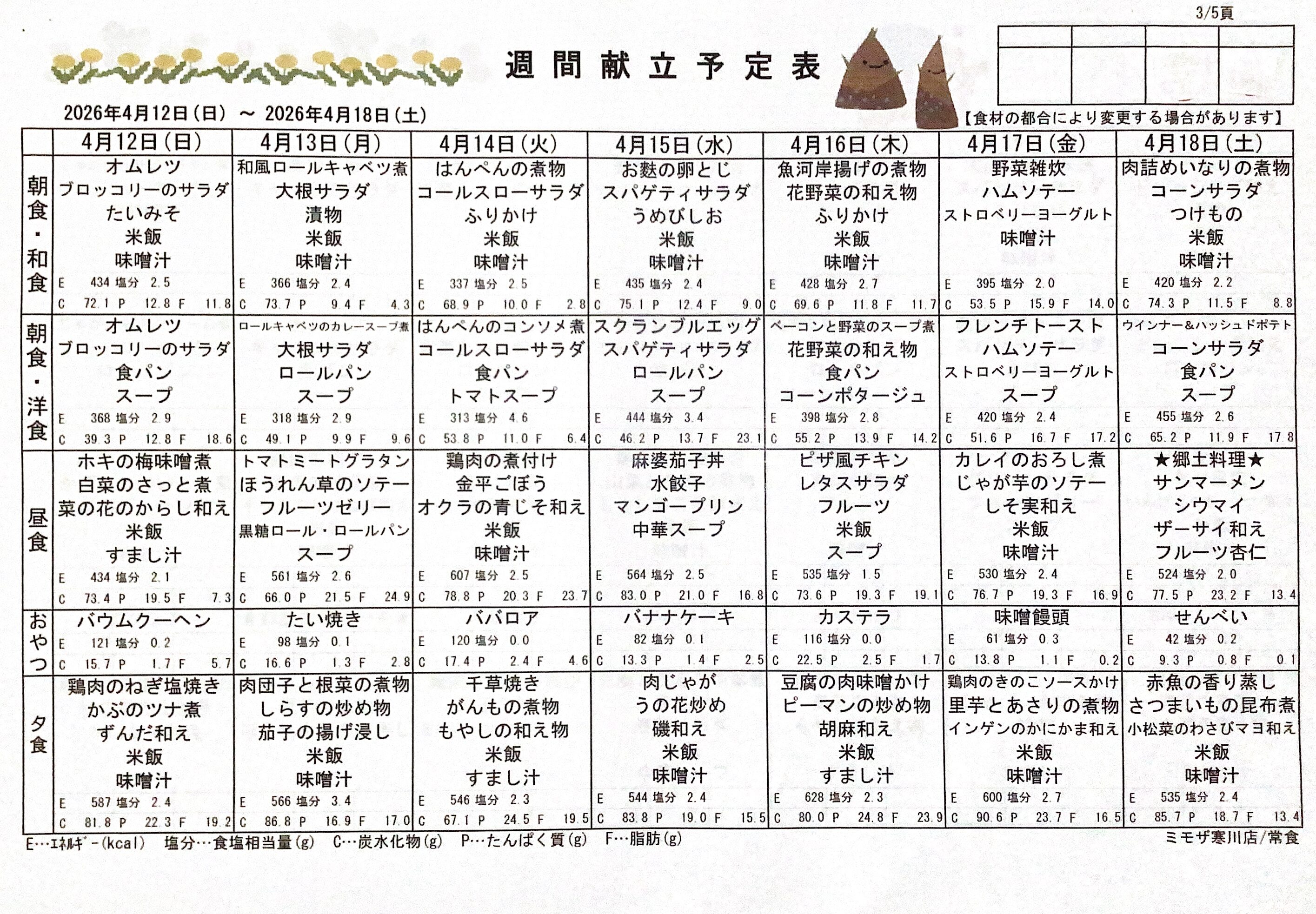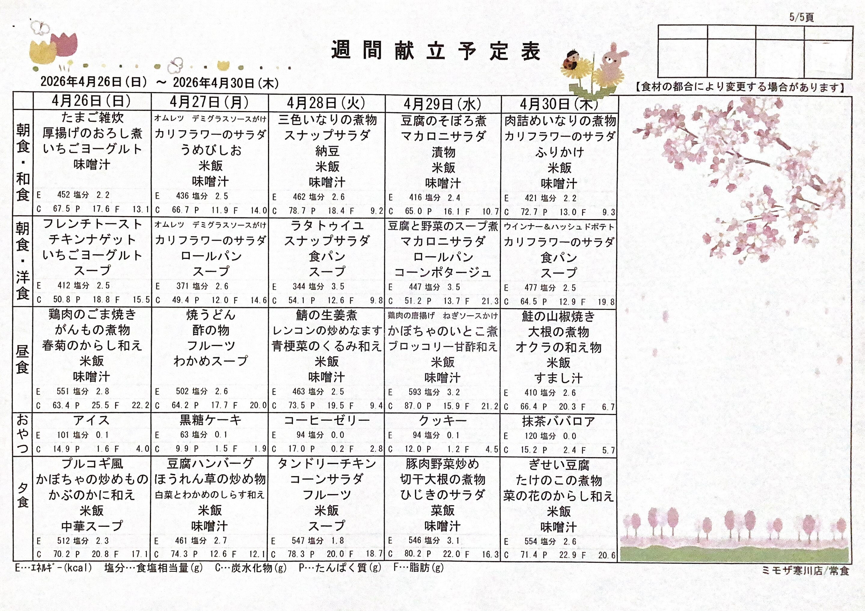 4月2日(木)お花見特別ランチは【天ぷら・炊き合わせ・菜の花のからし和え・桜ご飯・若竹汁】です。4月18日(土)郷土料理特別ランチは【サンマーメン・シュウマイ・ザーサイ和え・フルーツ杏仁】。横浜発祥の麵料理です。お楽しみに!