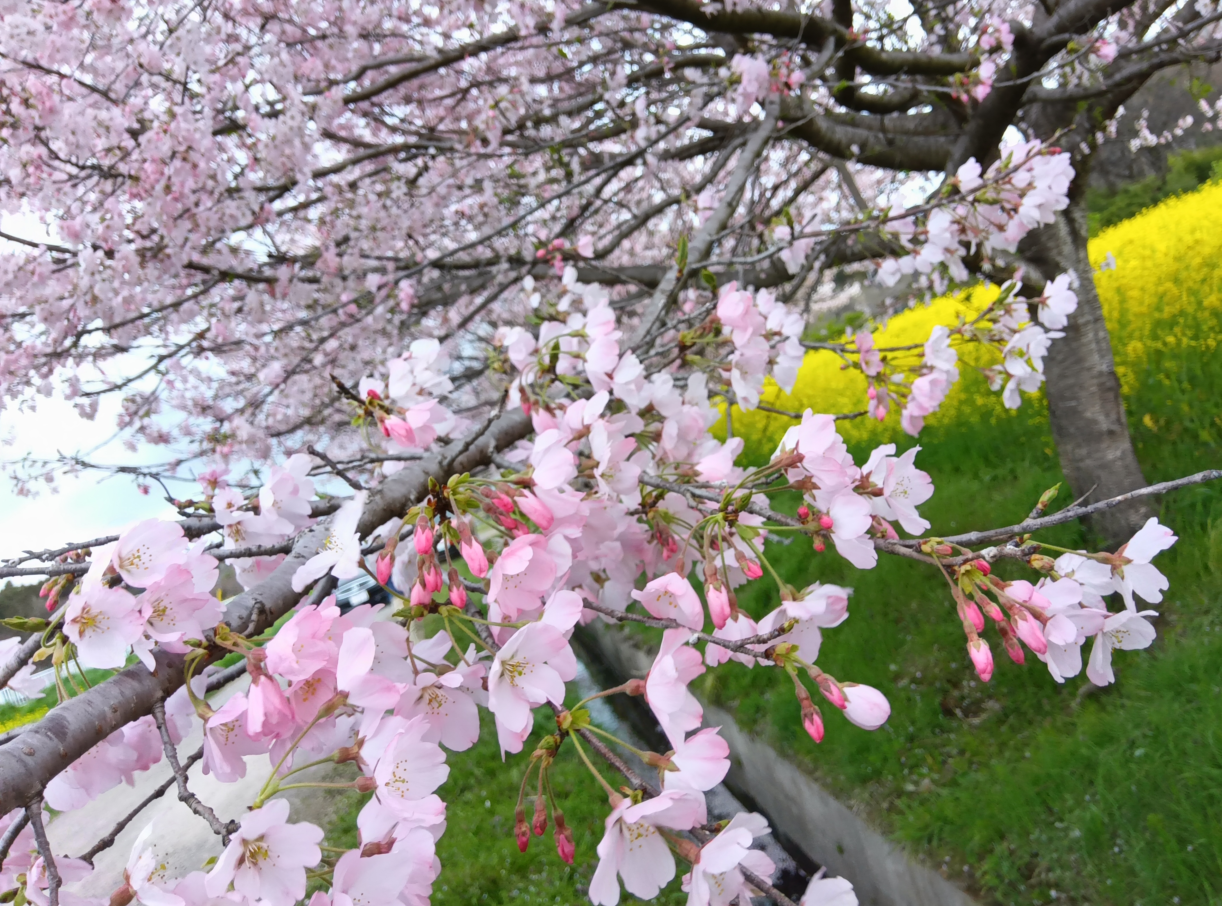 ドライブして花見に行った先には、菜の花と桜のコラボレーション🌸 思わず息を呑むほどの美しさ...🌸