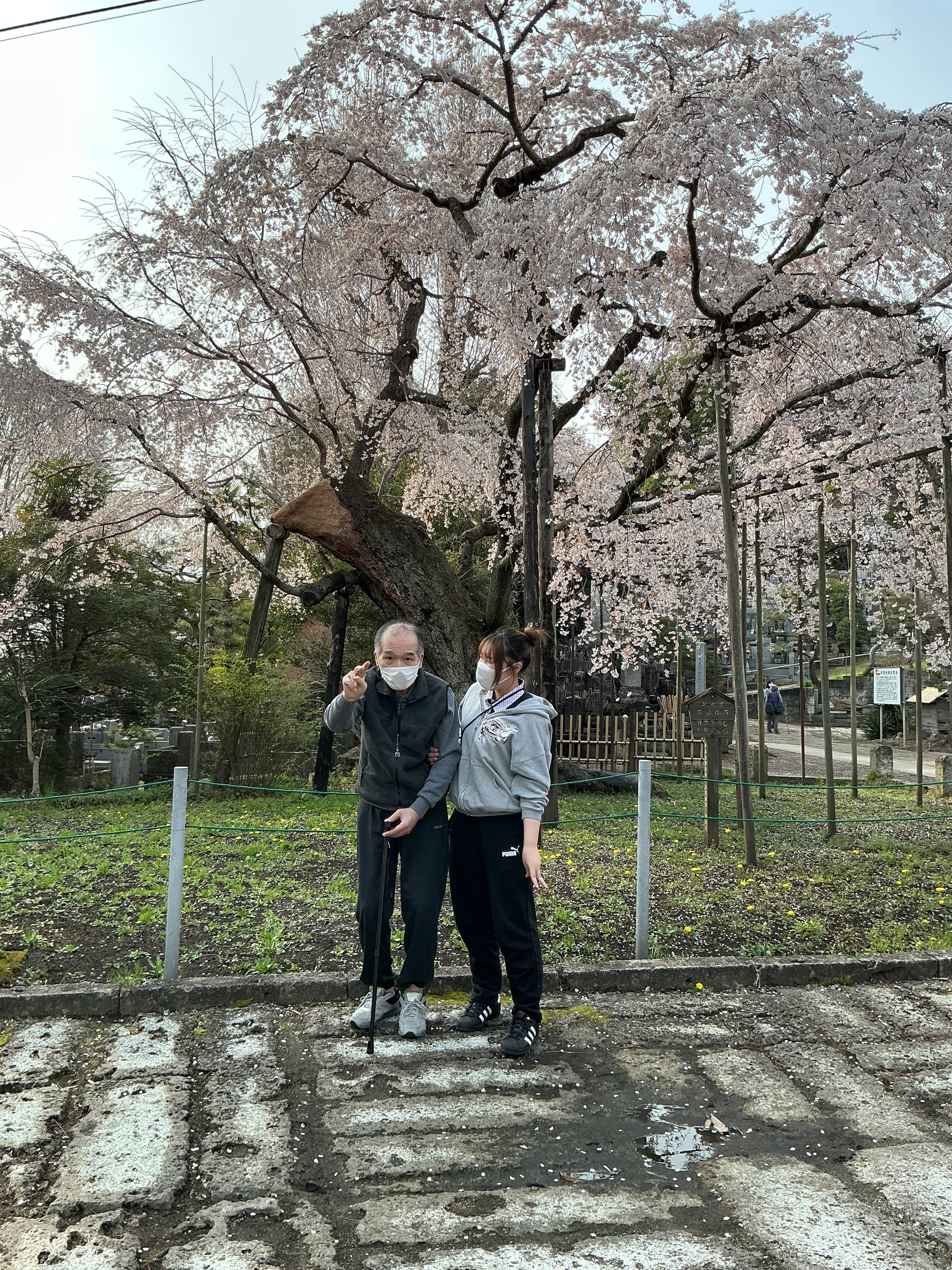 近くの公園にソメイヨシノの桜を見ながら散歩へ出かけました。 一周がとても距離があるところですが、皆様、綺麗なものをみながらだったため 疲れを知らずに歩き続けておりました。