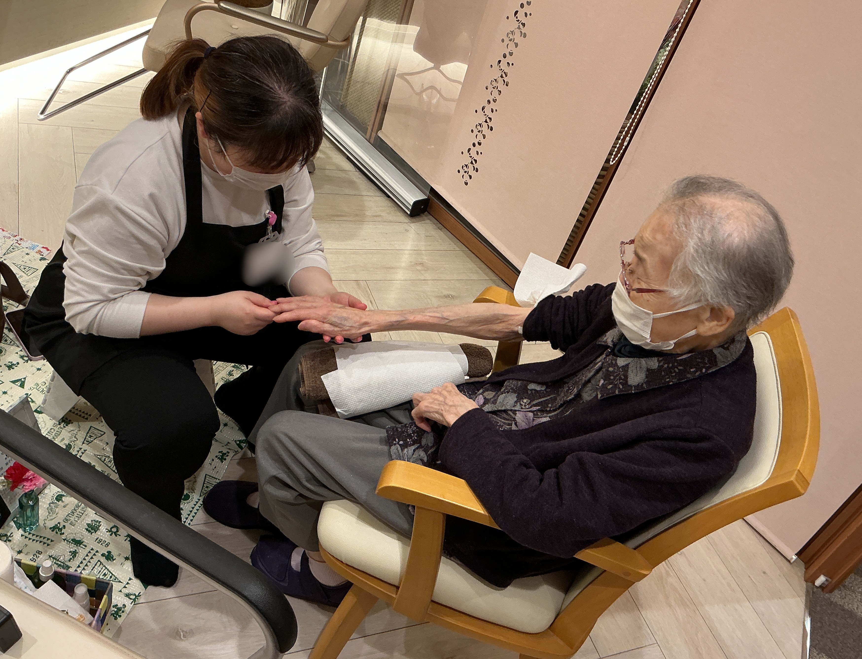 ケアスウィート様にお越しいただき、今回はハンドマッサージを行っていただきました✨丁寧な施術を受けられて、皆さま「気持ちいいわ~」と癒されていました😊