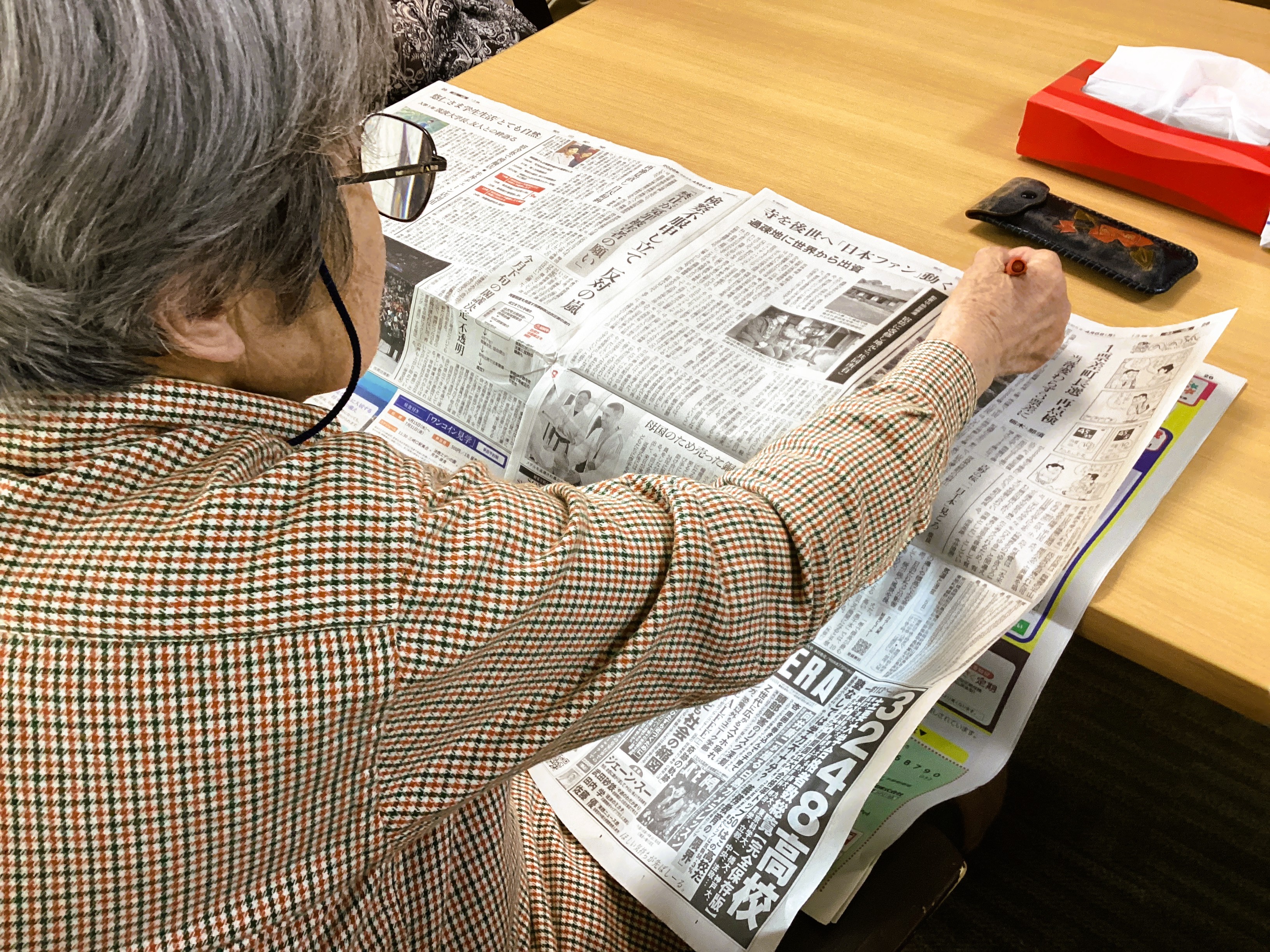 本日も思い思いの日常を皆様過されております🎶 新聞紙の気になるところをマークしたり、職員自作の脳トレに挑戦したり、、穏やかにテレビを観たり、、 そんな何でもない日常が送れるように、日々サポートを惜しみません!! お天気もいいから日光浴もいいな🎶
