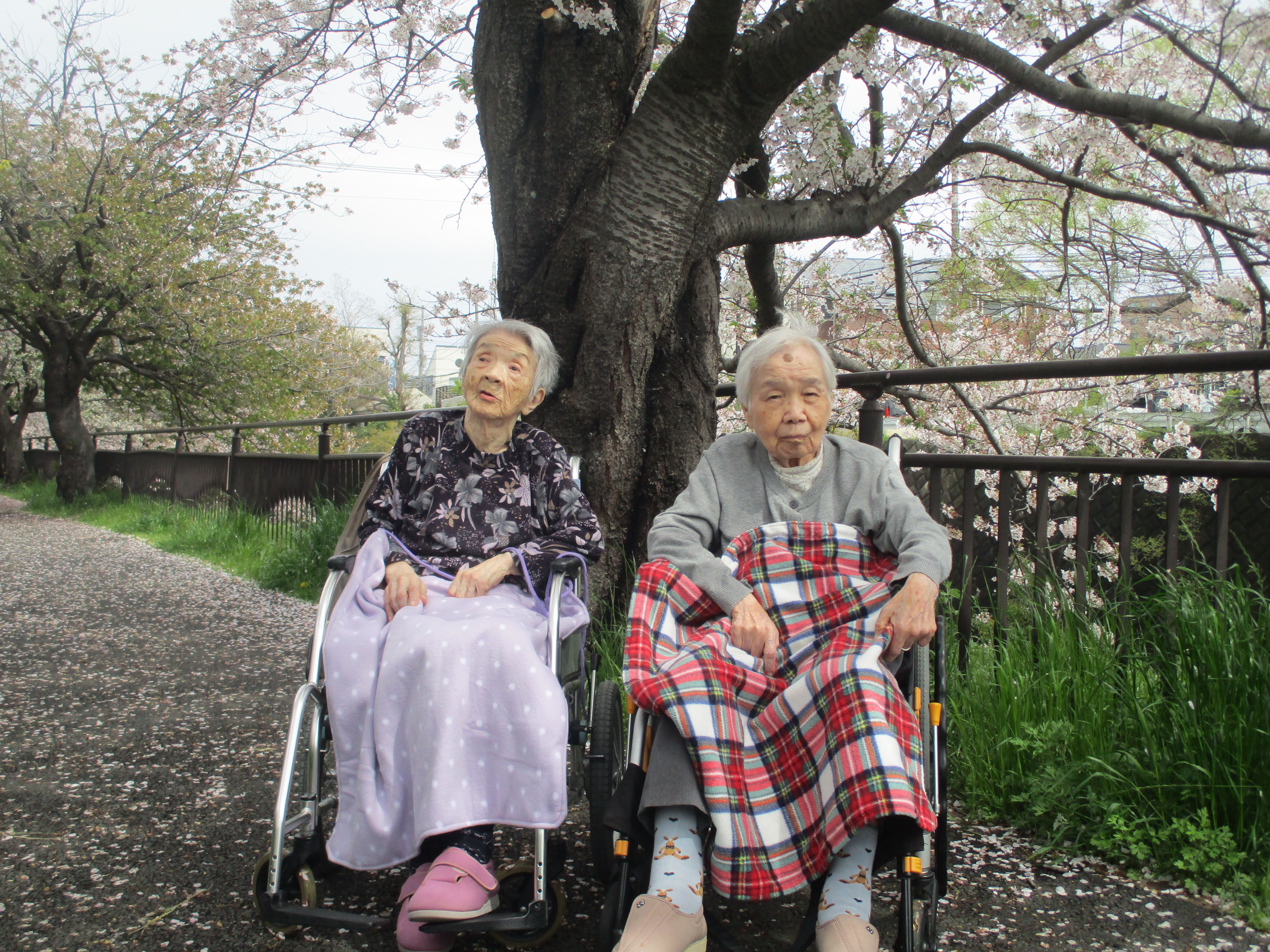 桜が綺麗な季節になり、事業所近くの川沿いにお花見に行ってきました🌸満開の桜に皆様喜んでいました(#^^#)