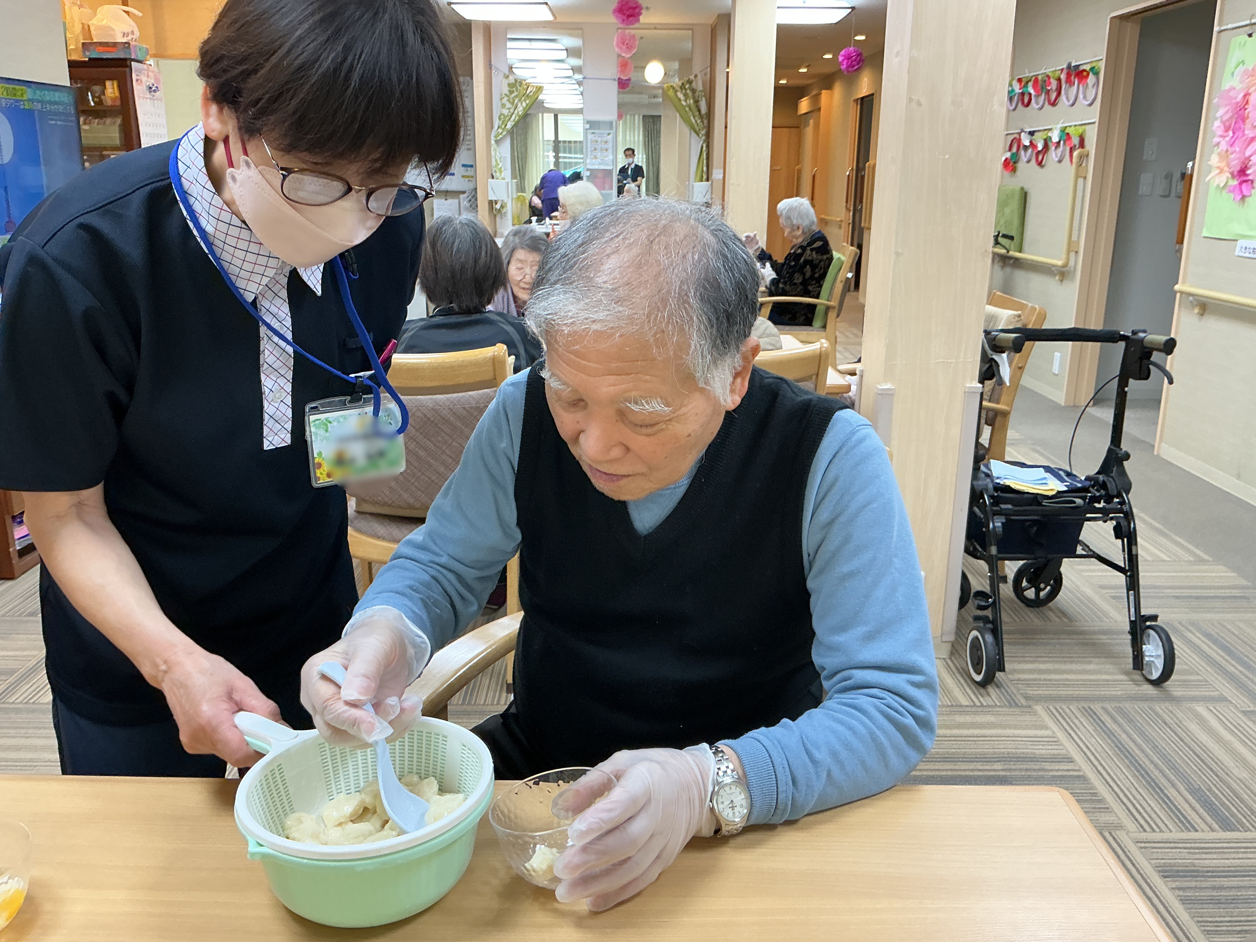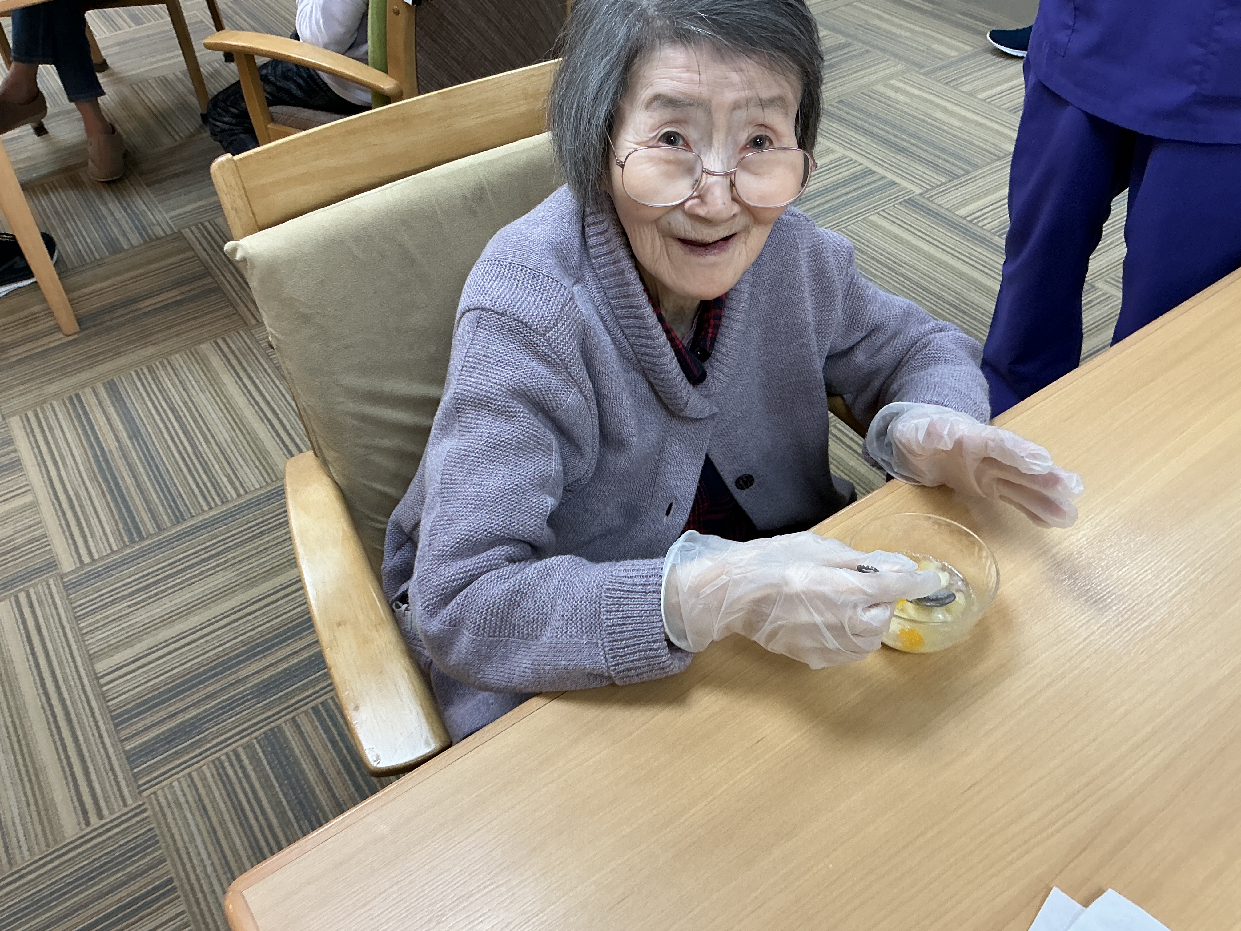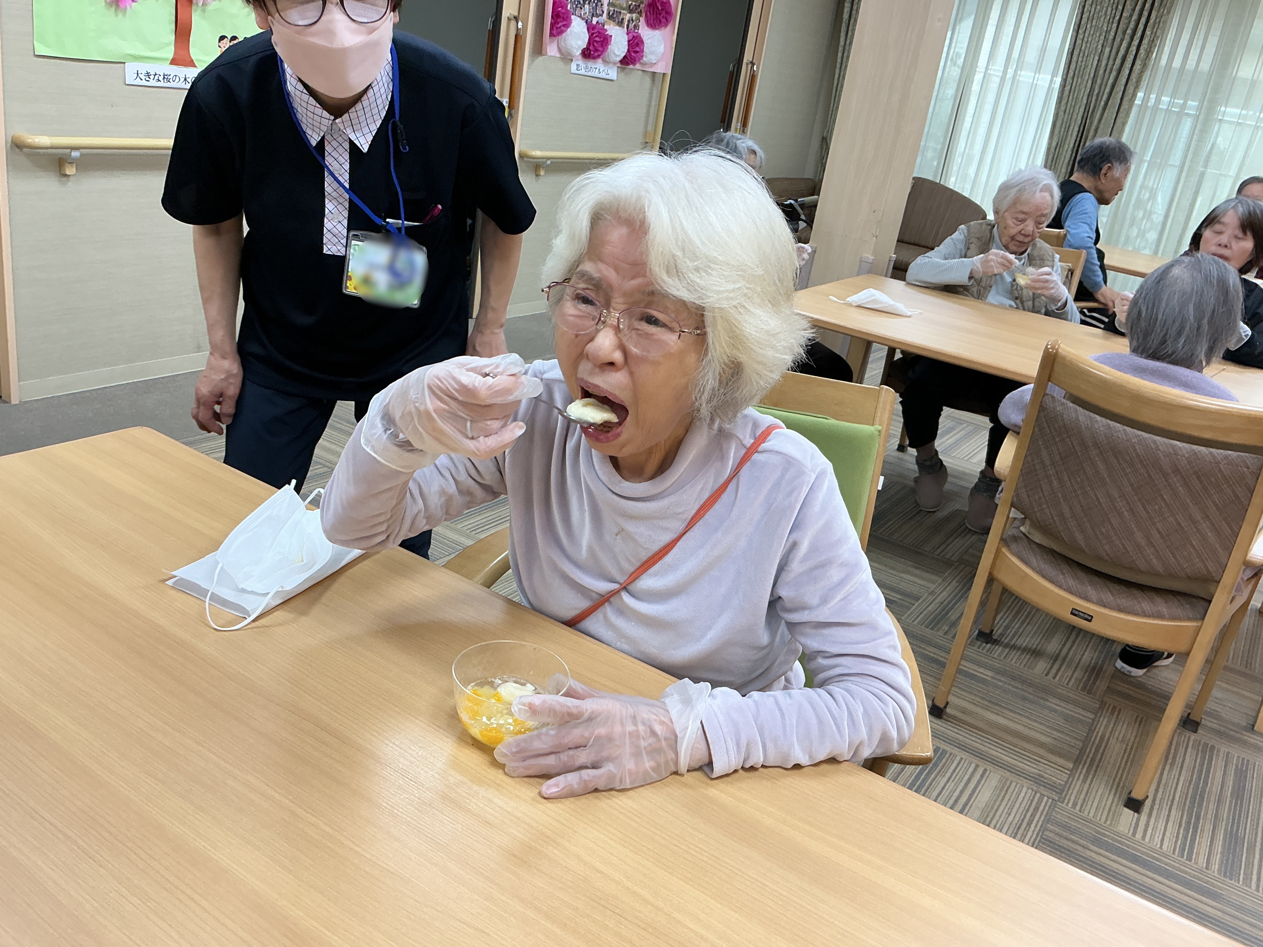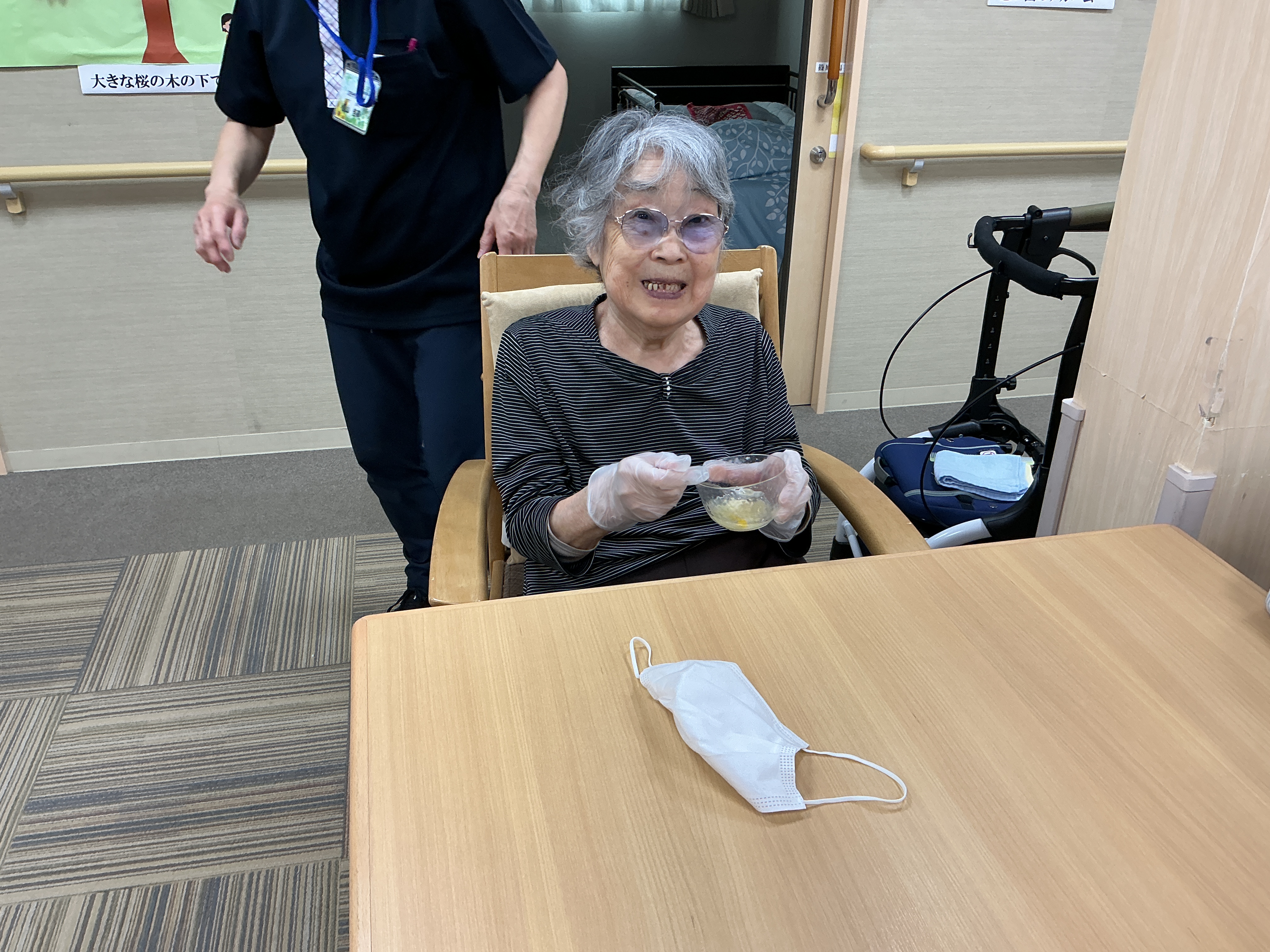 おやつレクで白玉作りをしました(^▽^)/ フルーツをトッピングしサイダーをかけて召し上がりました💕