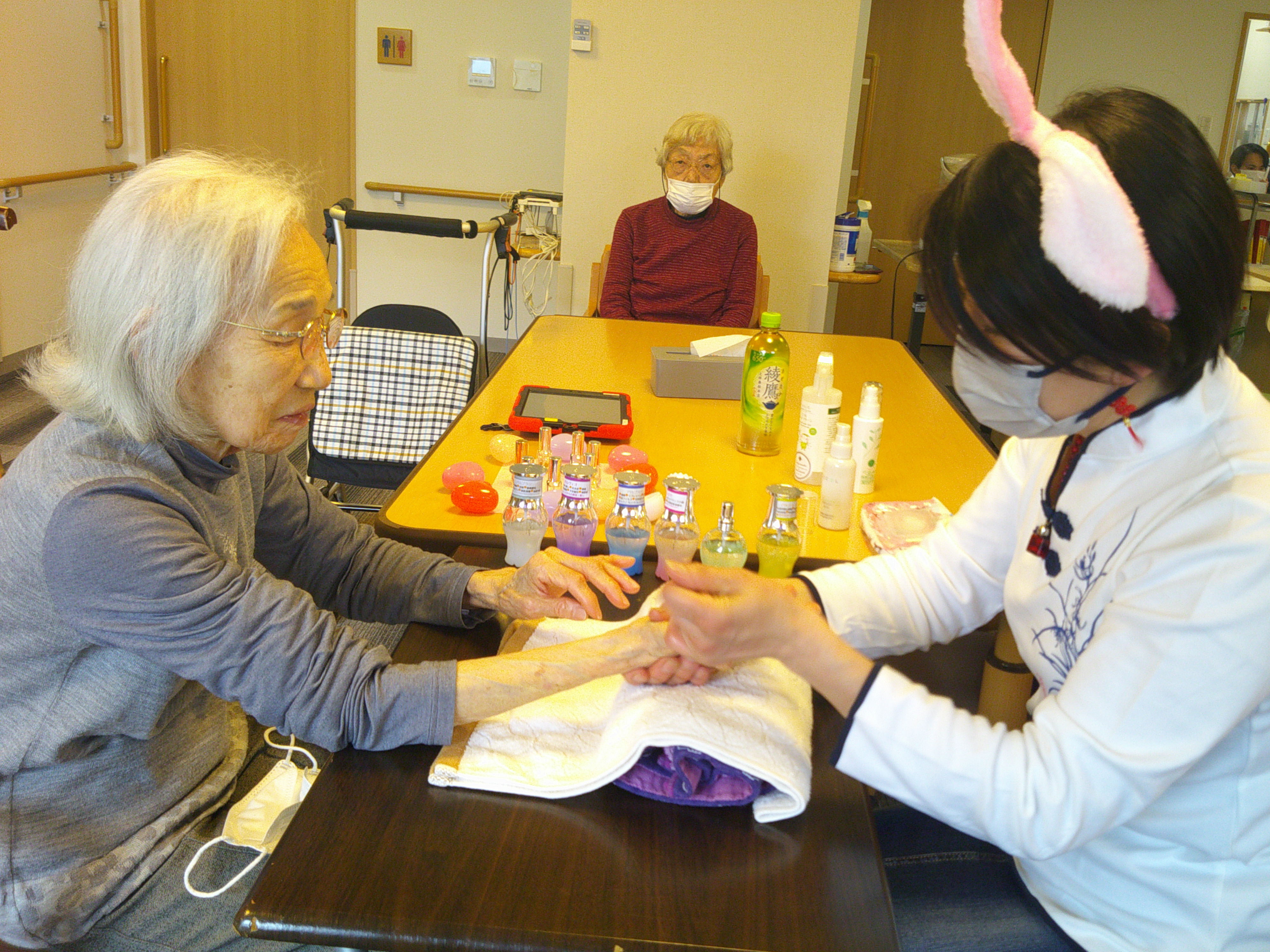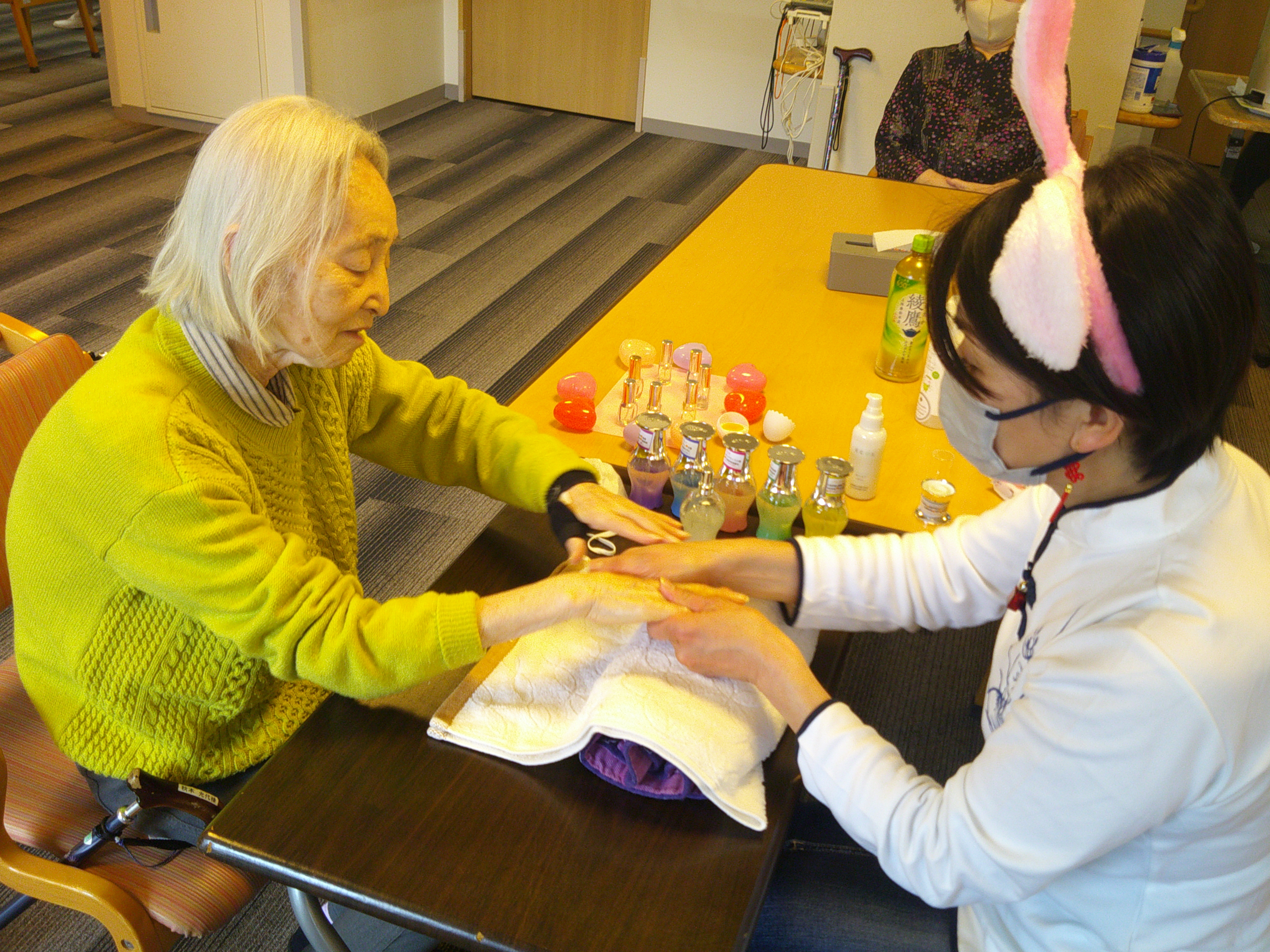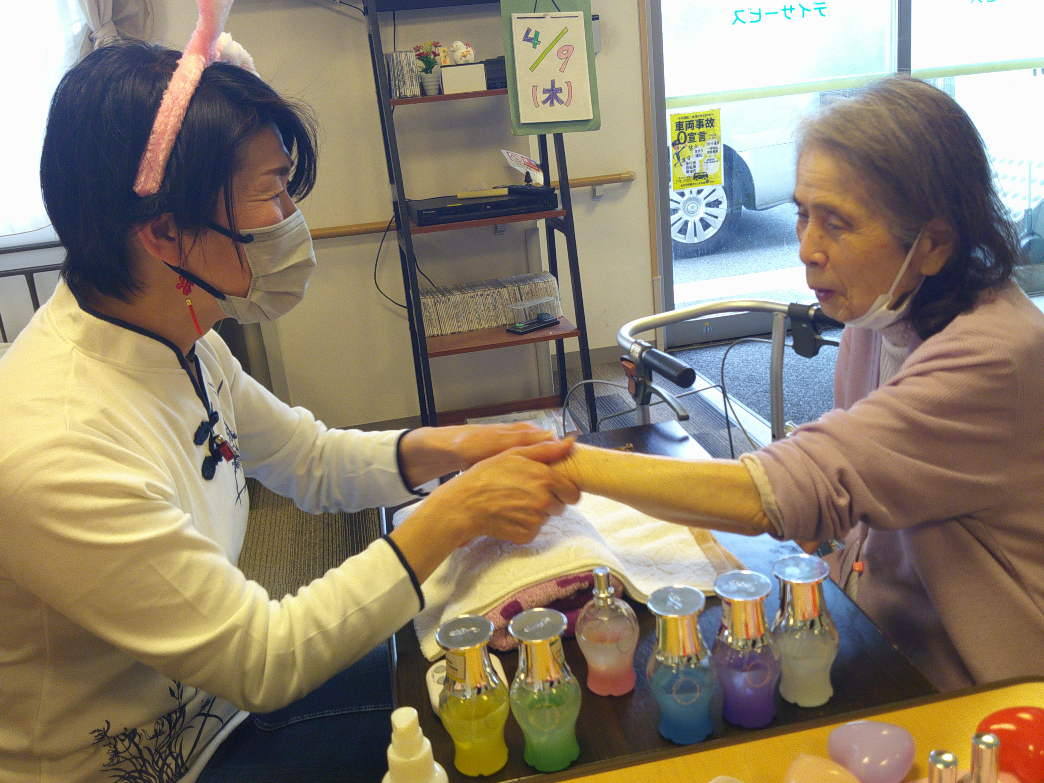 去る4月9日は、ハンドマッサージの先生が来てくださいました。