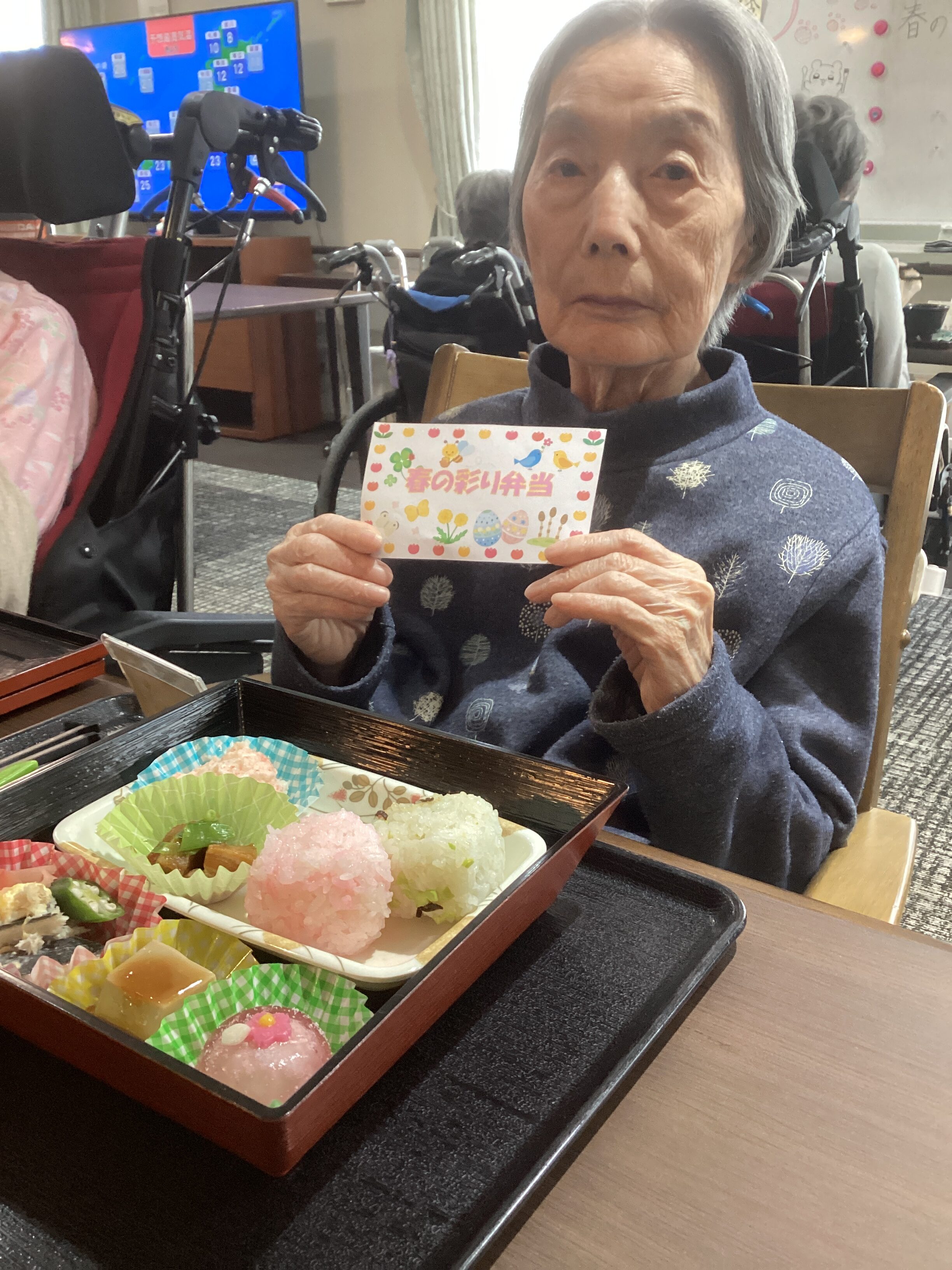 本日はお弁当風のお食事が提供されました。おにぎりや天ぷらなど小ぶりの食べ物がいくつか並んでいて、鮮やか食事になりました。