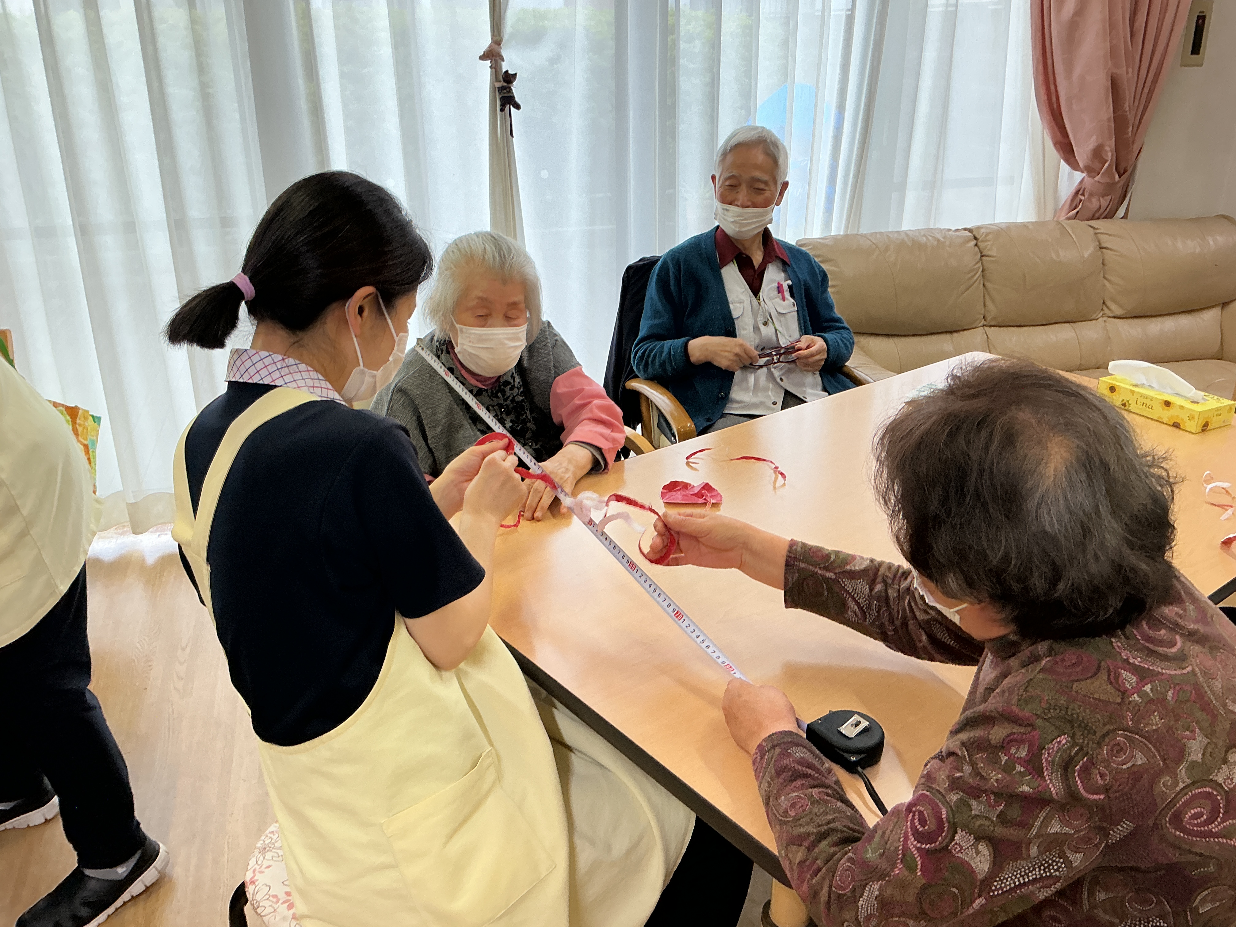 あっという間の5分が過ぎ、テーブルごとに一番長く切れた長さを発表しました🎉一番長くて1m40㎝と見事でした~🍎「本当に皮むきしてるみたいで楽しかった~」「もう少し時間長くして~」などの声が聞かれました😊👌次回は青りんご🍏の予定です!