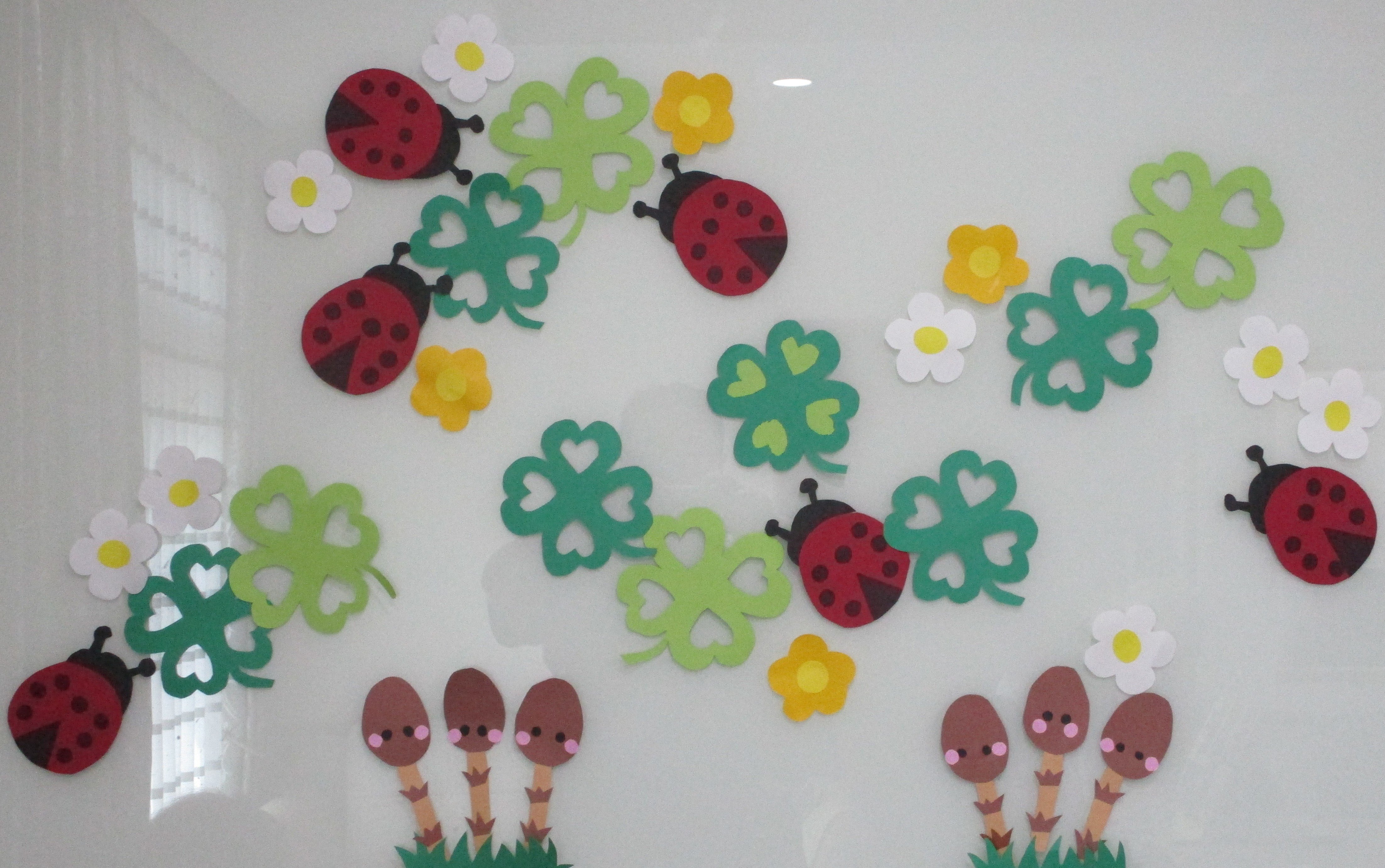 1階2階の壁面が出来上がりました。 1階は枝垂れ桜 2階は可愛いてんとう虫