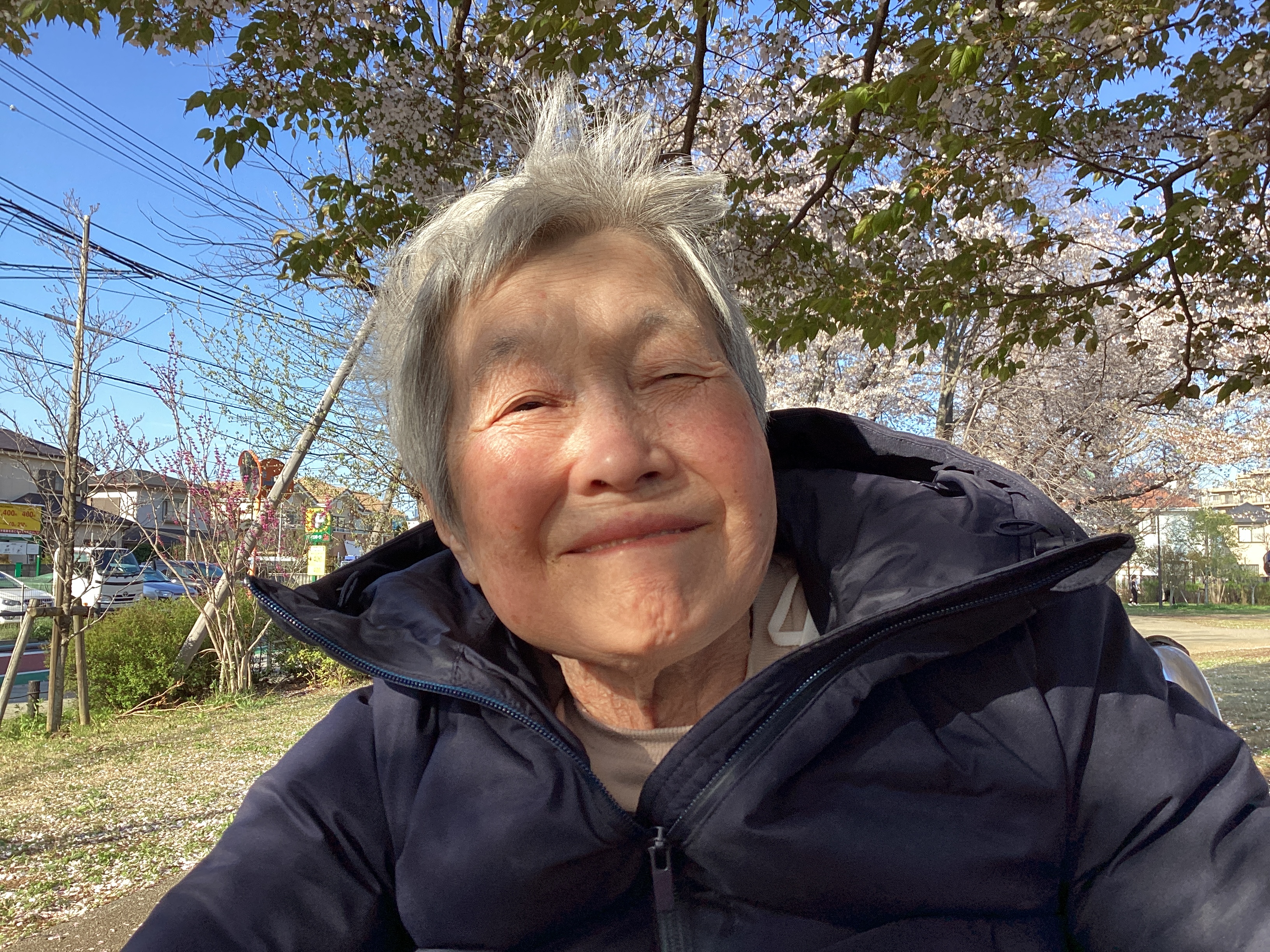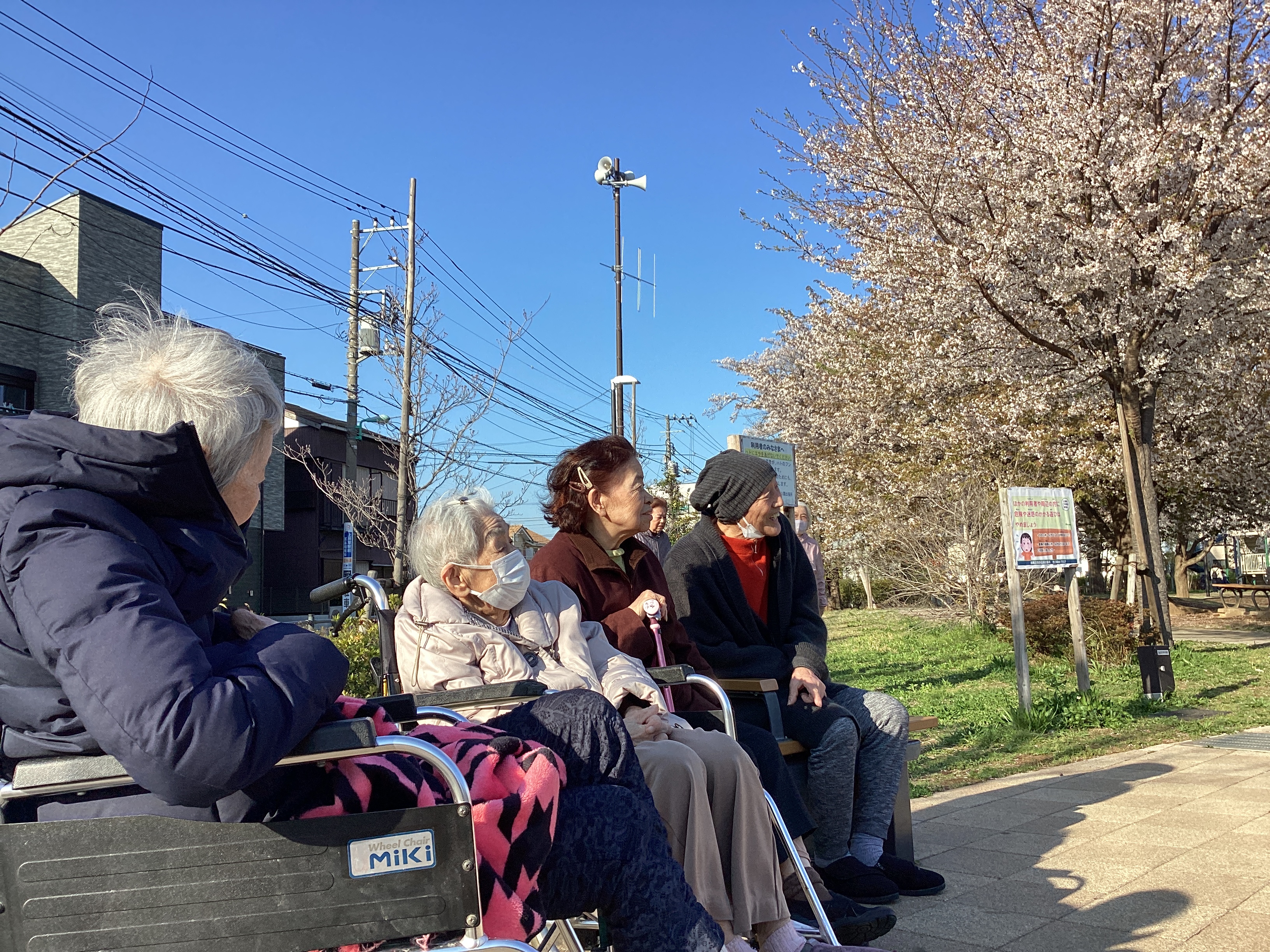 近所の桜を見に行きました。 天気も良く近所の方々と世間話もして満足されていました。