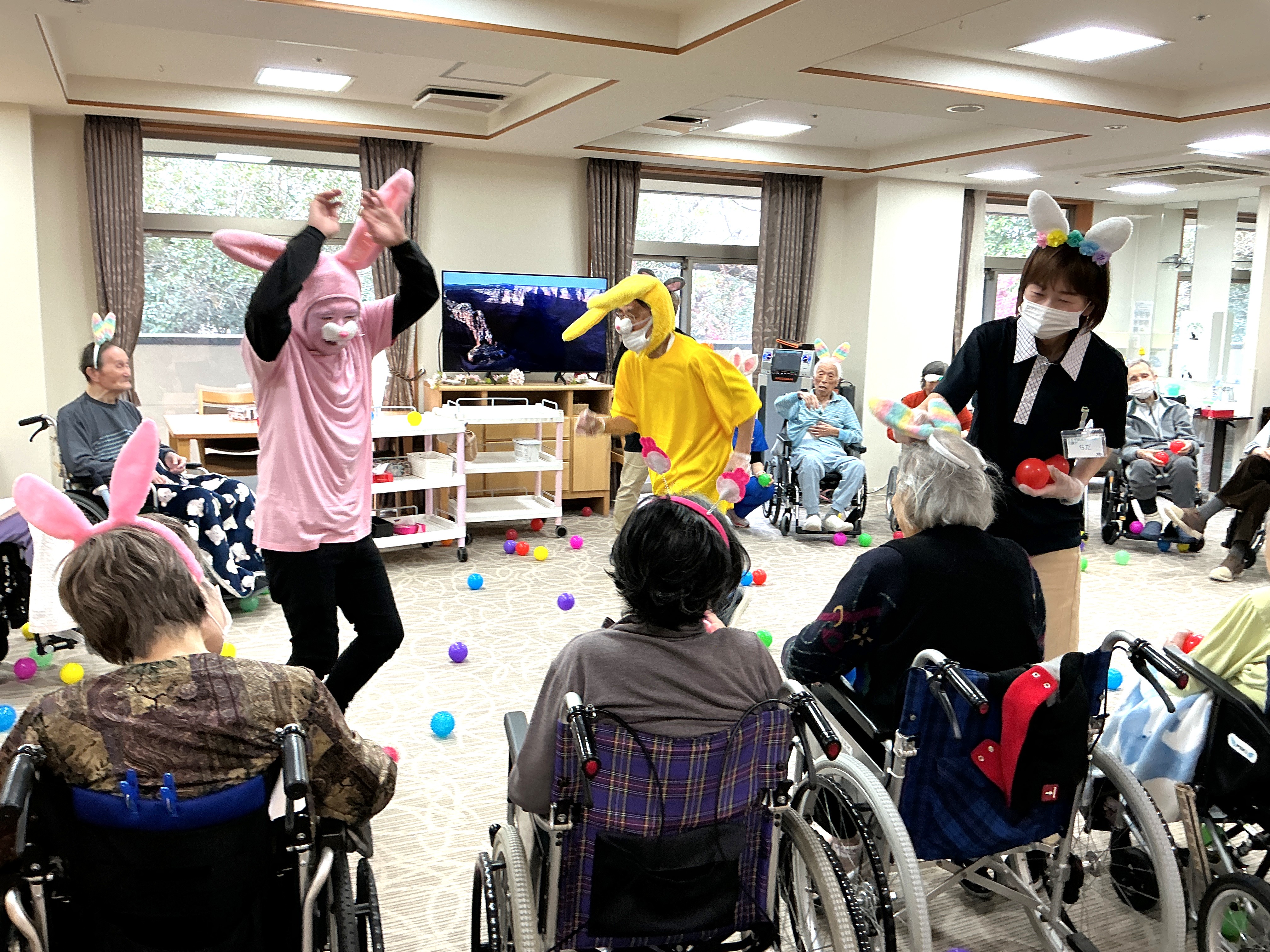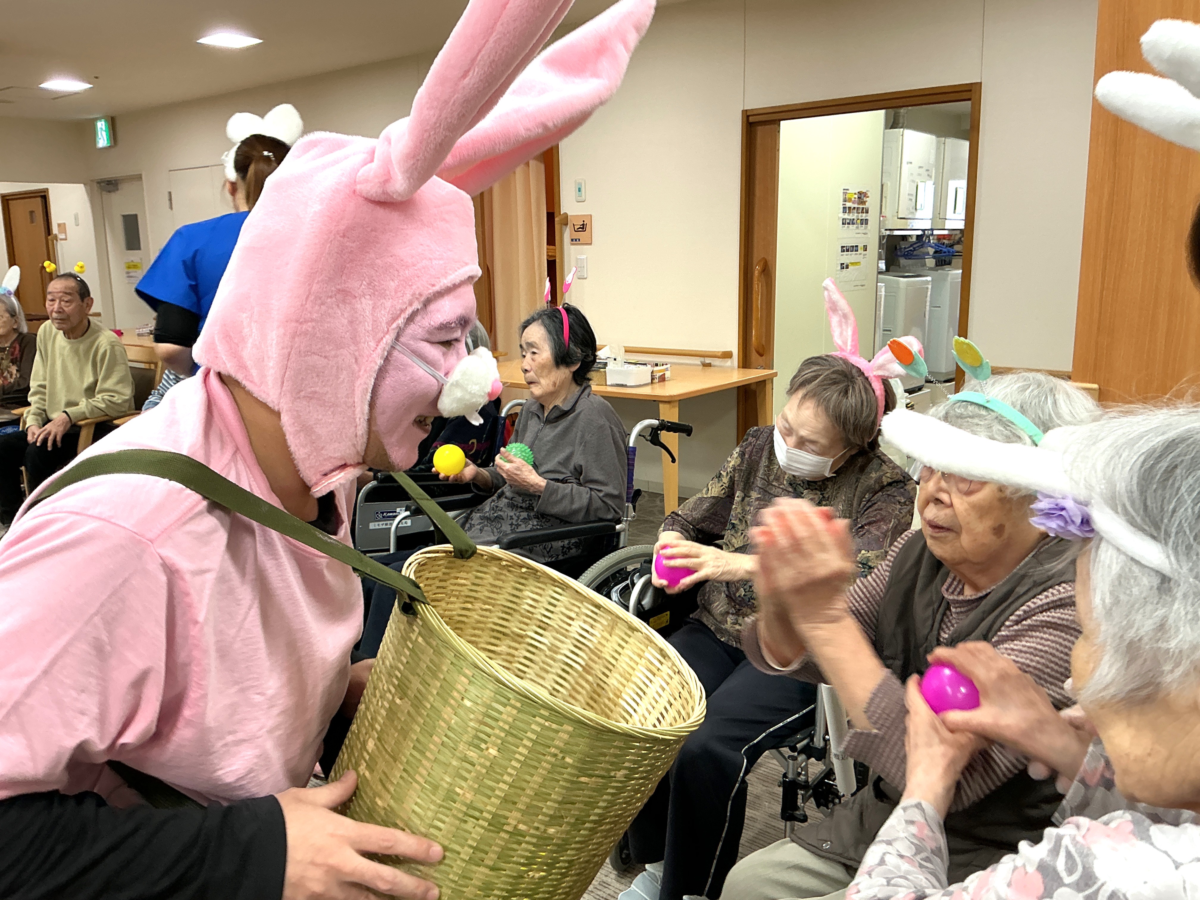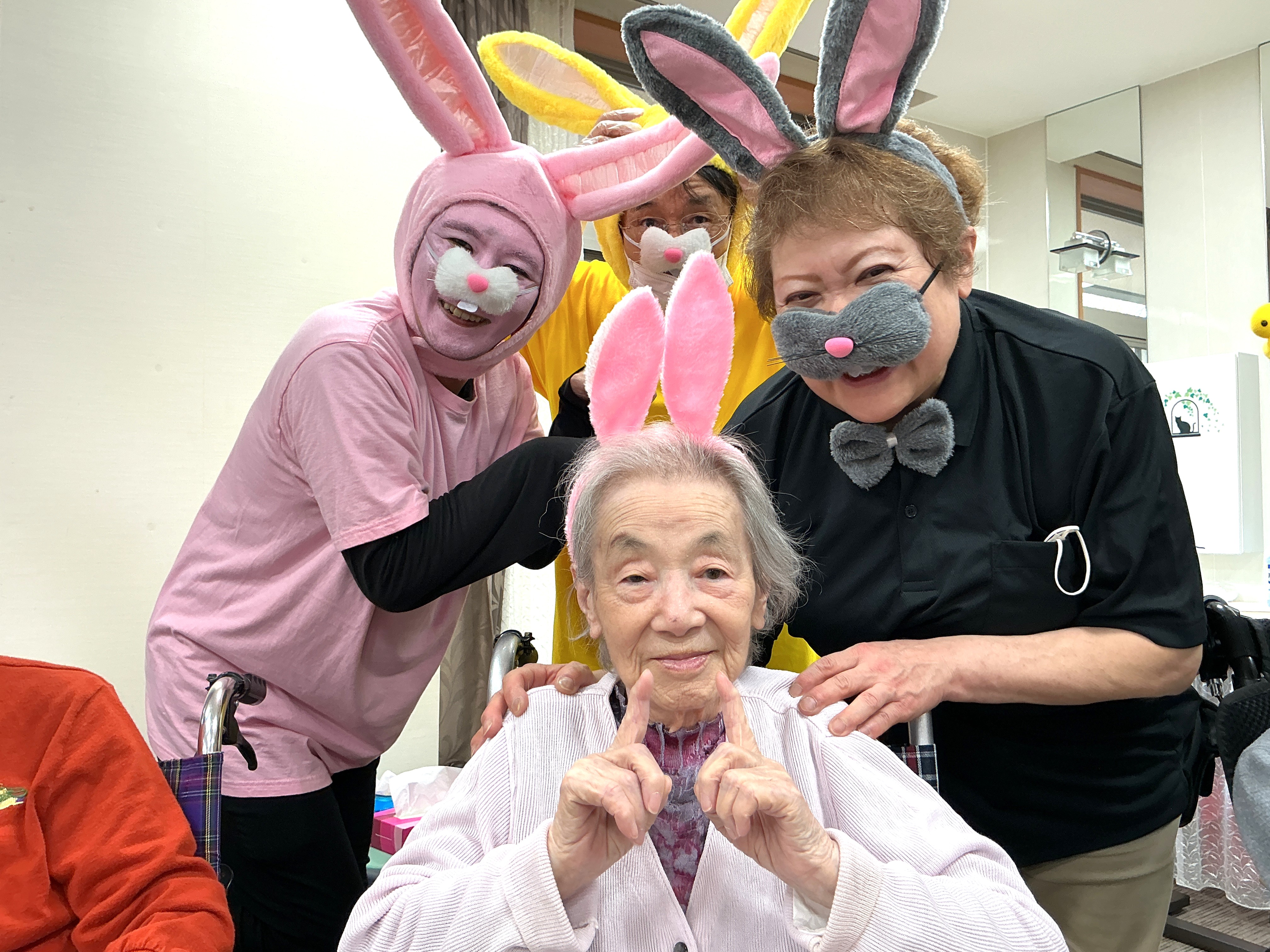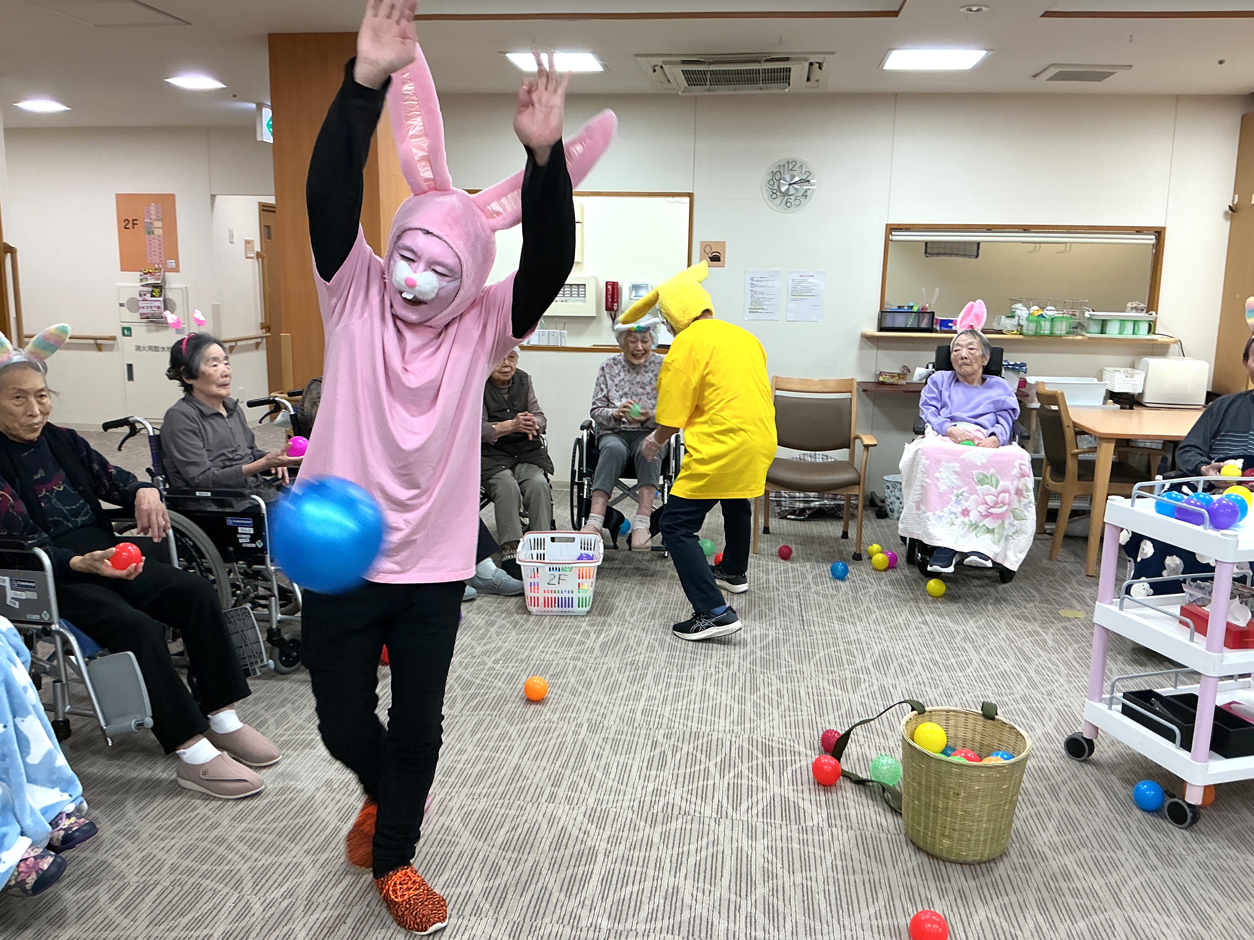 春の訪れを祝い、繁栄を願うイベント「イースター祭り」を開催しました🐰カラフルで愉快なイースターラビット達と卵投げゲームを楽しみました。これから先も紫陽花苑が繫栄し、皆様の笑顔があふれる施設であり続けますように♪