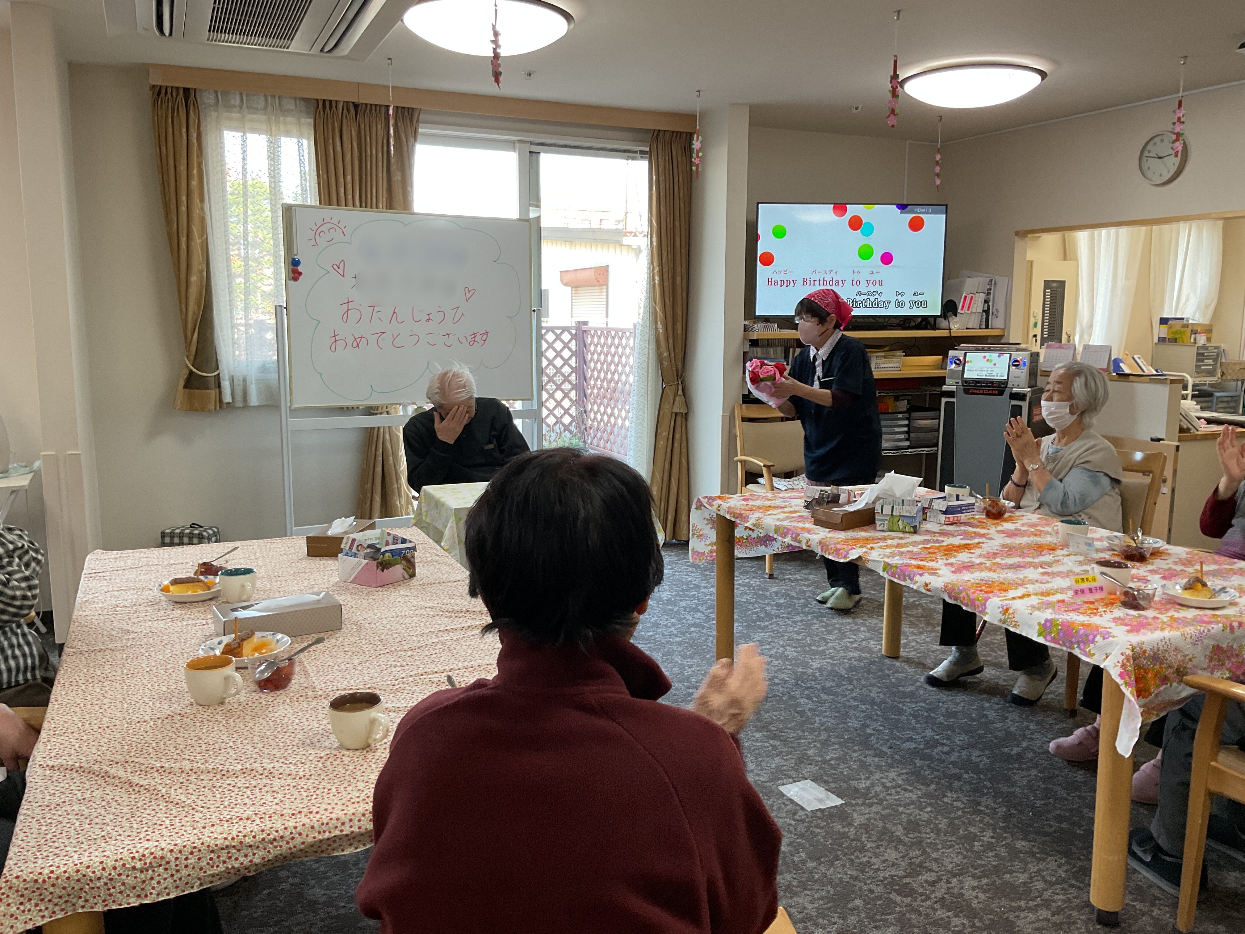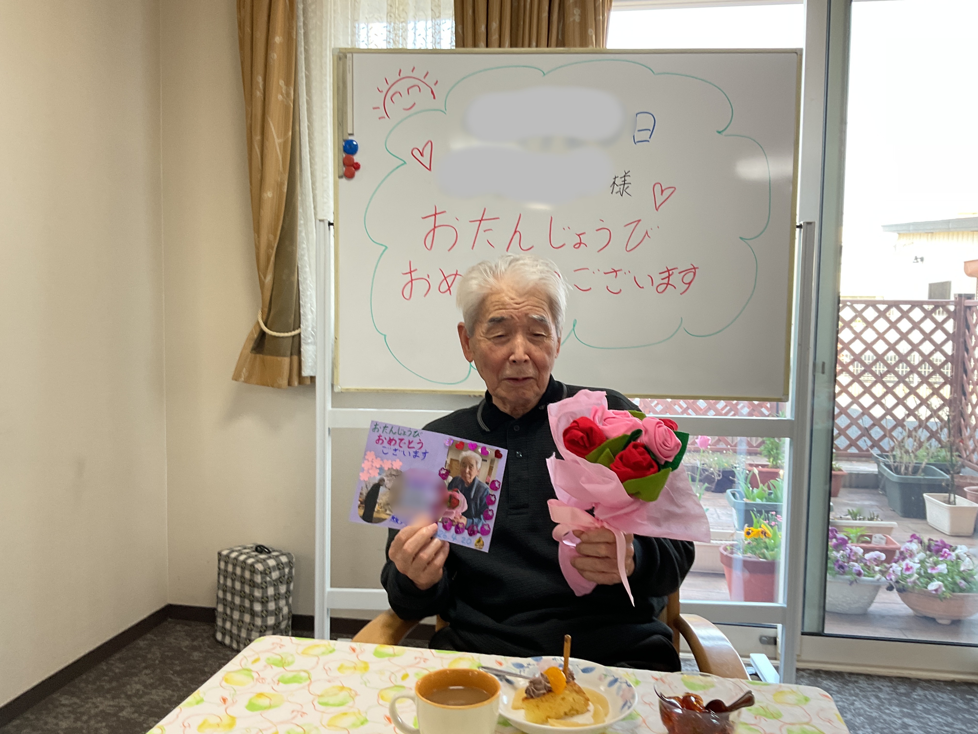 お二人の利用者様が誕生日を迎えられました🎉ちょっぴり恥ずかしそうに、かたや凛とした笑顔で写真に収まってくださいました。ハッピバースデーを皆で歌いながら「来年もまたお祝いさせてください❤️」と密かに心の中で願うのでした😊