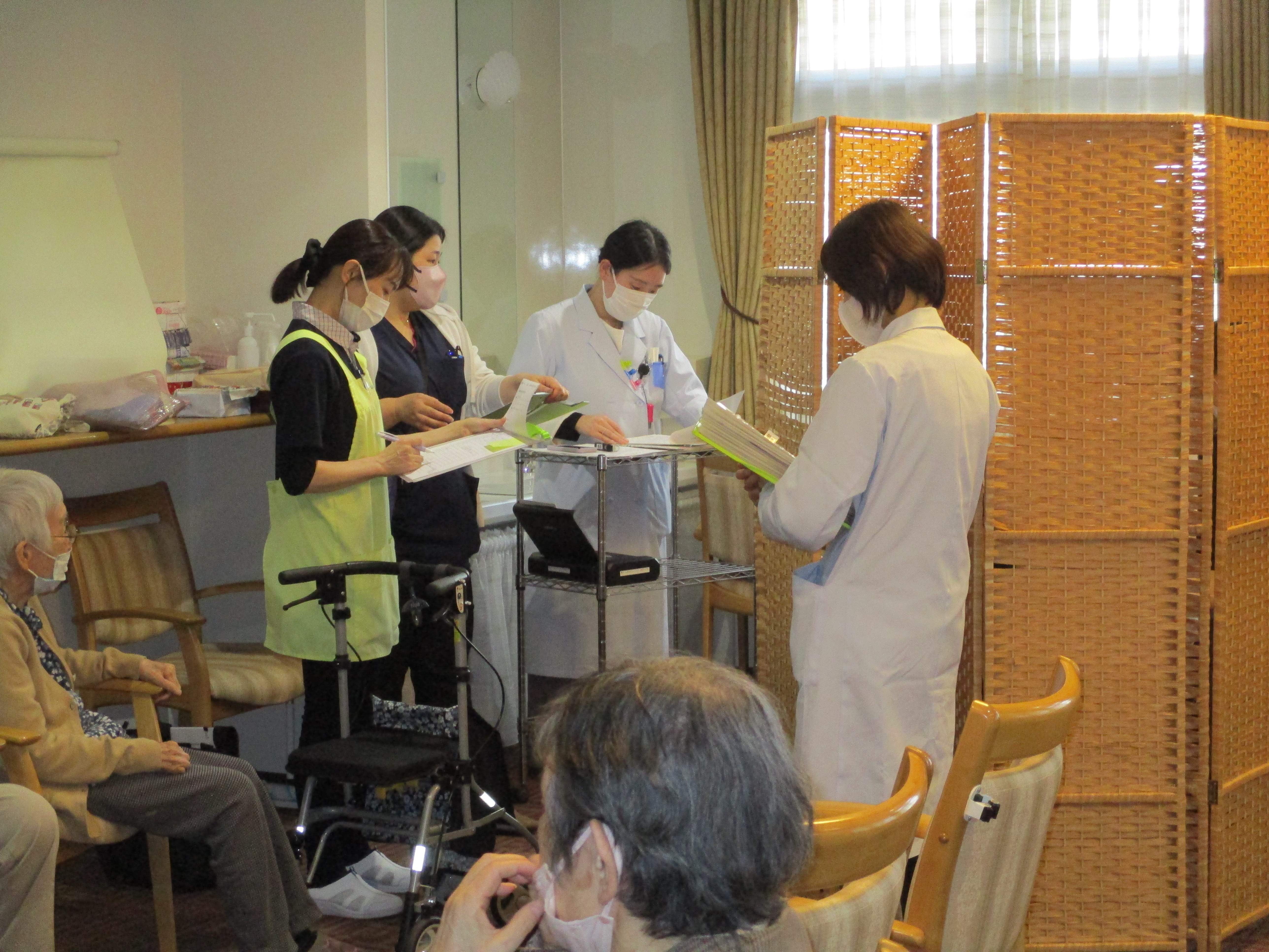 ここミモザ横濱南万騎が原のサ高住では2週間に1回、内科の往診があります。 往診の際には先生と看護師さんだけでなく、薬剤師さんと当施設の担当者が同席し、 ご入居者様の健康状態など共有できるように対応しております。