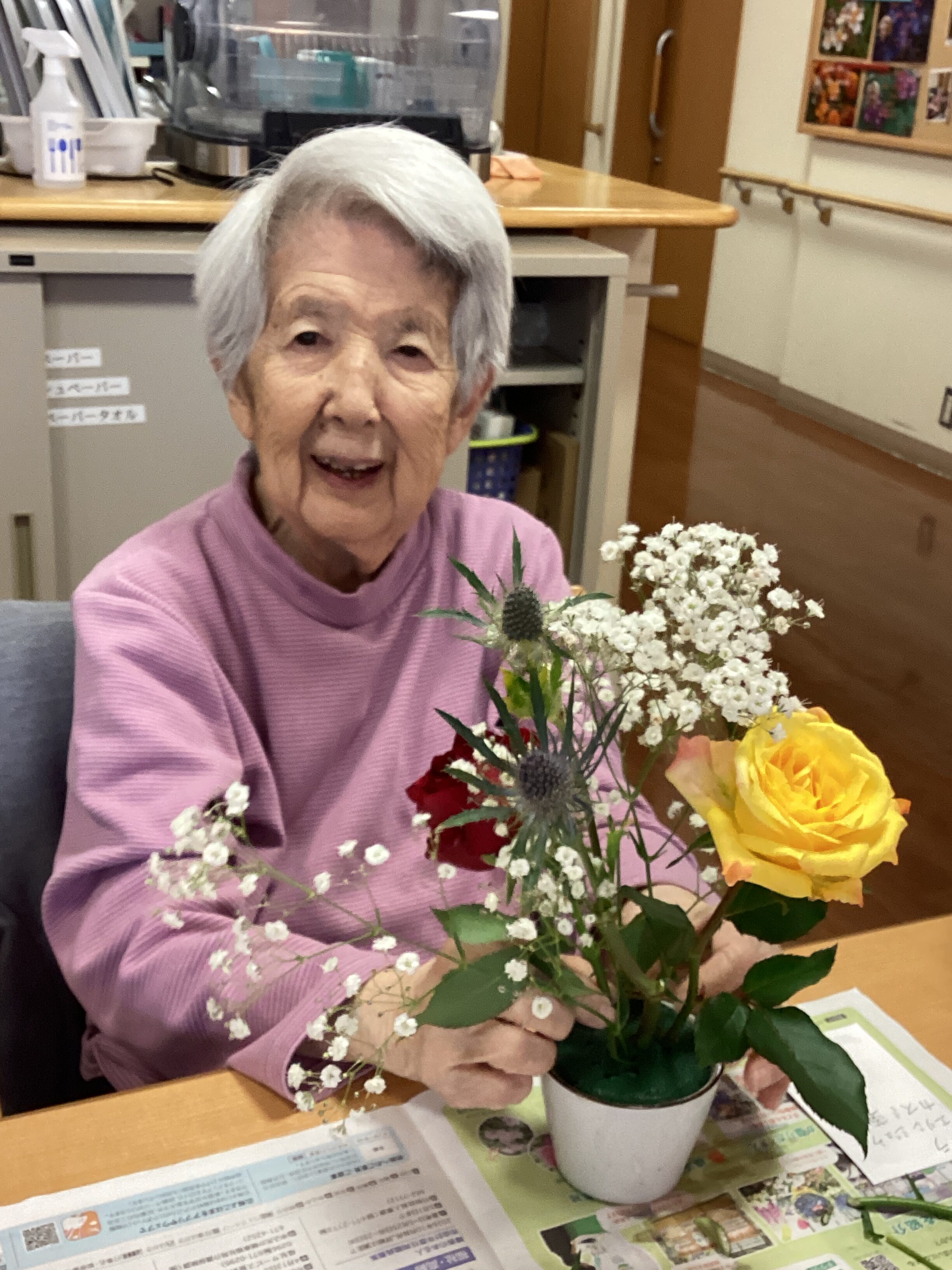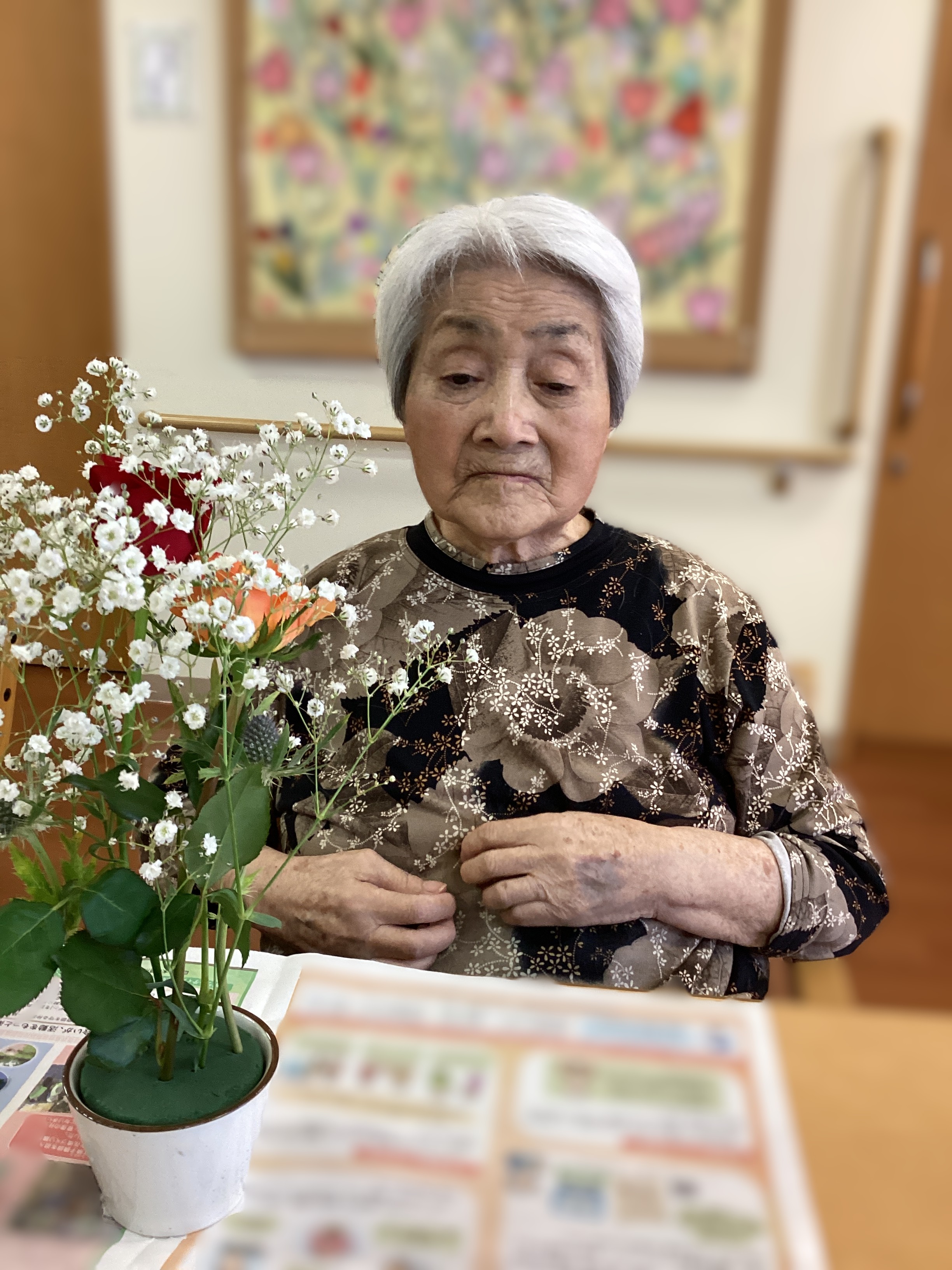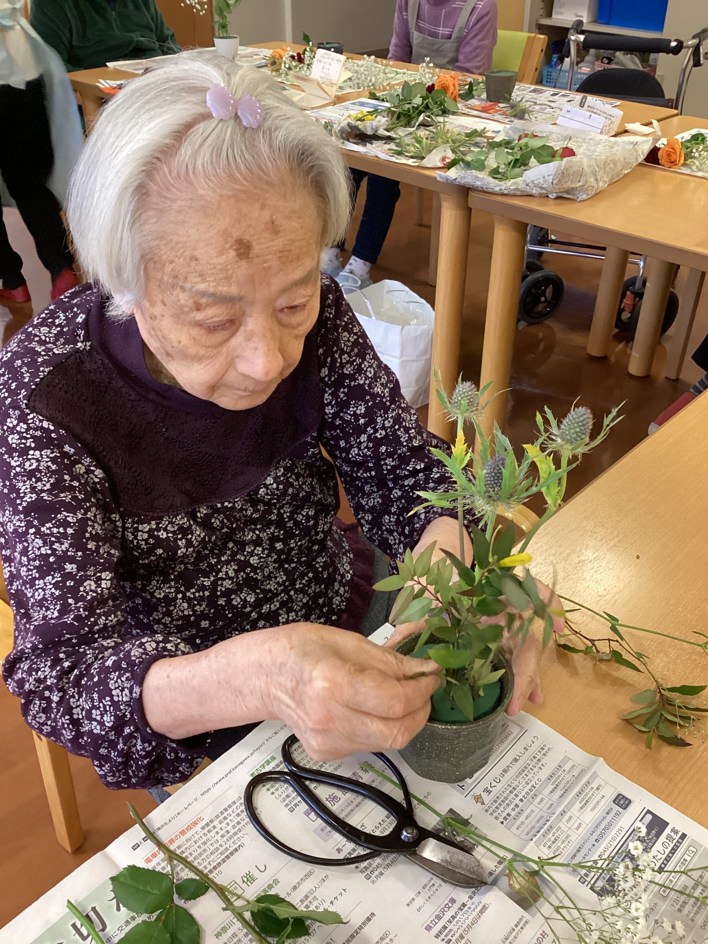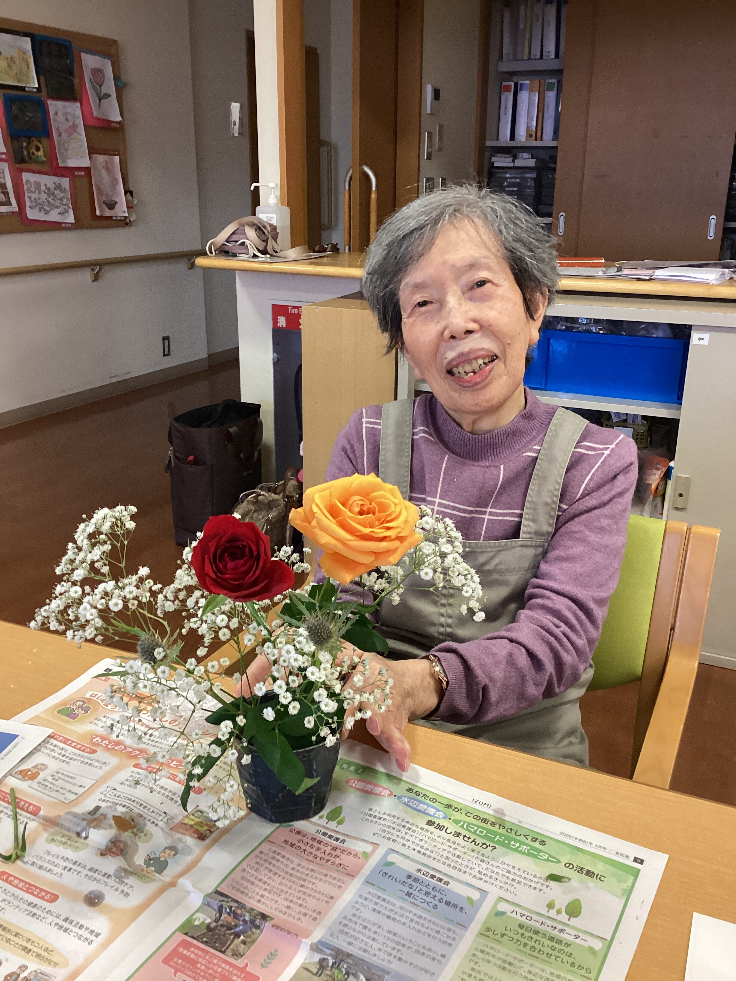 4月の生け花教室が開催されました。 今月のお花は『バラ』『カスミ草』『エリンジュウム』です♪