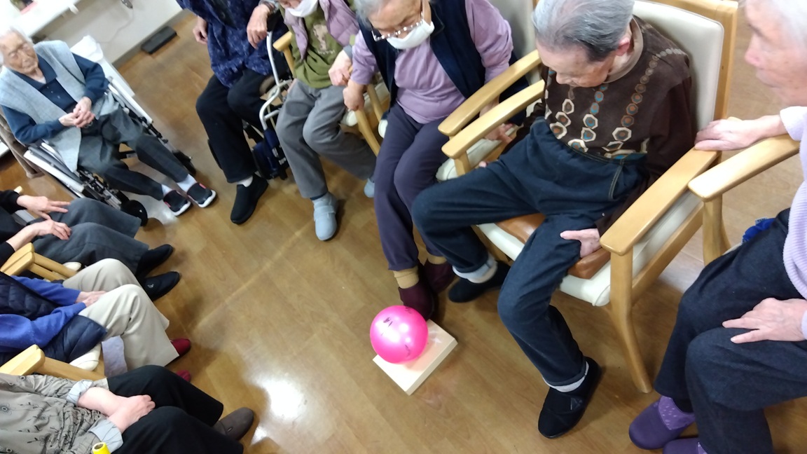 みなさんの足先に意識を向けてみました。上手に足先を使ってボールを移動させます。