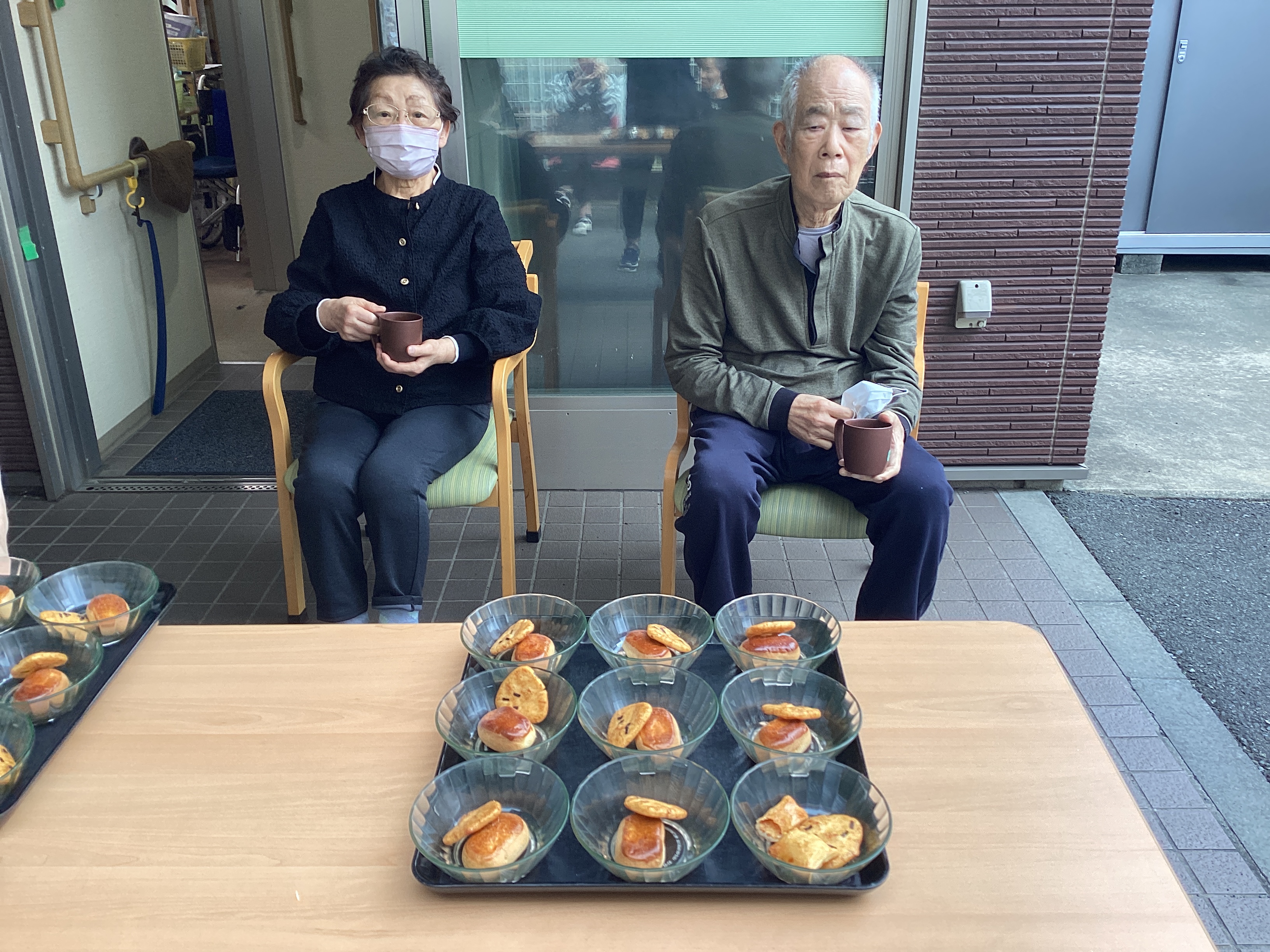 天気が良かったので皆さんと駐車場でおやつを食べてシャボン玉をしました⭐