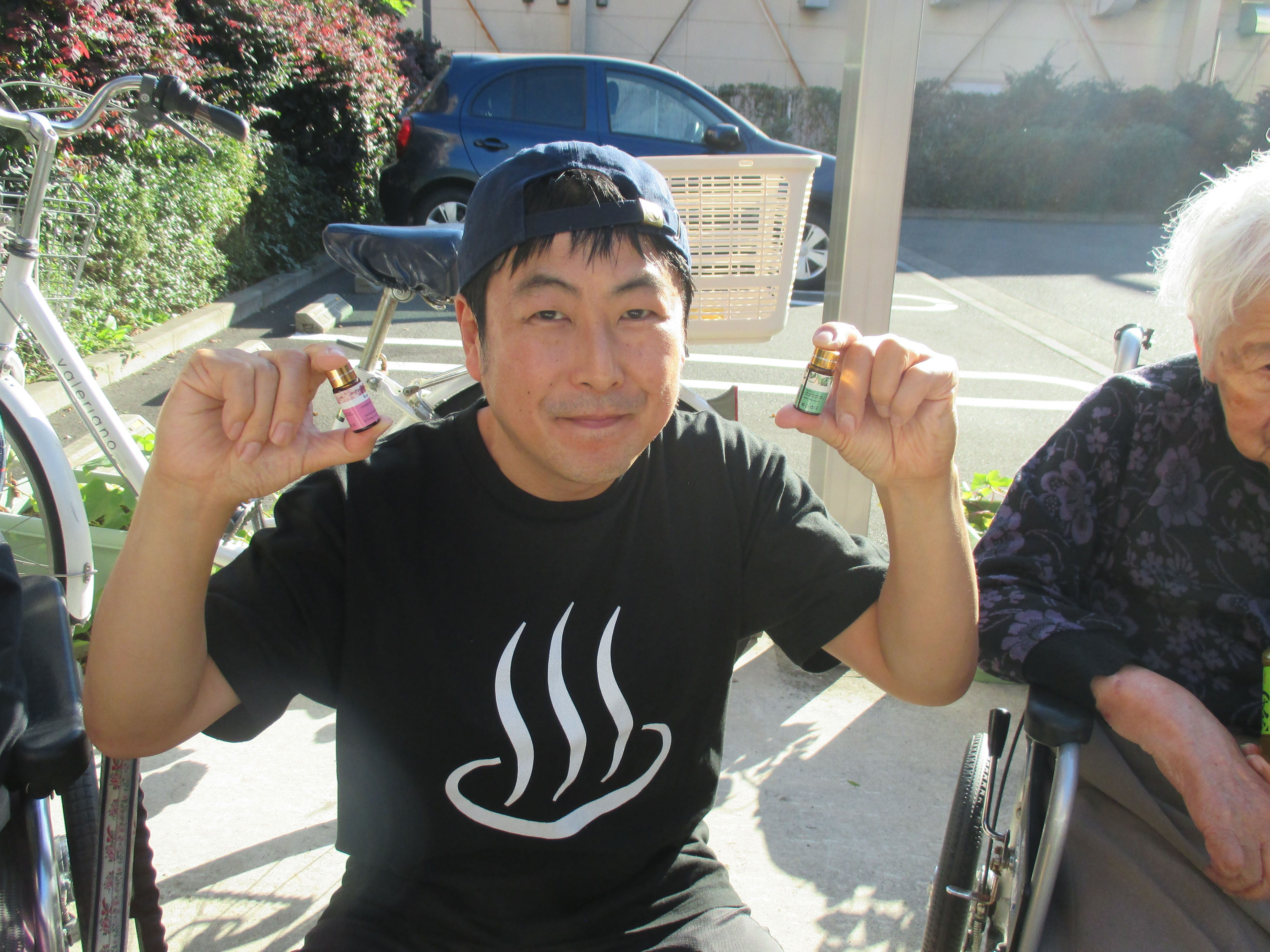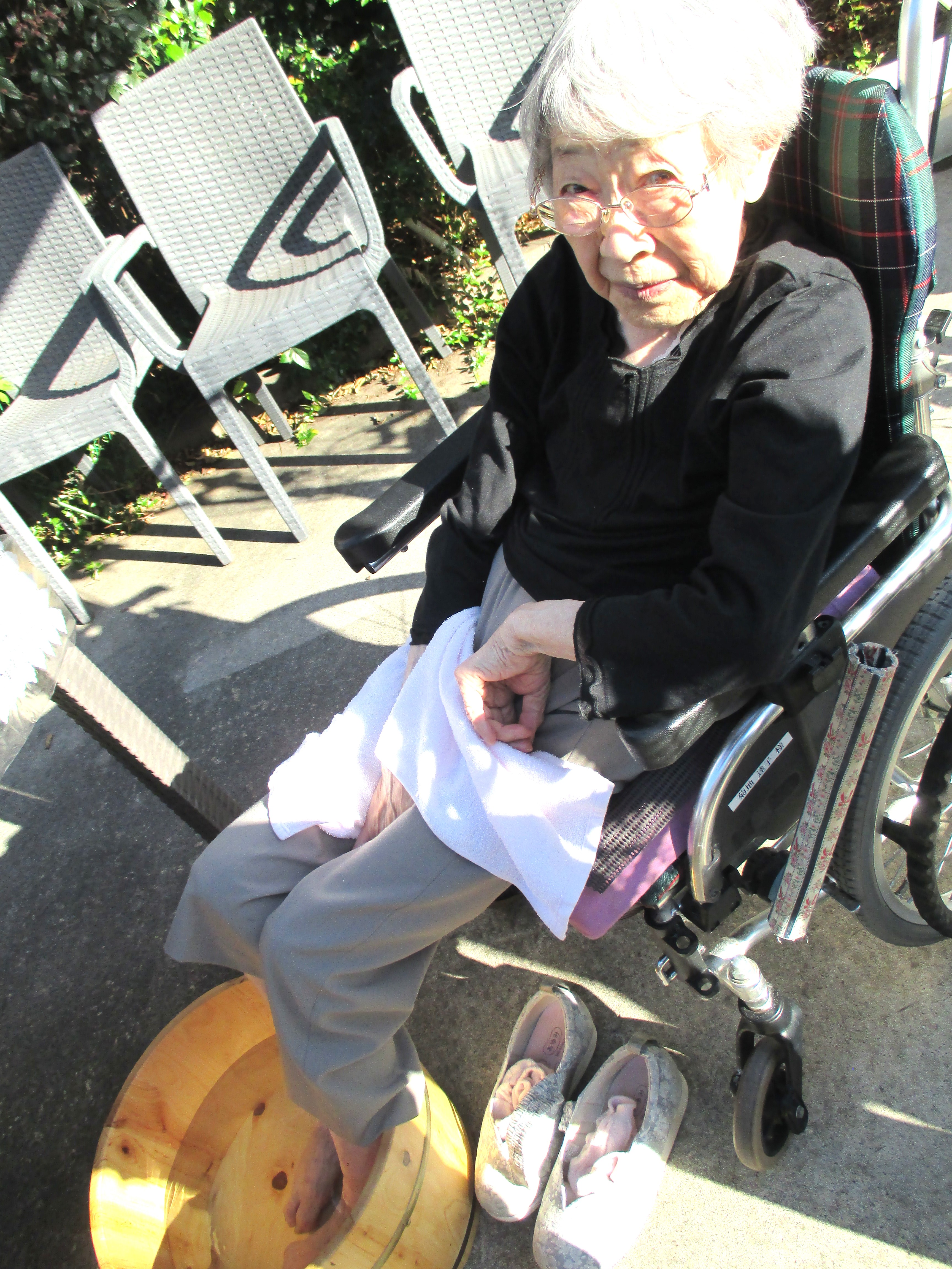 ぽかぽか陽気の快晴の日!!最高の足湯日和です。専用の足湯桶にお好みのアロマオイルを入れて、足湯を満喫して頂きました。気持ちがよくて眠くなってきてしまいそうです♪